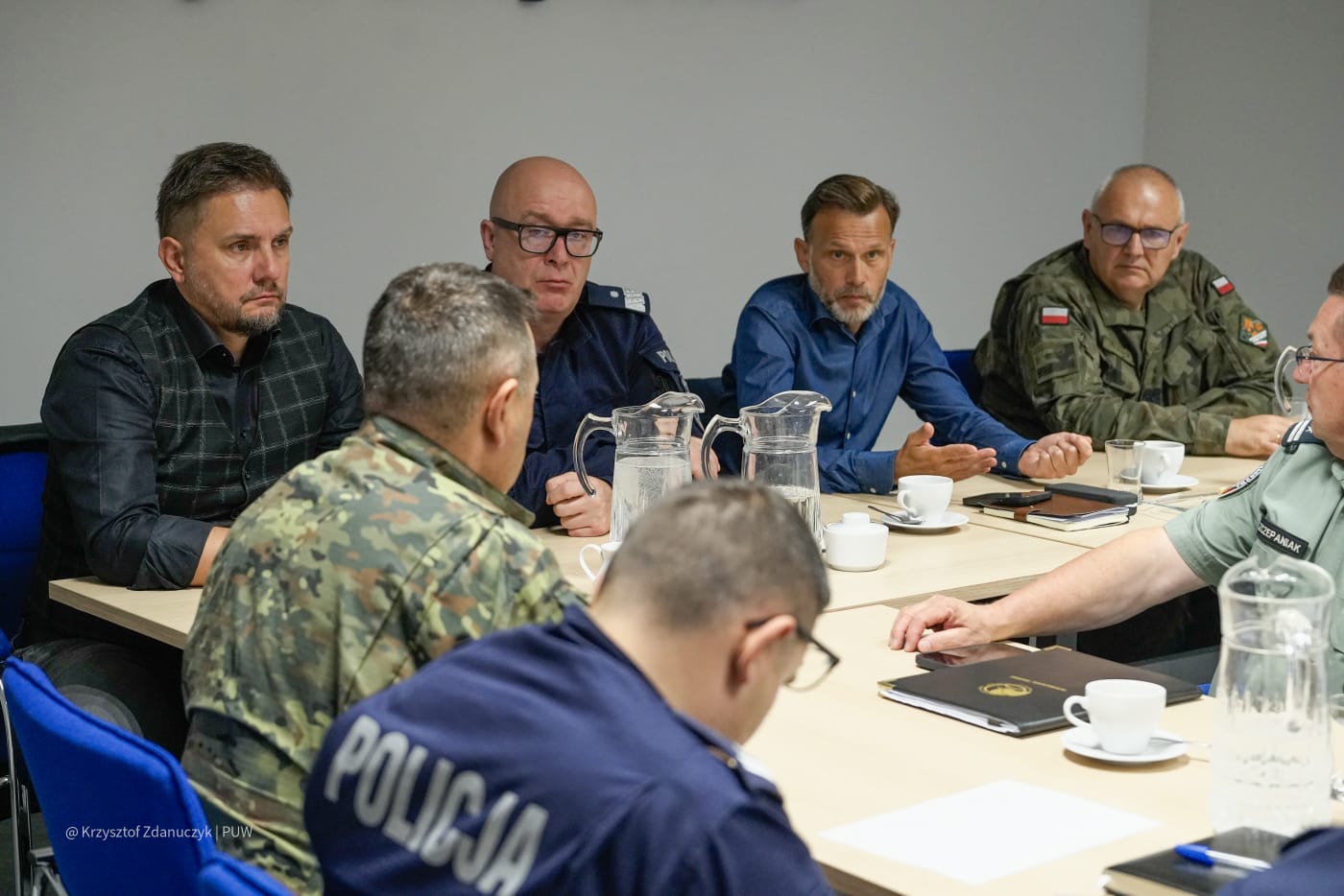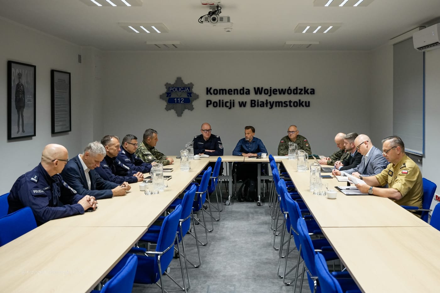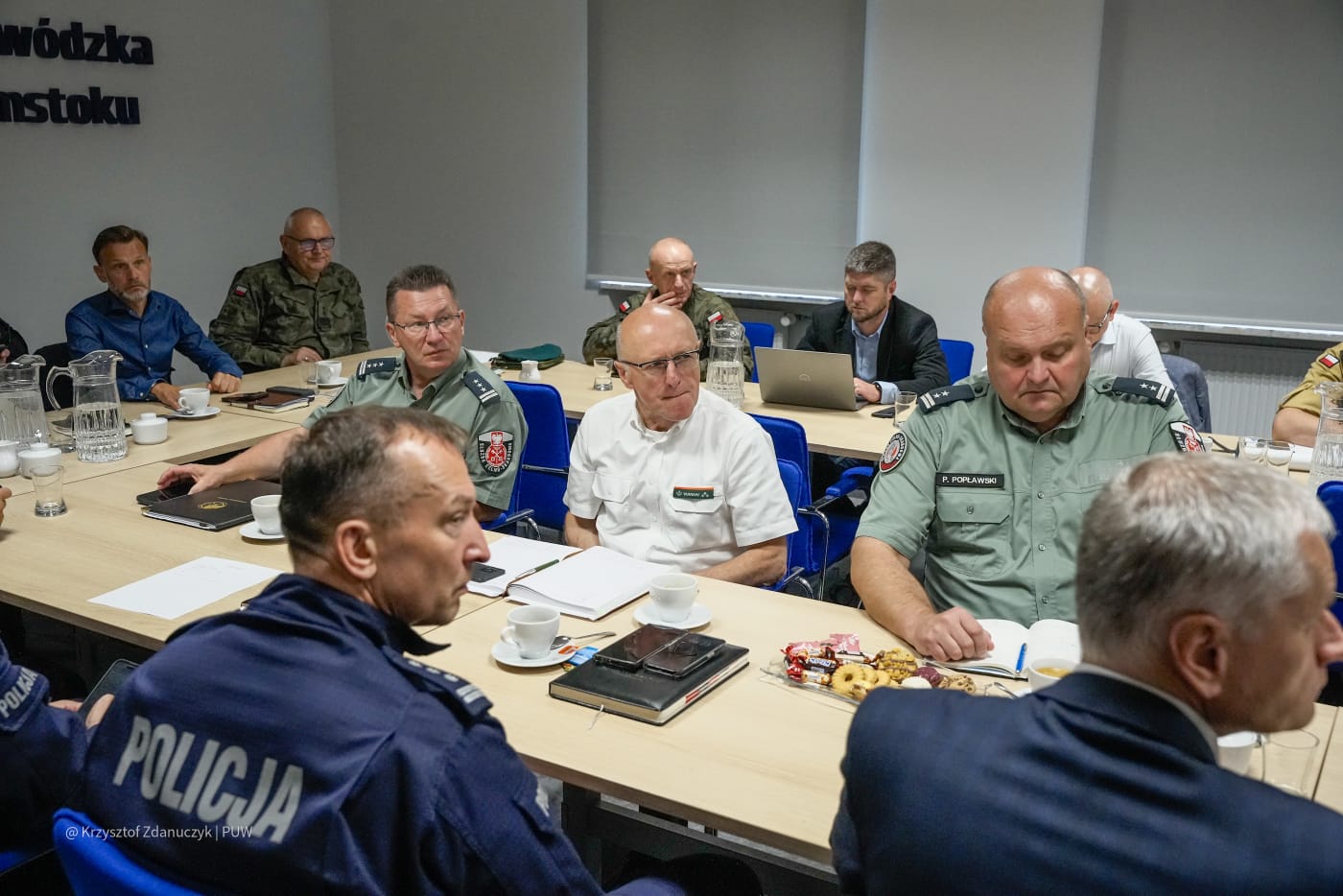 O godzinie 6.30 w Komendzie Wojewódzkiej Policji w Białymstoku rozpoczęło się posiedzenie zwołanego przez wojewodę sztabu kryzysowego, w którym wzięli udział także wicewojewoda Paweł Krutul, przedstawiciele służb oraz dyrektor Wydziału Bezpieczeństwa i Zarządzania Kryzysowego Adam Czubaty.