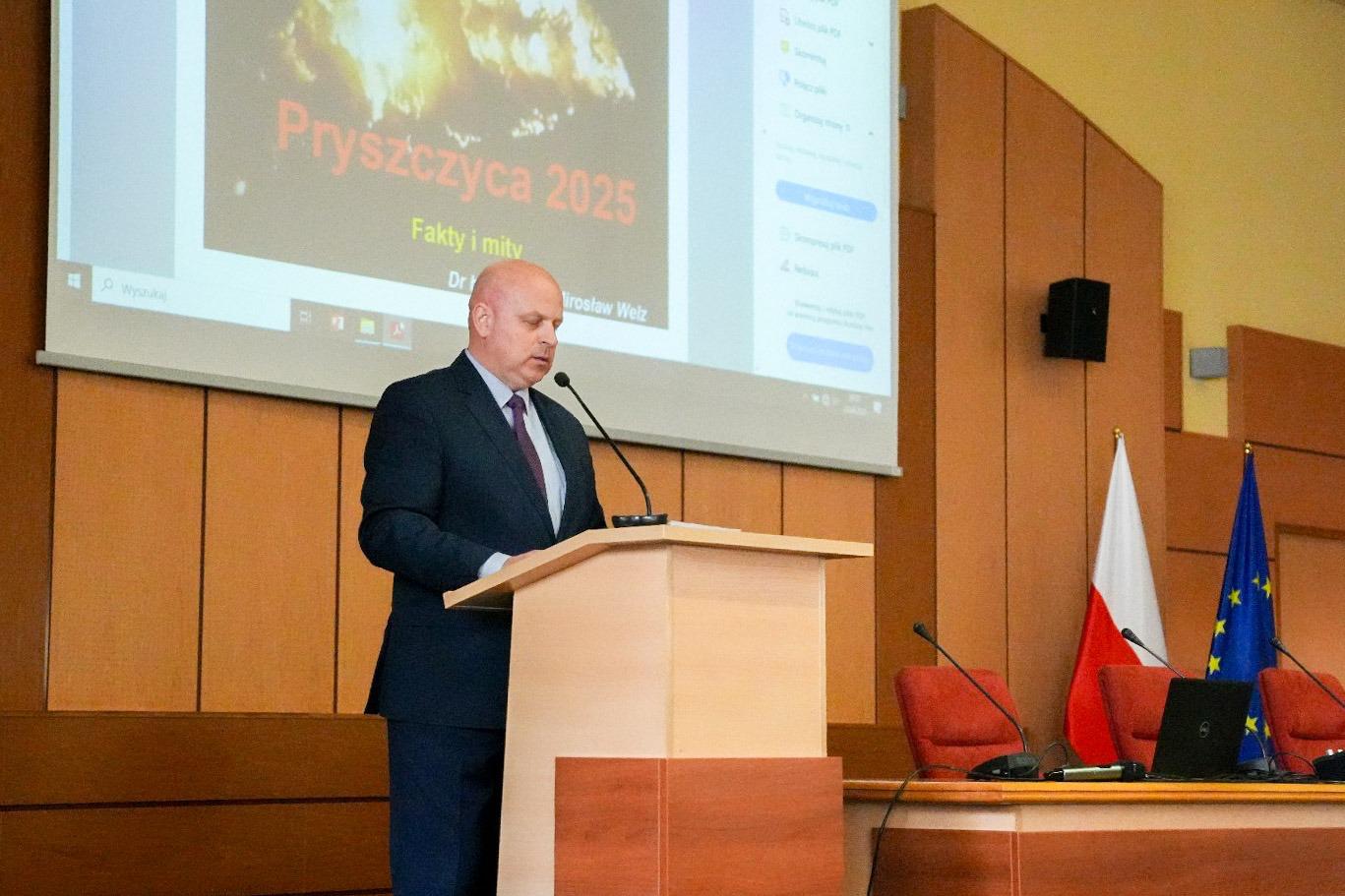 Podkarpacki Wojewódzki Lekarz Weterynarii dr hab. Mirosław Welz przedstawił zgromadzonym zagrożenia związane z wystąpieniem pryszczycy oraz zasady bioasekruacji.