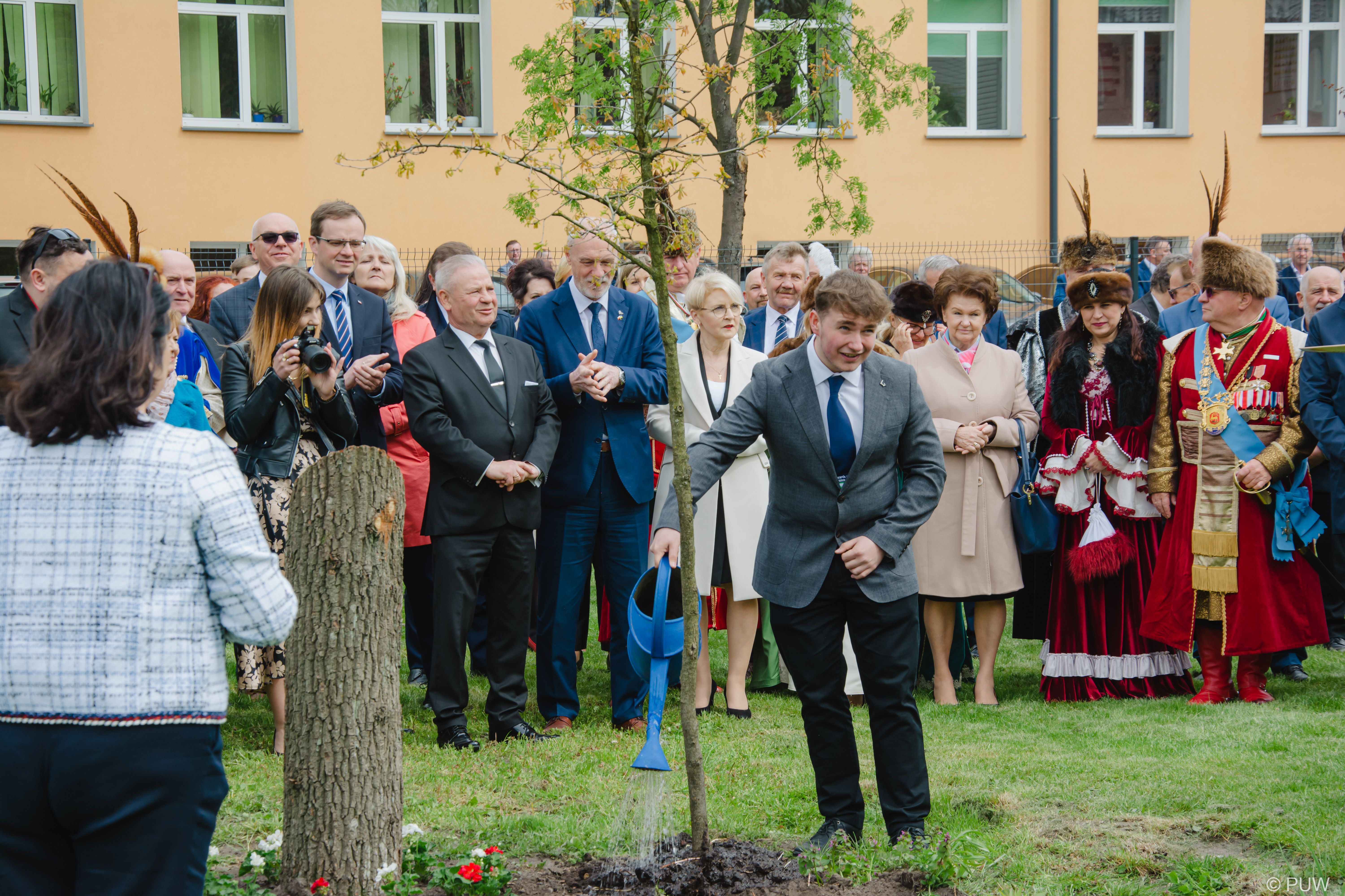 Następnie przeszli do Zespołu Szkół Weterynaryjnych i Ogólnokształcących nr 7 w Łomży. Dyrektor placówki Bogumiła Olbryś zaprosiła gości do wypełnienia tradycji związanej od 10 lat z działalnością Stowarzyszenia - posadzenia w otoczeniu szkoły dębu o imieniu "Izydor". Okazałą sadzonkę przygotowało Nadleśnictwo Łomża, a łopaty pod nią wbili m.in. europoseł Krzysztof Jurgiel, senator Marek Adam Komorowski, poseł Kazimierz Gwiazdowski, wicewojewodowie Tomasz Madras i Bogusława Szczerbińska oraz wicemarszałek województwa podlaskiego Marek Olbryś.