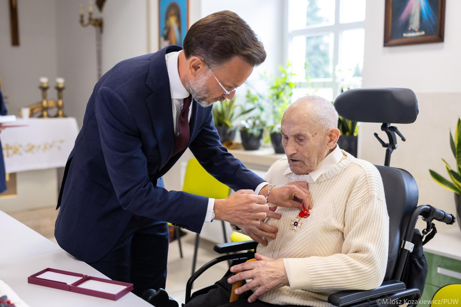 Wojewoda odwiedził zasłużonego Podlasianina w ciechanowieckim zakładzie opiekuńczo-leczniczym. W ceremonii odznaczenia Kazimierza Busmy Krzyżem Kawalerskim Orderu Odrodzenia Polski wzięła udział jego rodzina - trzy pokolenia potomków.