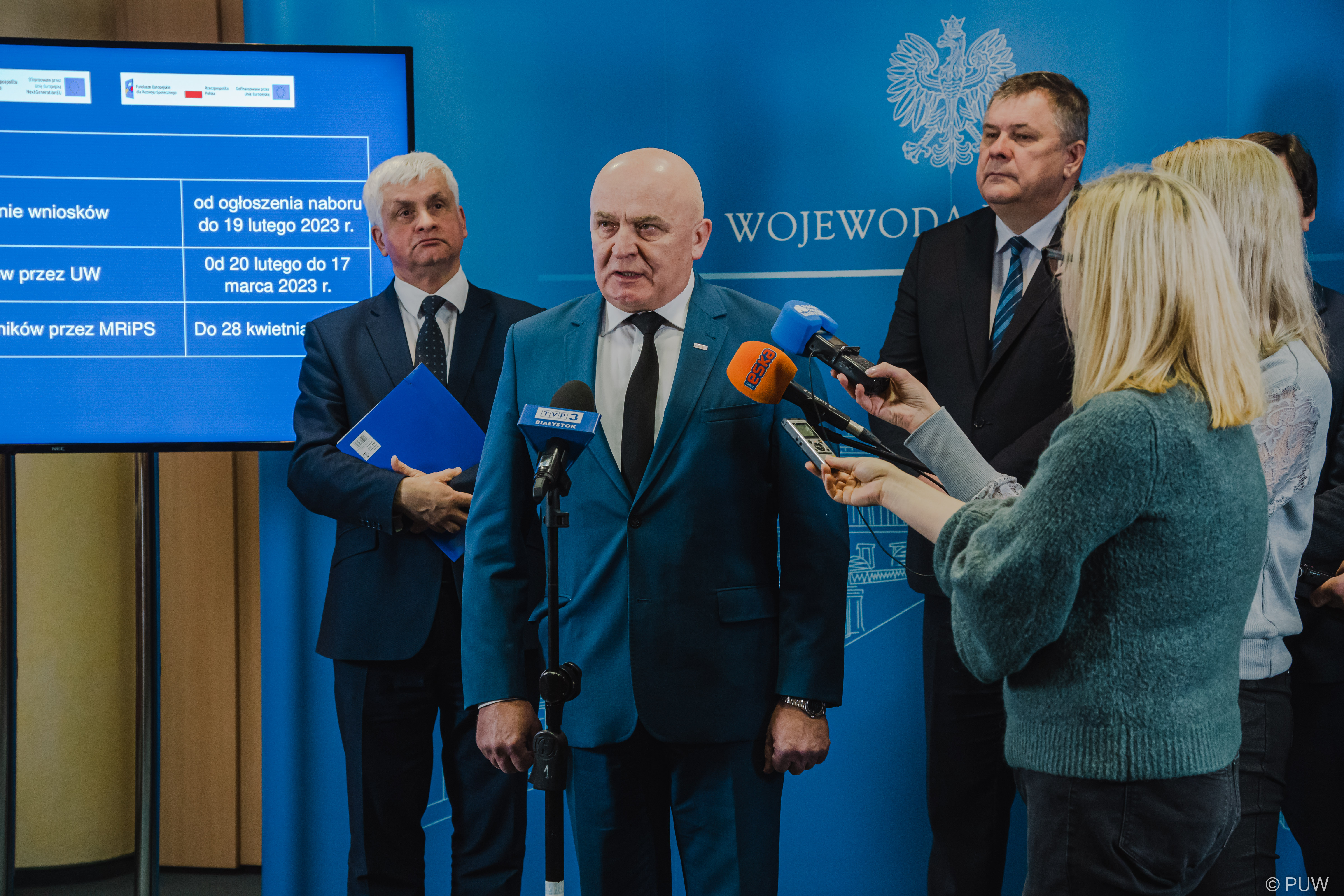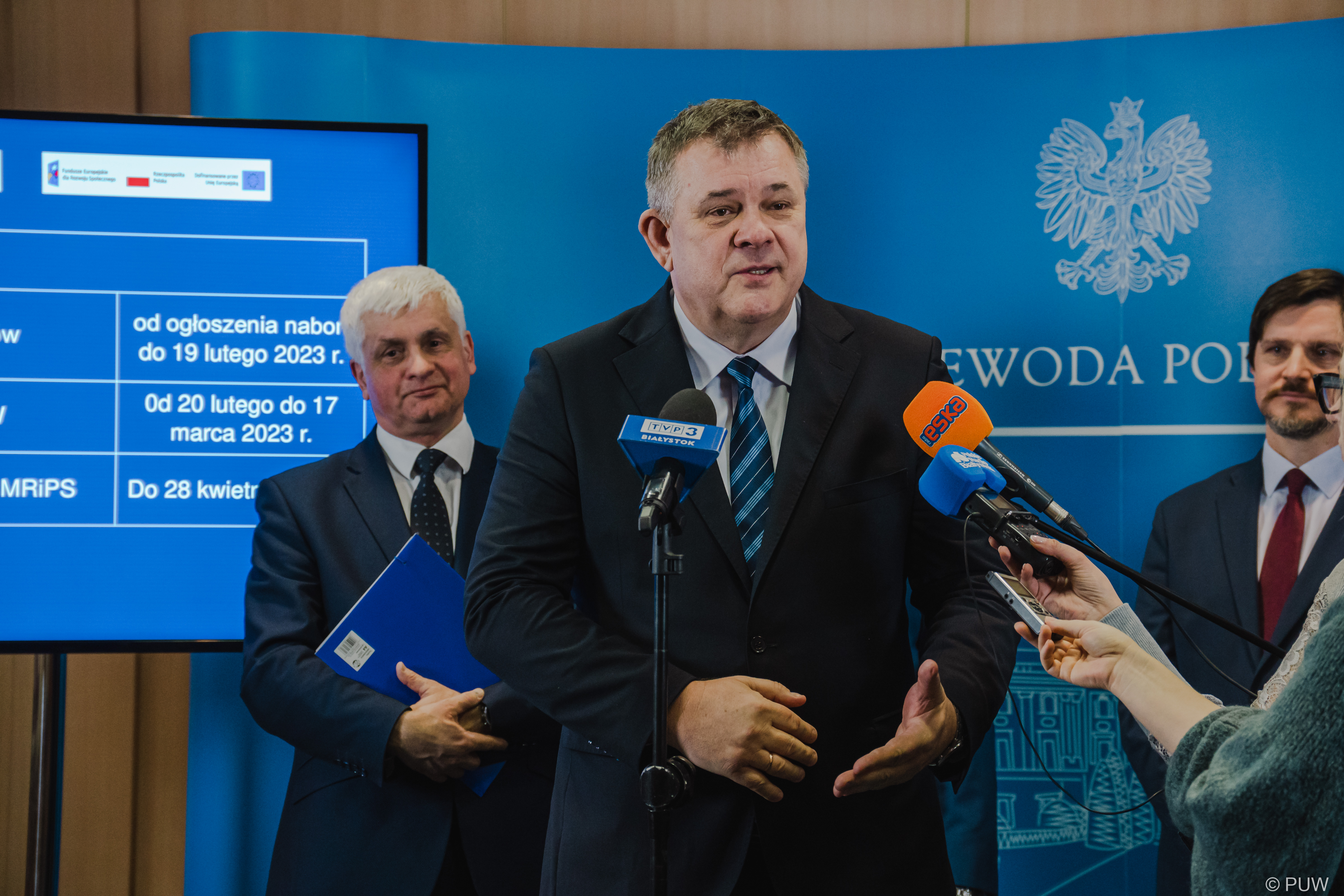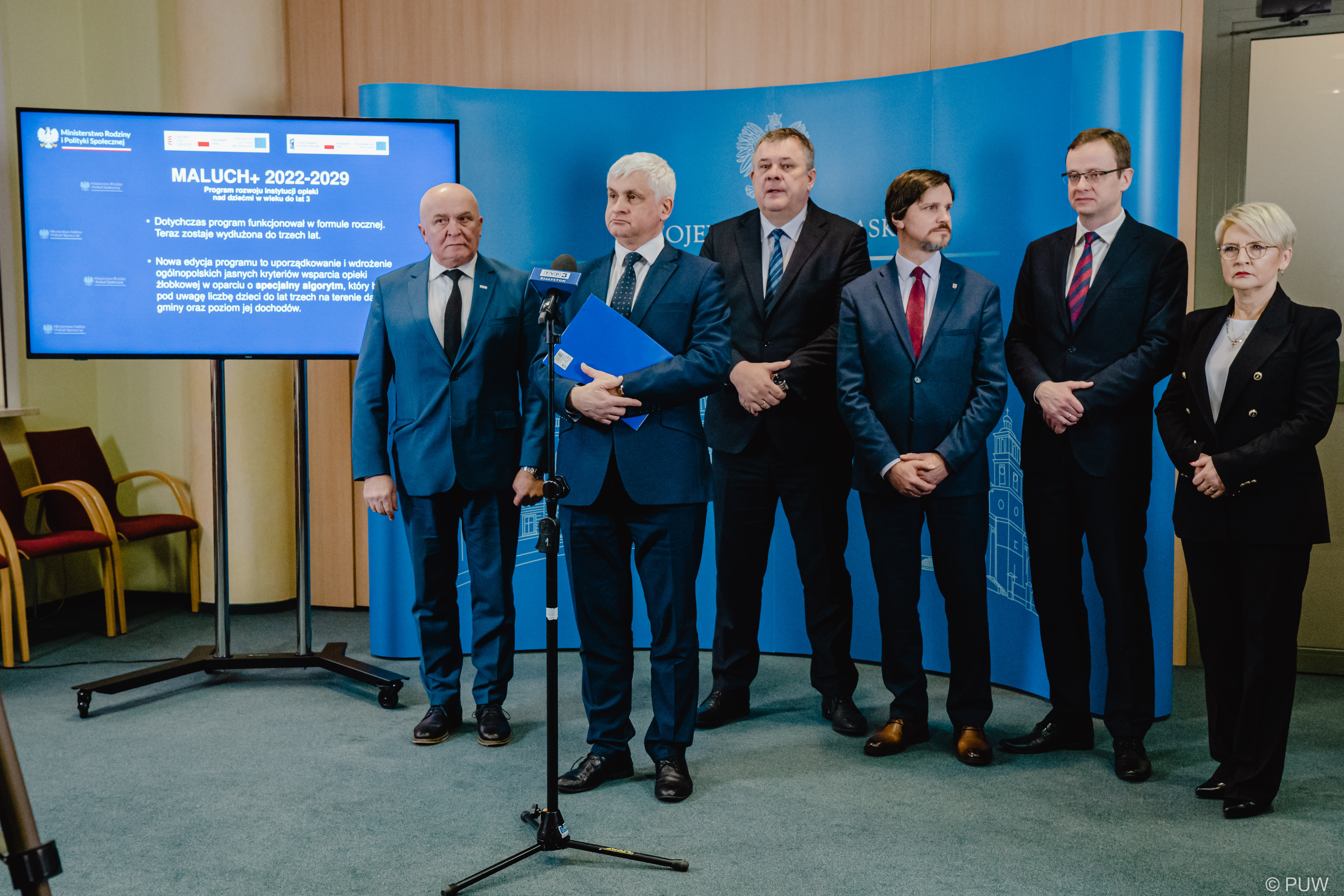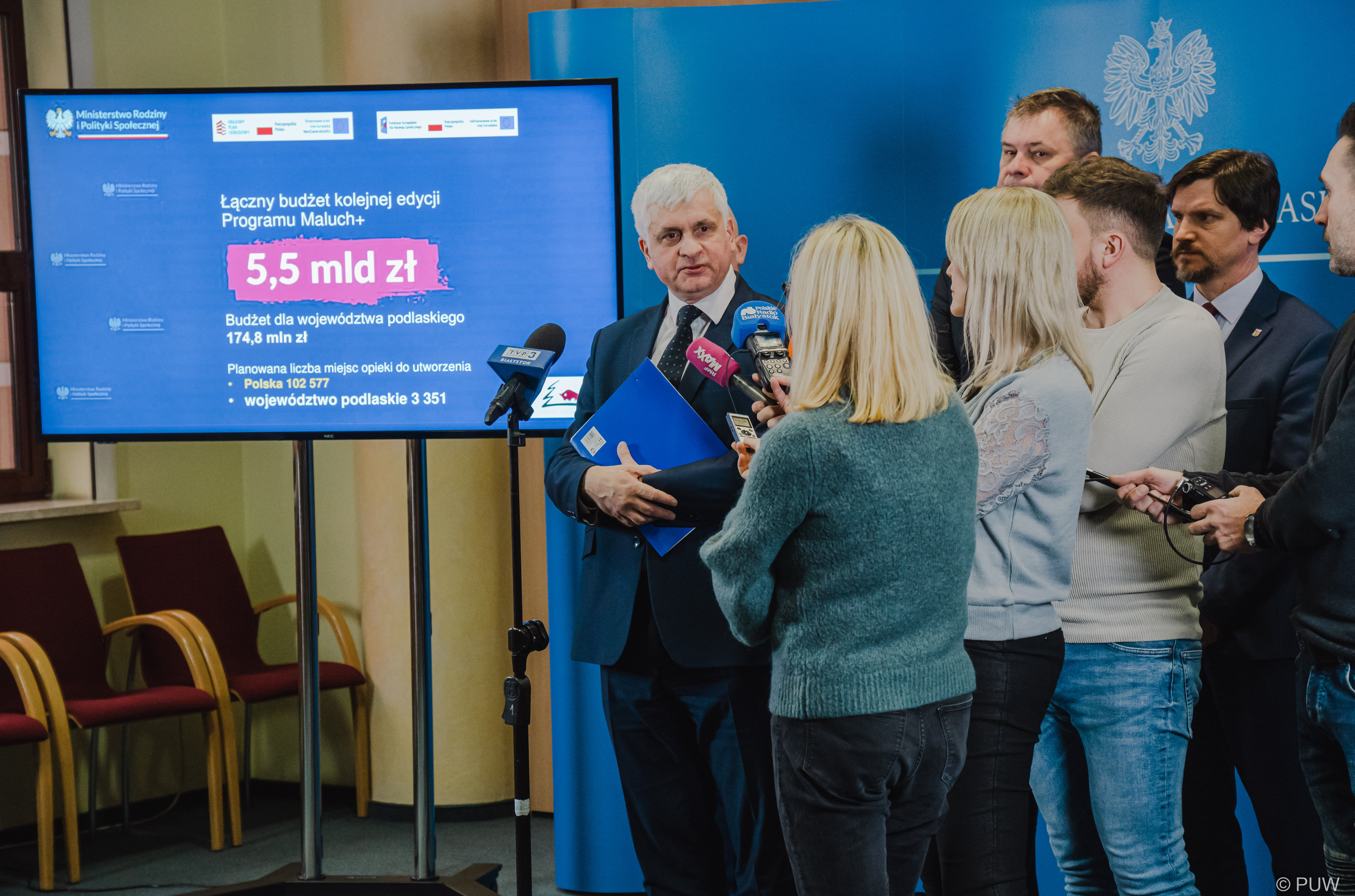 Szczegóły nowej edycji rządowego programu Maluch+ wojewoda podlaski przedstawił na briefingu prasowym poprzedzającym spotkanie z przedstawicielami samorządów, w którym wzięli również udział wicewojewodowie: Tomasz Madras i Bogusława Szczerbińska oraz przewodniczący Zarządu Związku Gmin Wiejskich Województwa Podlaskiego, wójt Turośni Kościelnej Grzegorz Jakuć, zastępca prezydenta Suwałk Roman Rynkowski oraz burmistrz Wysokiego Mazowieckiego Jarosław Siekierko.