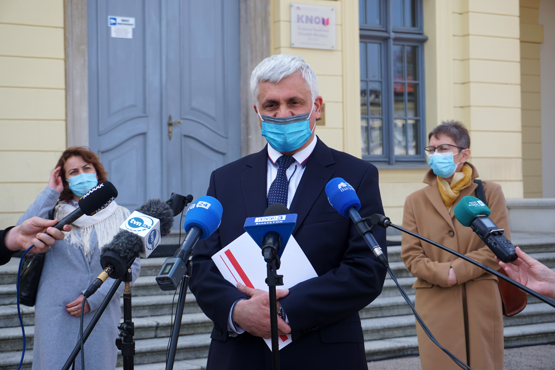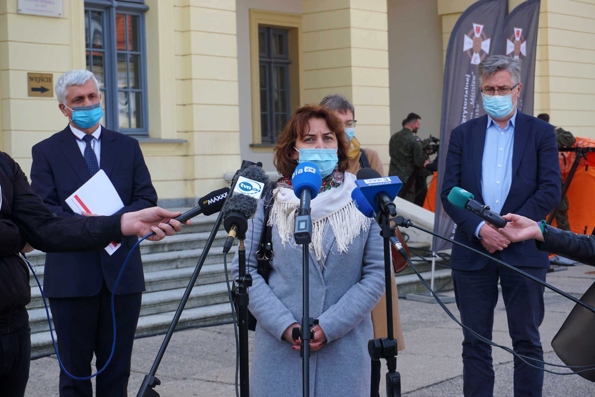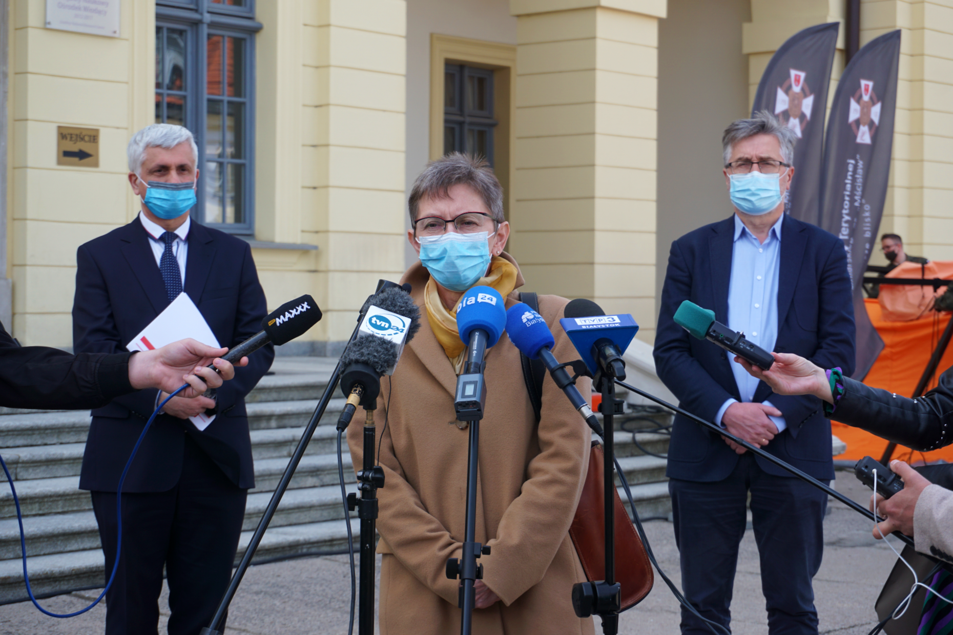 O regionalej odsłonie ogólnopolskiej akcji Zaszczep Się w Majówkę mówili w czwartek (29.04) na konferencji prasowej: wojewoda podlaski Bohdan Paszkowski, dyrektor Uniwersyteckiego Szpitala Klinicznego w Białymstoku dr hab. Jan Kochanowicz, prof. Joanna Zajkowska z Kliniki Chorób Zakaźnych i Neuroinfekcji w Białymstoku, wojewódzki konsultant ds. epidemiologii oraz dr Barbara Bebko - naczelna pielęgniarka i koordynator szczepień w USK w Białymstoku.