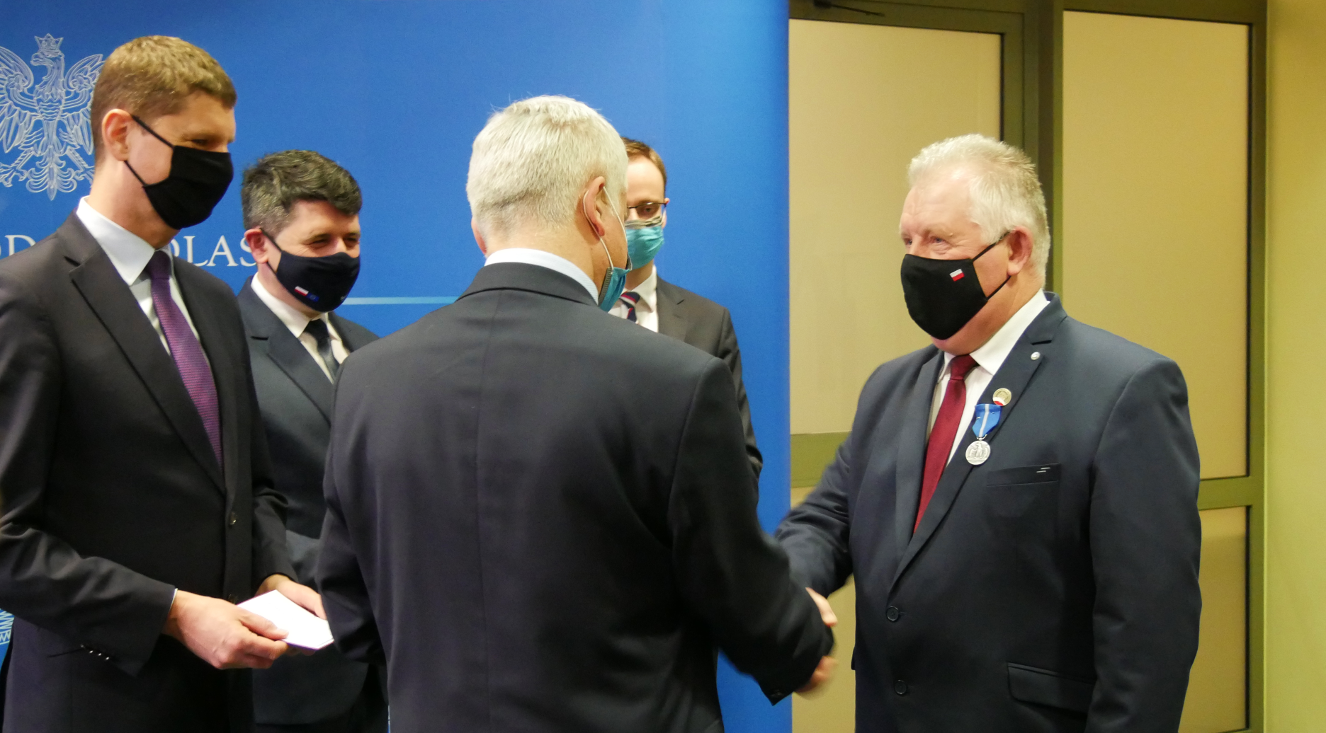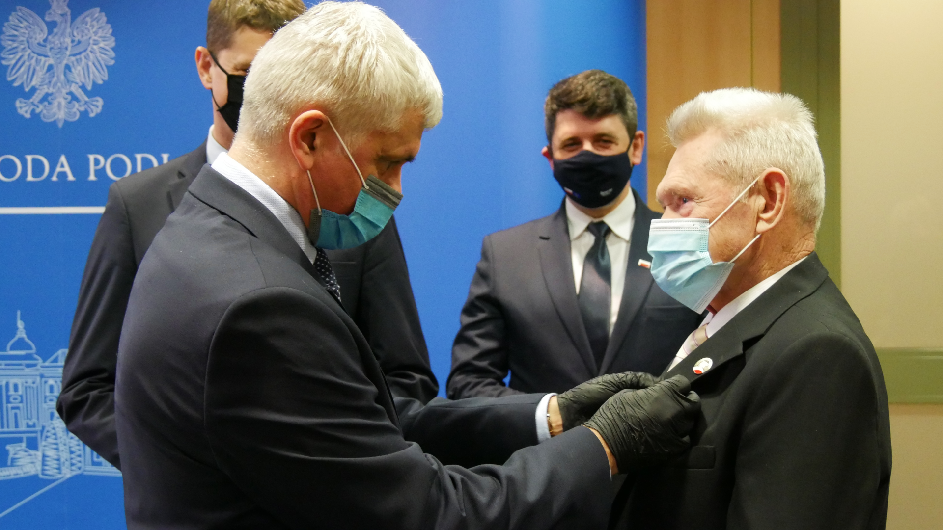 Medal Stulecia Odzyskanej Niepodległości w imieniu kpt. Franciszka Szmurło odebrał jego syn Edward Szmurło.
