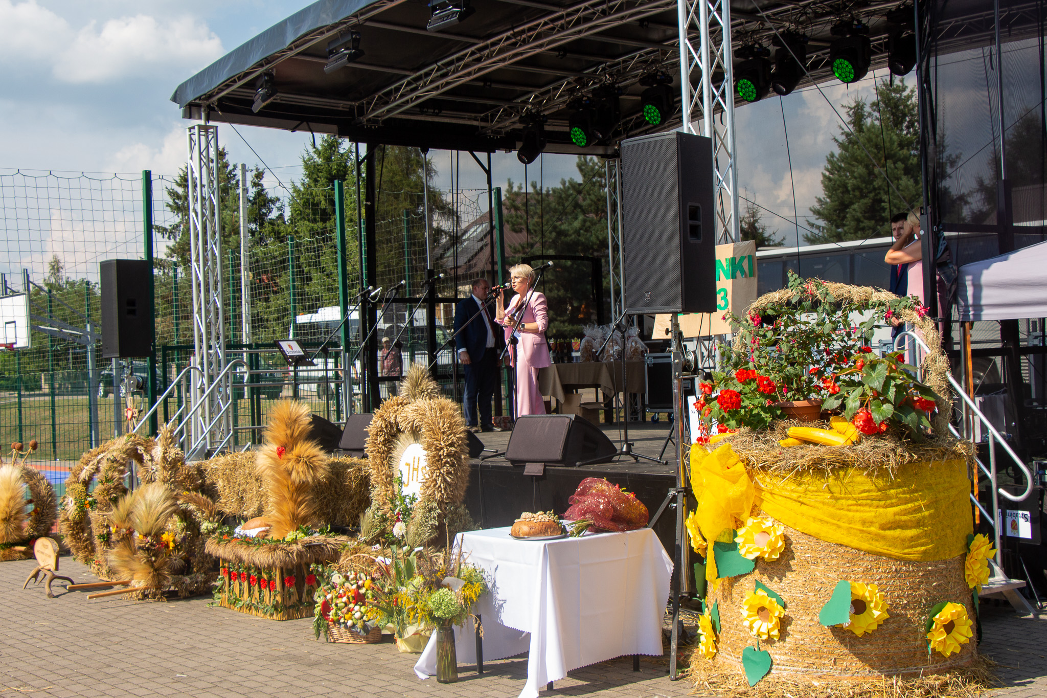 Punktem głównym był tradycyjny obrzęd przekazywania i dzielenia się chlebem wypieczonym ze zbóż z tegorocznych zbiorów. Władze Gmin: wójt Suwałk Zbigniew Mackiewicz oraz wójt Sztabina Jarosław Karp rostrzygnęli konkursy na najładniejsze wieńce dożynkowe czy bukiety z kwiatów i owoców. Na scenie zaprezentowały się lokalne zespoły, orkiestry dęte oraz artyści muzyki rozrywkowej.