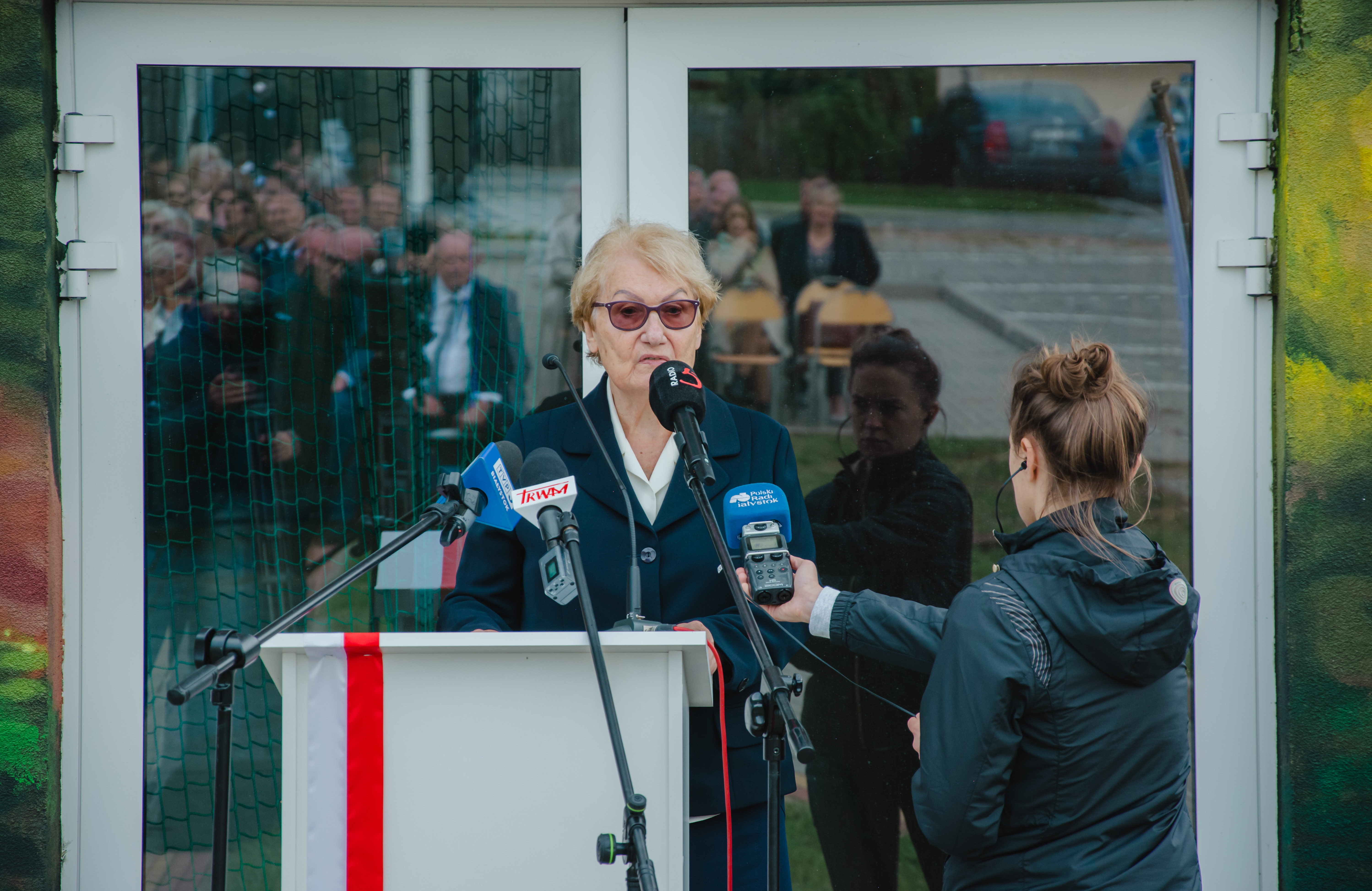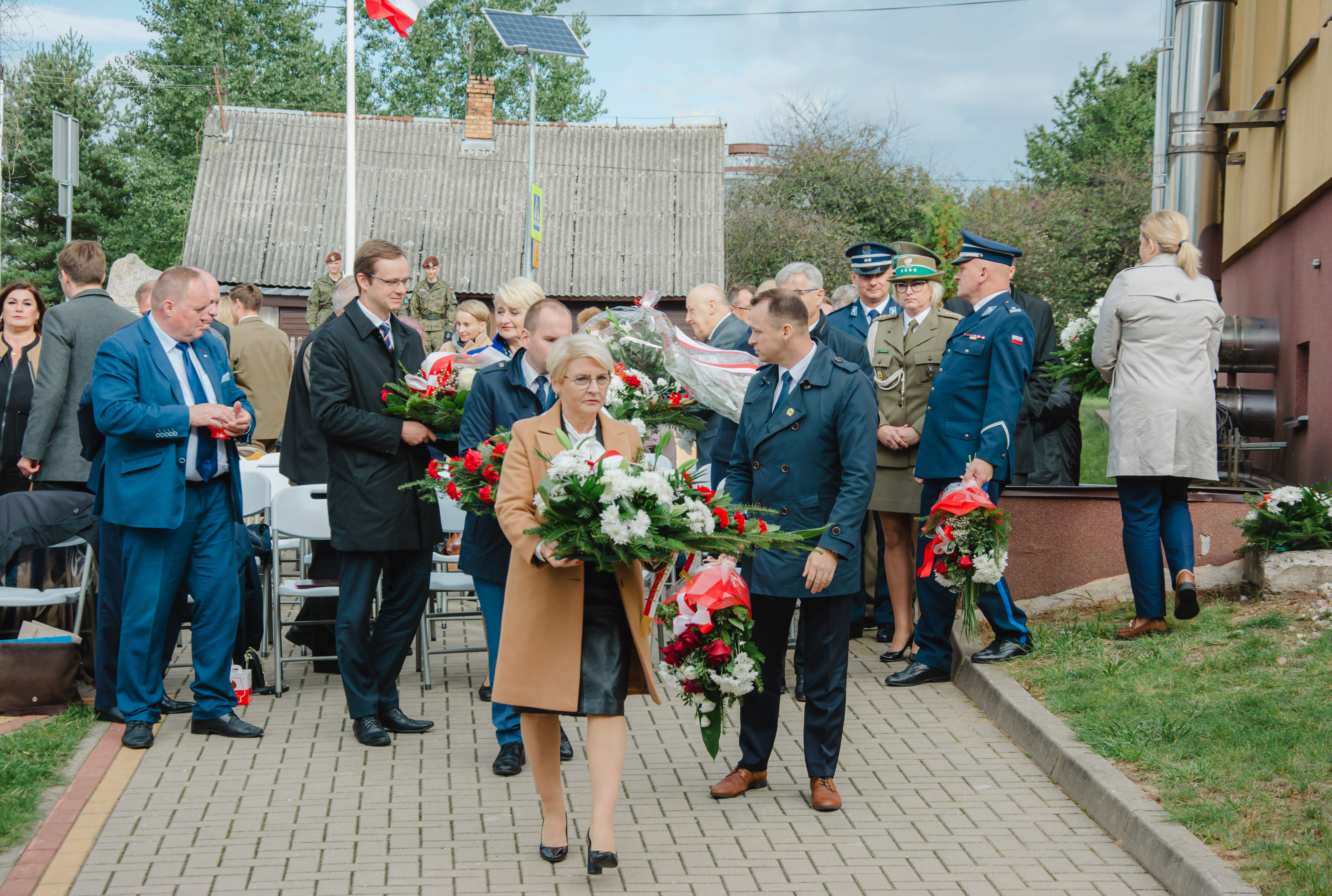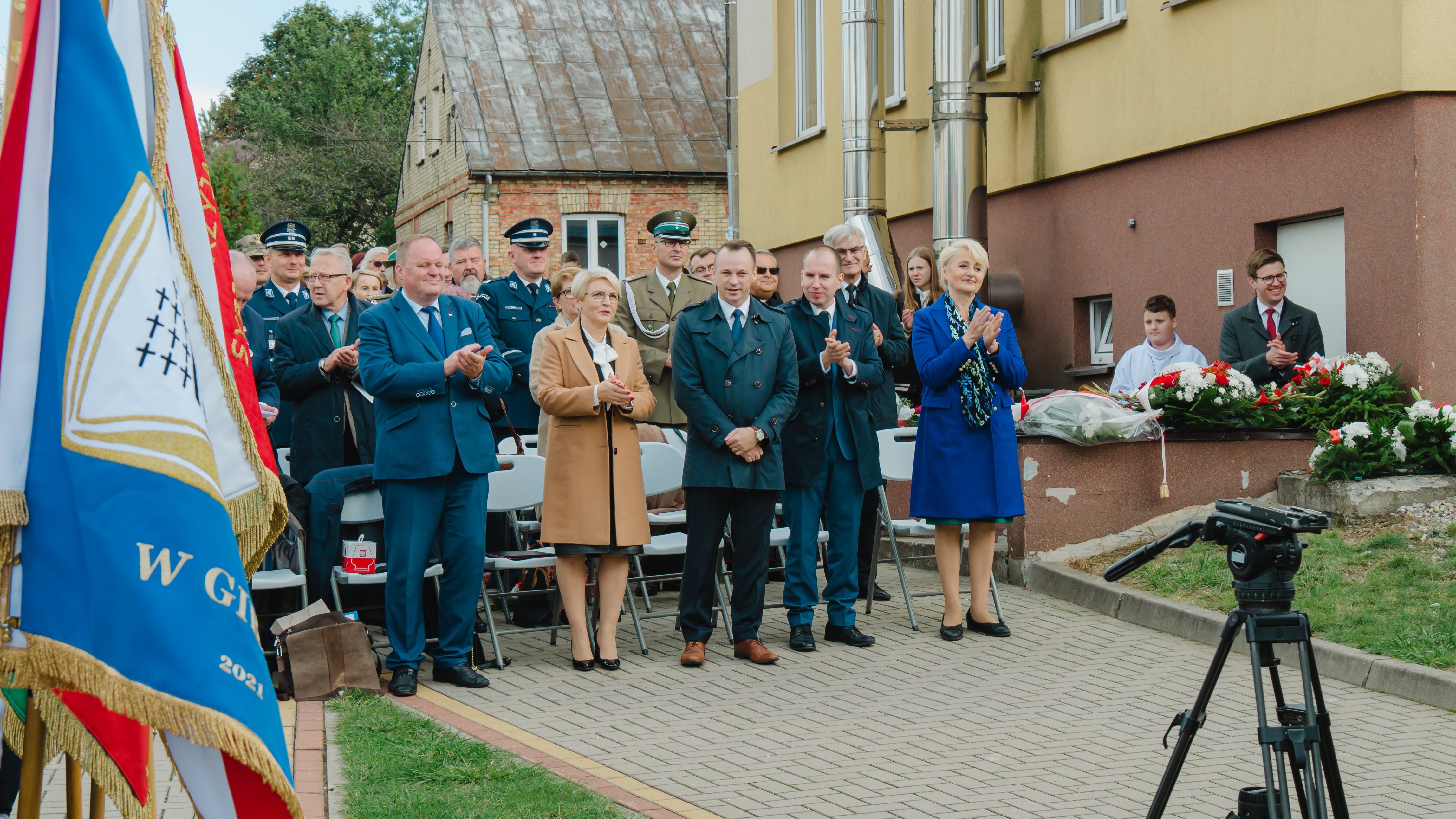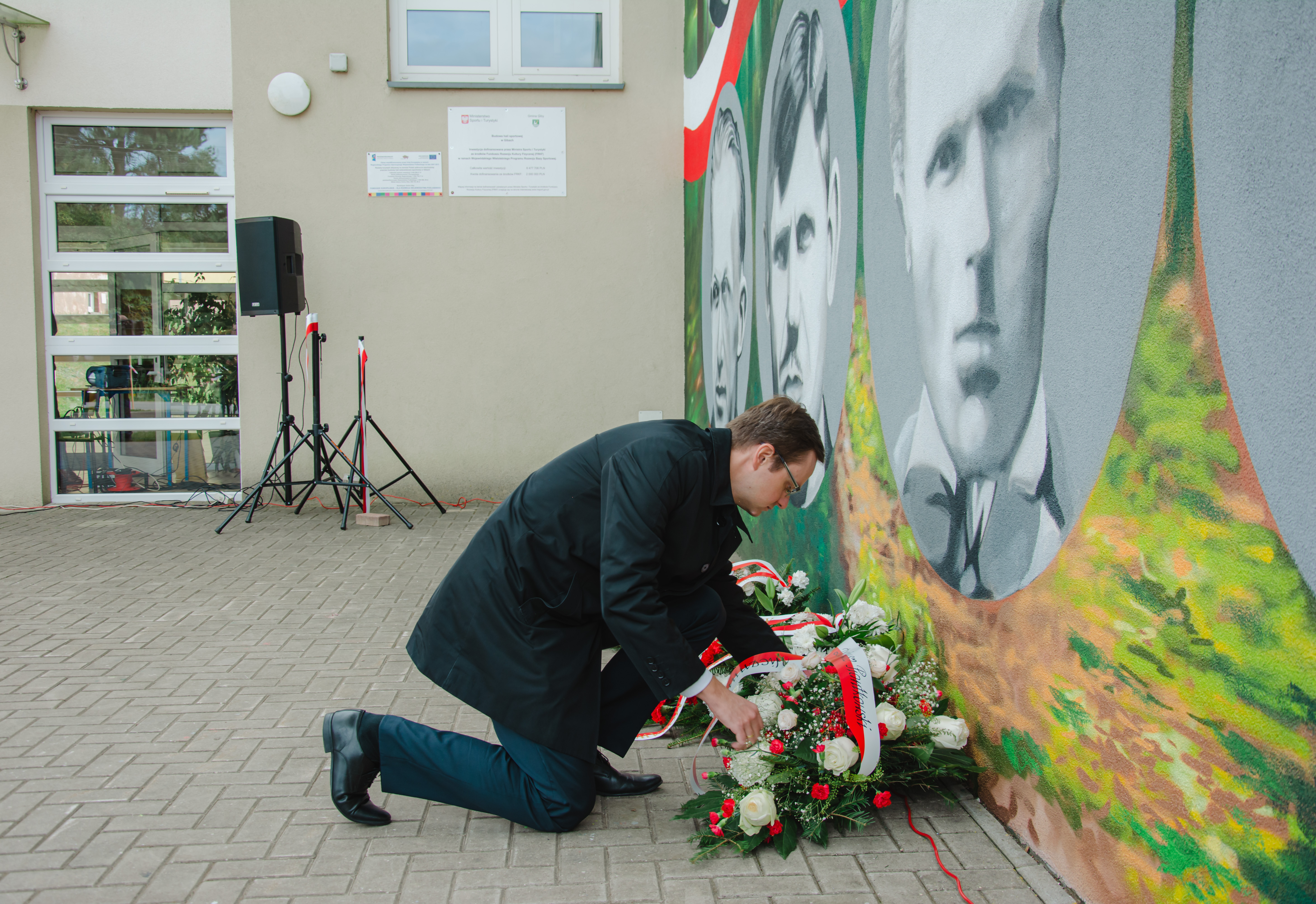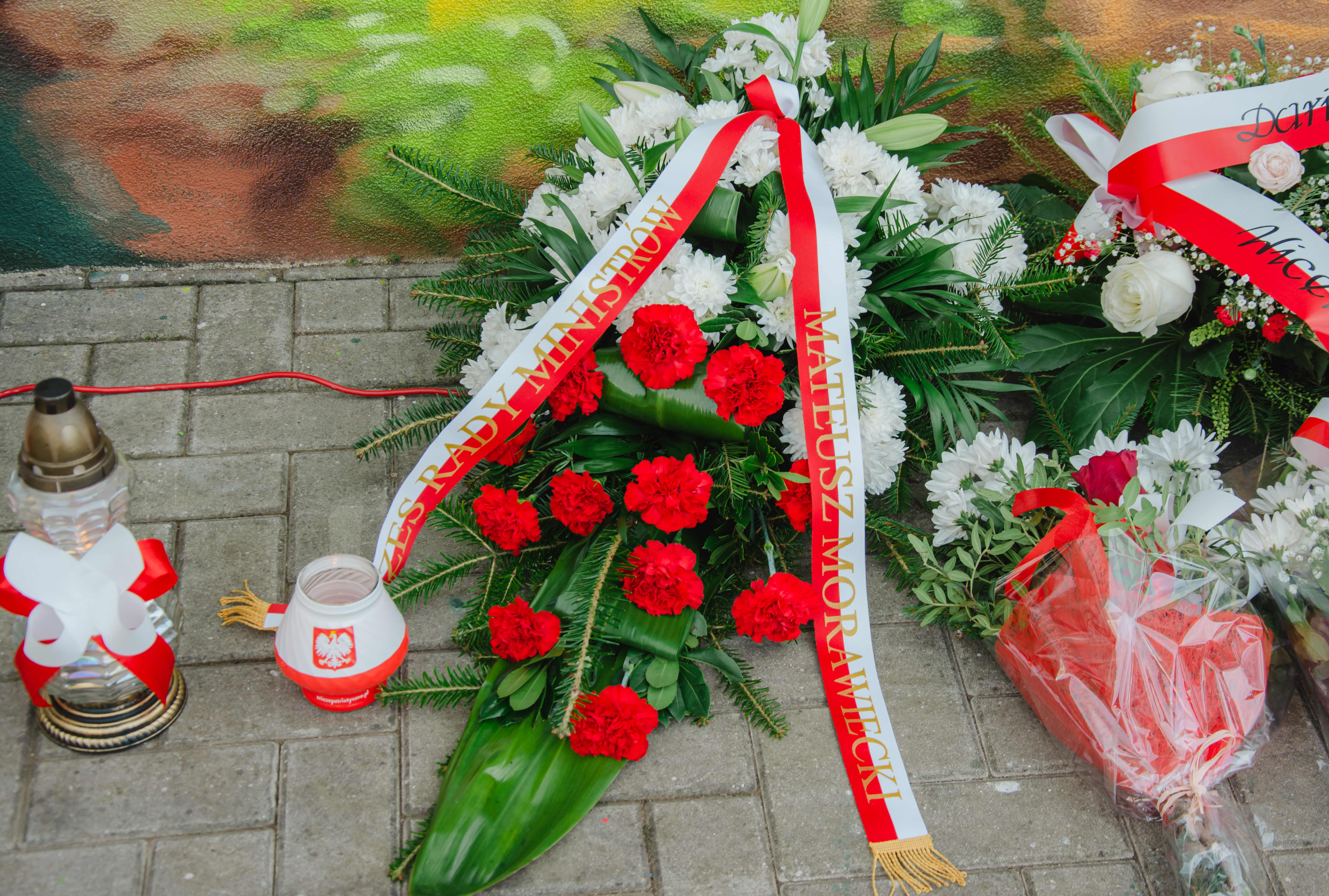 Po okolicznościowych przemówieniach złożono kwiaty pod muralem. Wicewojewoda Bogusława Szczerbińska złożyła w imieniu premiera Mateusza Morawieckiego oficjalny wieniec Prezesa Rady Ministrów. Wicewojewoda Tomasz Madras złożył natomiast kwiaty od wiceministra edukacji i nauki Dariusza Piontkowskiego, a wcześniej odczytał jego list do uczestników.