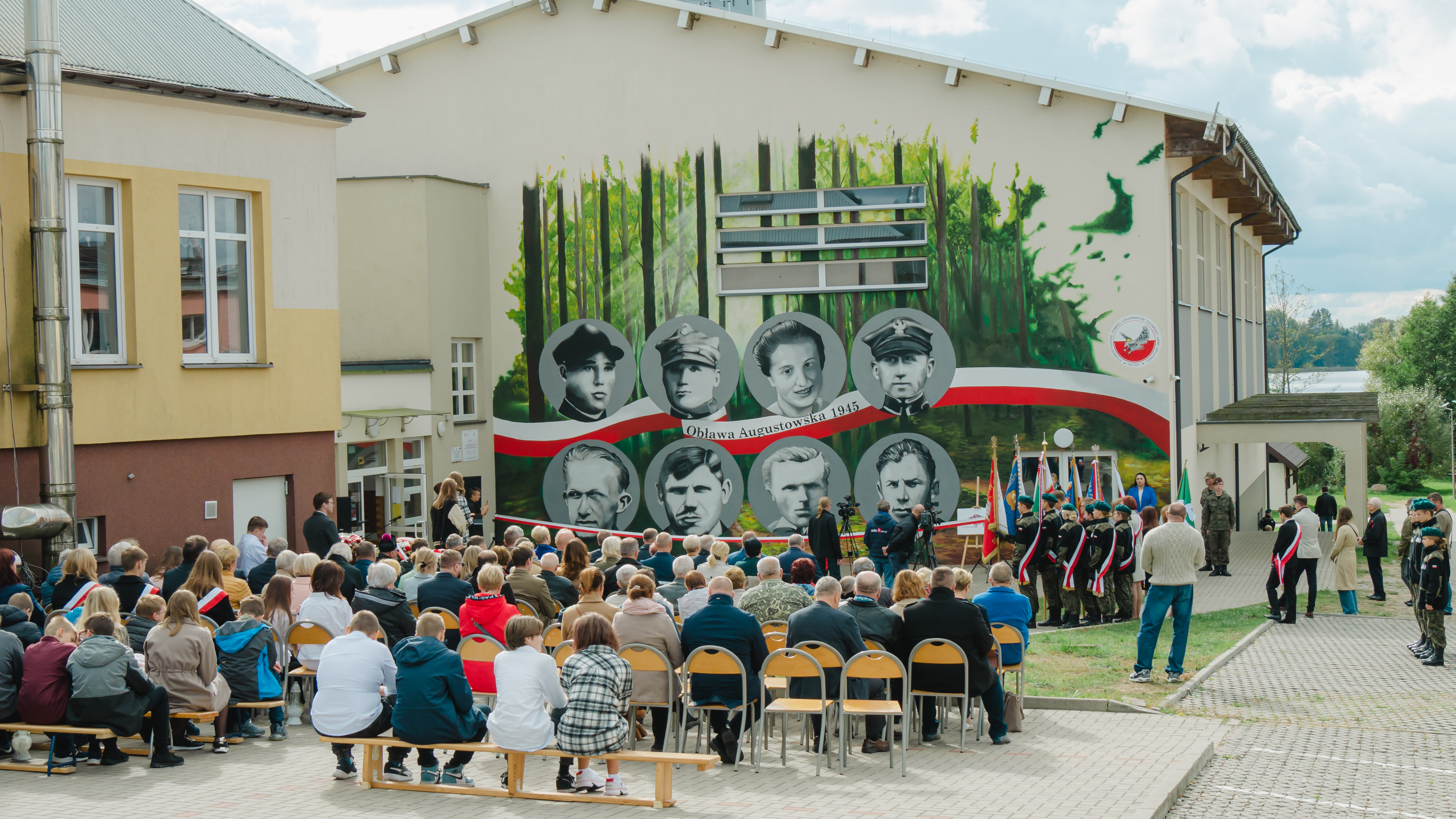 Na elewacji Szkoły Podstawowej w Gibach powstała grafika upamiętniająca Ofiary Obławy Augustowskiej. Mural jest hołdem dla działaczy podziemia niepodległościowego i ma przypominać młodym mieszkańcom o największej sowieckiej zbrodni popełnionej na Polakach po zakończeniu w Europie II wojny światowej. W piątek (23.09) odbyło się jego uroczyste odsłonięcie. W wydarzeniu wzięli udział wicewojewodowie Tomasz Madras i Bogusława Szczerbińska.