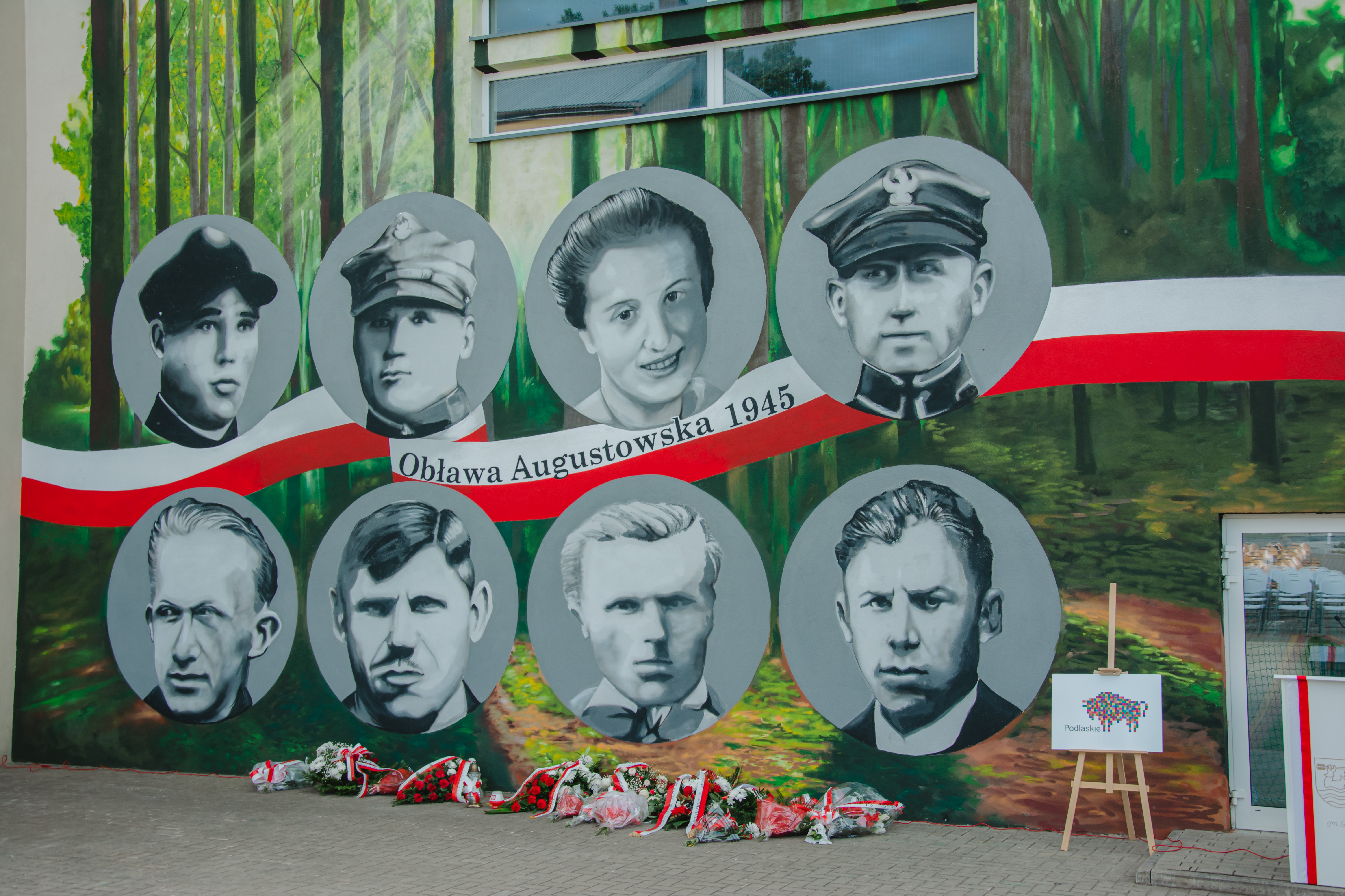 Kolejnym, kulminacyjnym punktem wydarzenia było uroczyste odsłonięcie muralu, który zdobi elewację hali sportowej Szkoły Podstawowej. Prezentuje on portrety polskich patriotów, pojmanych 77 lat temu przez Sowietów, wywiezionych i zamordowanych w Obławie Augustowskiej. Jedną z upamiętnionych w ten sposób postaci jest Stanisław Żabicki, były sołtys wsi Zelwa. W czasach II wojny światowej działał w podziemiu niepodległościowym. W 1945 roku został aresztowany przez NKWD - był torturowany, a następnie zamordowany. Inną - Zyta Kucharzewska, łączniczka AK-owskiego Oddziału w Puszczy Augustowskiej, która zginęła mając niespełna 20 lat.