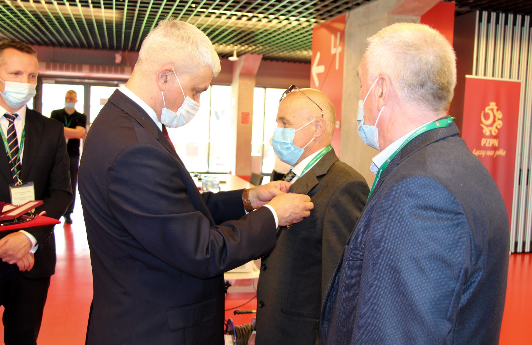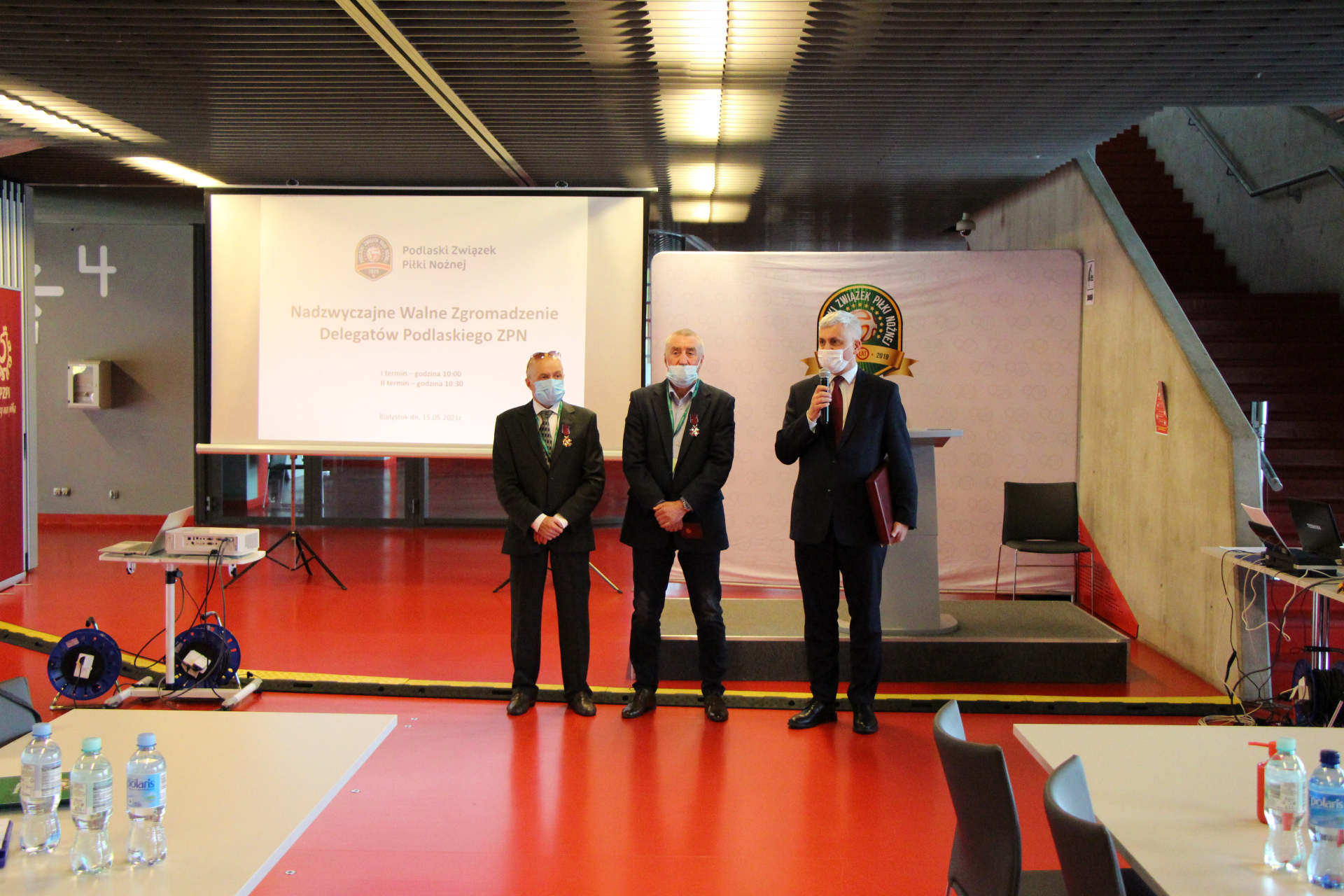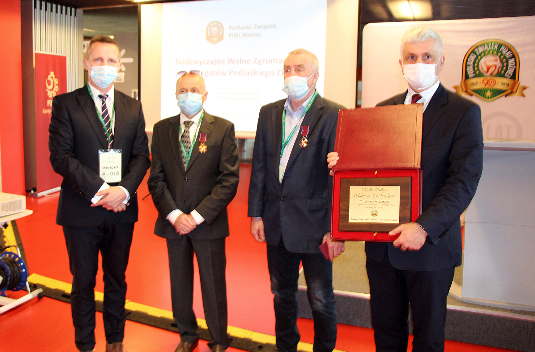 W sobotę (15.05) wojewoda podlaski Bohdan Paszkowski, podczas Nadzwyczajnego Walnego Zebrania Delegatów Podlaskiego Związku Piłki Nożnej, wręczył dwa Krzyże Zasługi trenerom z regionu: Sławomirowi Pogorzelskiemu i Mirosławowi Mojsiuszce.