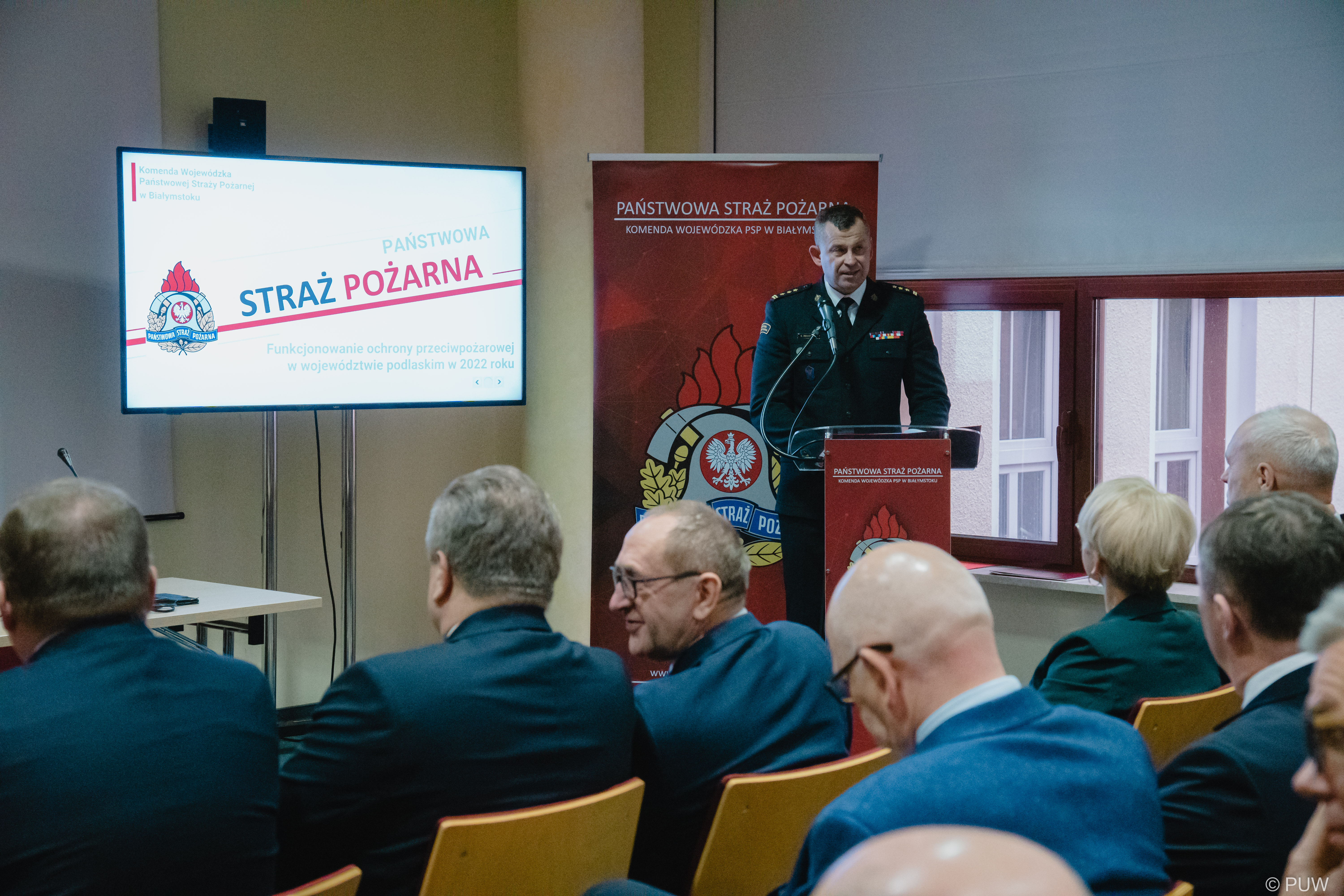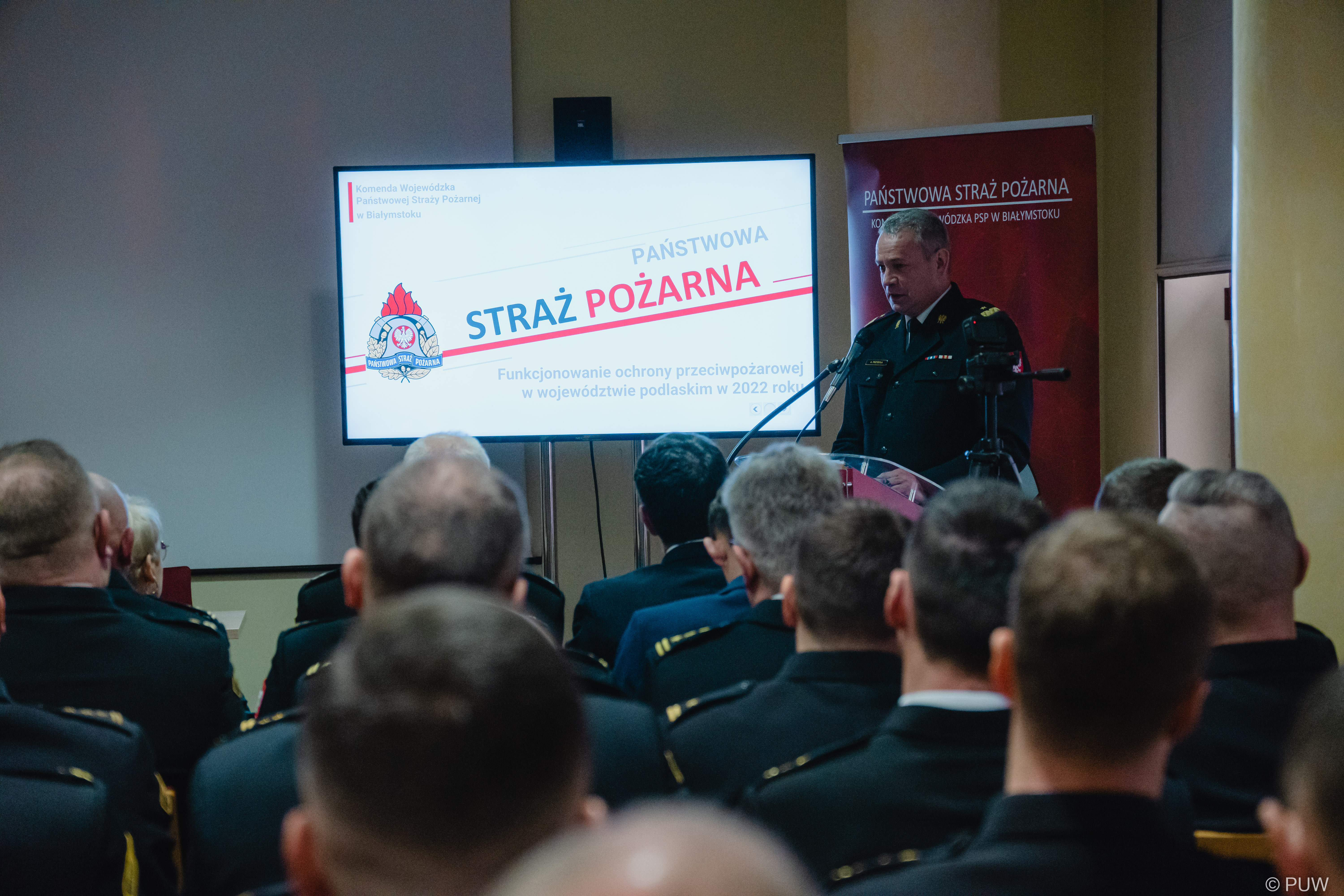 W swoim wystąpieniu przedstawił i podsumował działalność jednostek PSP i OSP na obszarze województwa podlaskiego w 2022 roku, omówił zrealizowane zadania, a także złożył wyczerpujące informacje dotyczące funkcjonowania krajowego systemu ratowniczo-gaśniczego na terenie województwa podlaskiego.