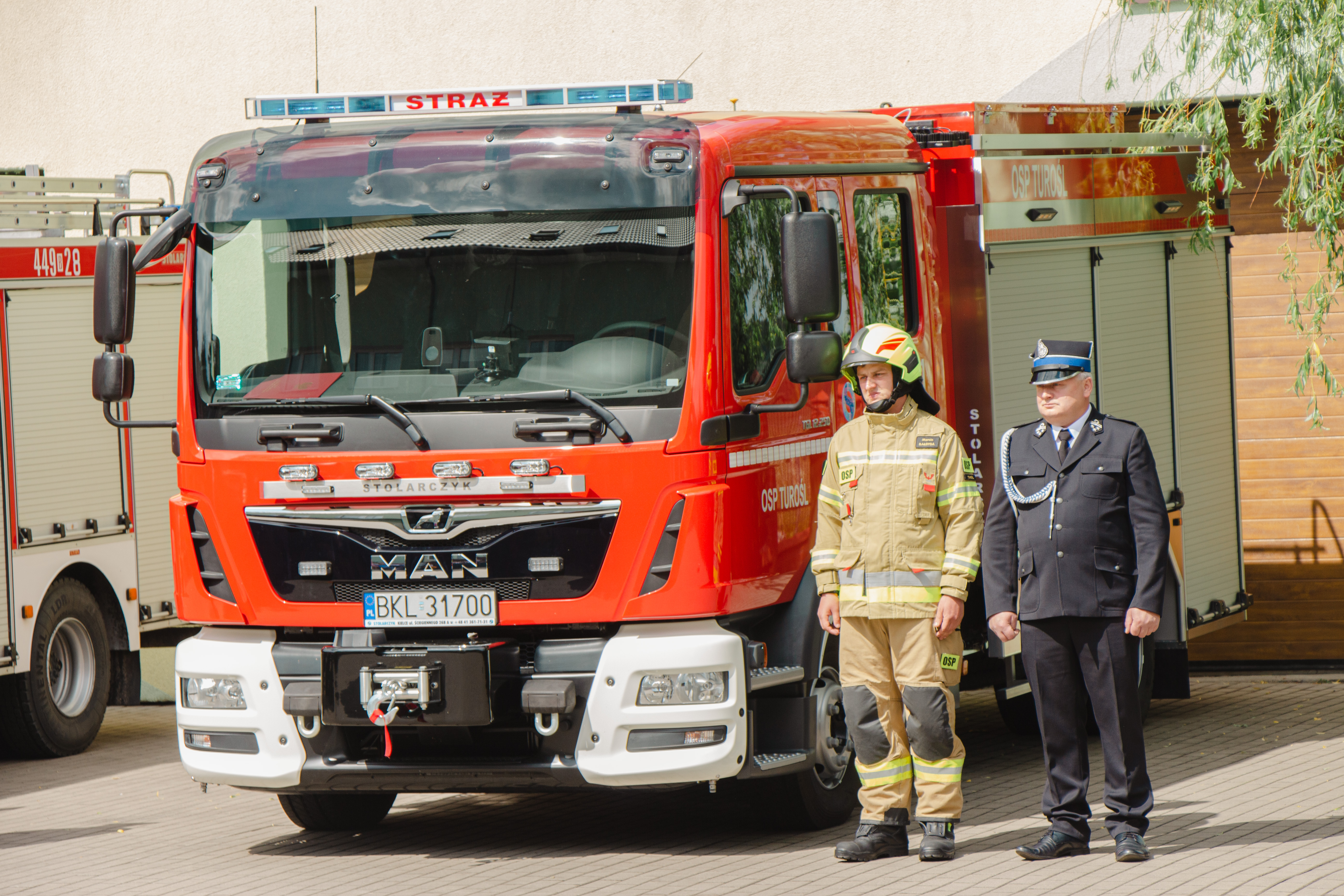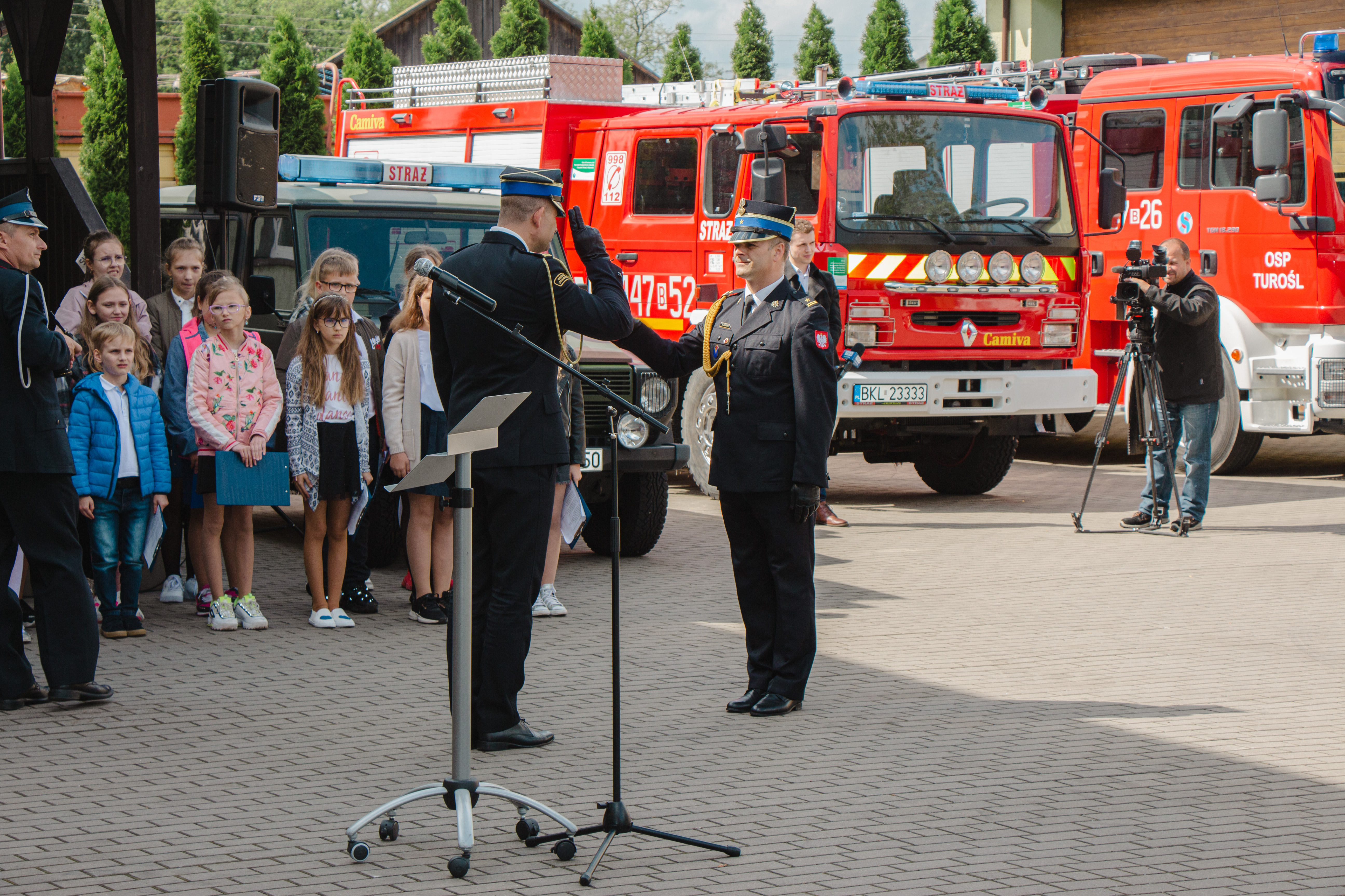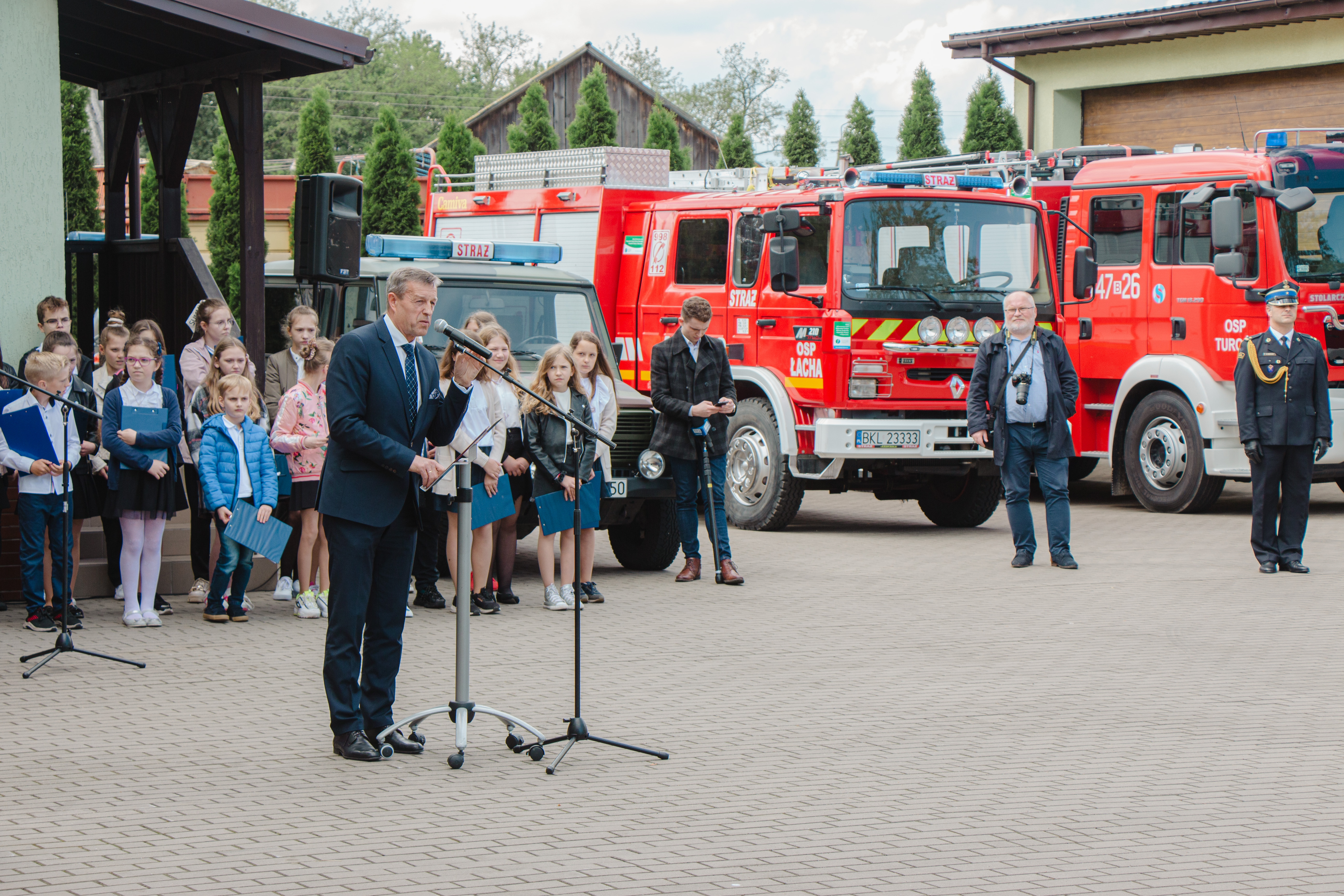 Przekazanie wozu strażackiego było elementem obchodów Dnia Strażaka w Gminie Turośl.