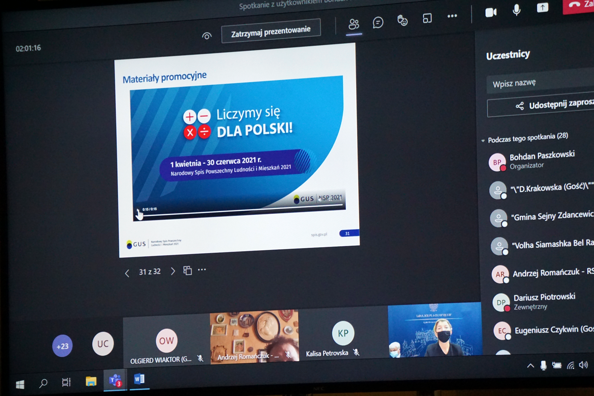 We wtorek (23.03) w Podlaskim Urzędzie Wojewódzkim odbyła się wideokonferencja, podczas której przedstawiciele Urzędu Statystycznego w Białymstoku, wojewoda podlaski oraz pełnomocnik wojewody do spraw mniejszości narodowych i etnicznych przedstawili szczegóły zbliżającego się Narodowego Spisu Powszechnego Ludności i Mieszkań 2021 samorządowcom oraz organizacjom pozarządowym reprezentującym mniejszości.