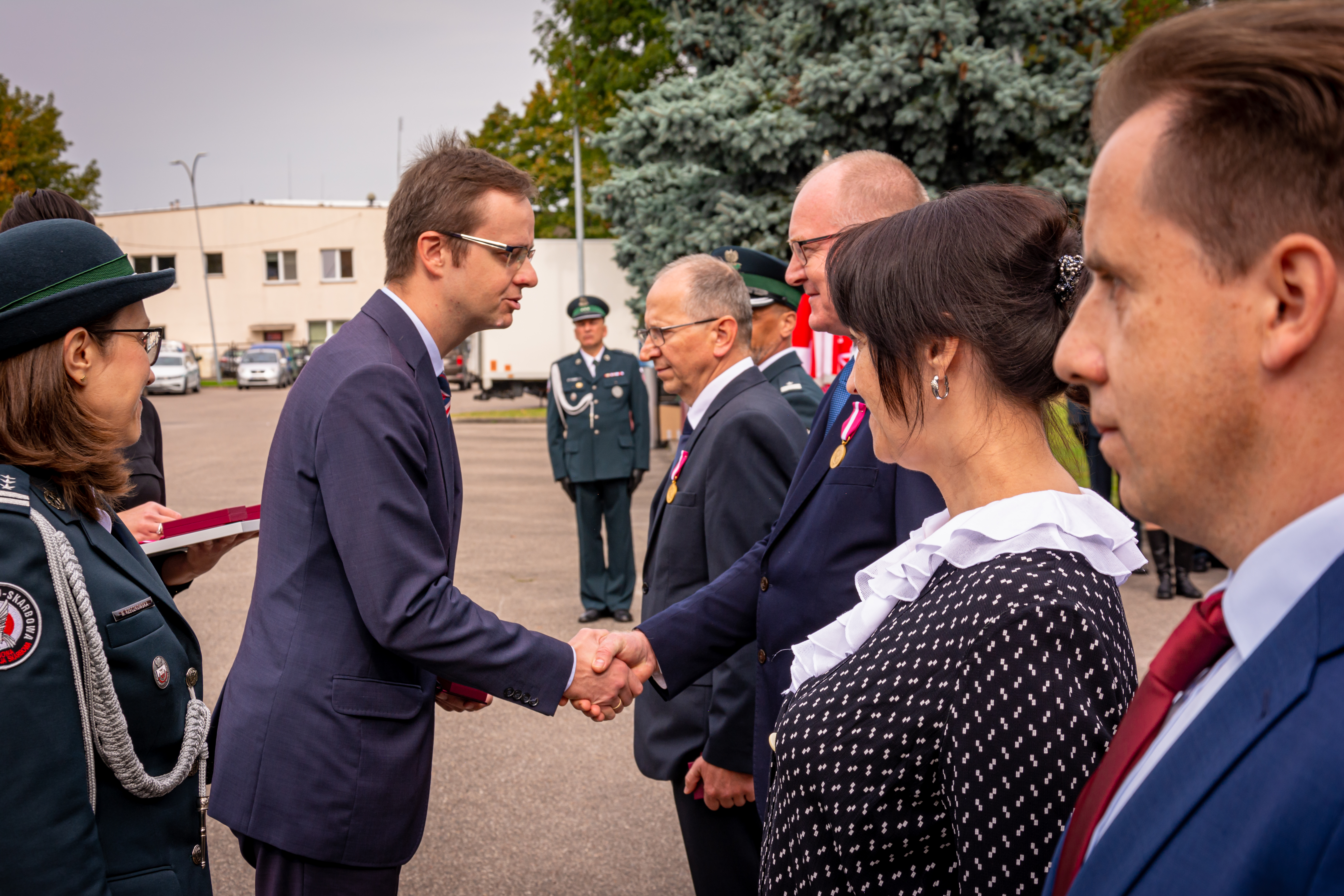 Życzenia i gratulacje z okazji przyznanych odznaczeń i awansów złożyli wyróżnionym także wicewojewoda podlaski Tomasz Madras oraz w imieniu marszałka Województwa Podlaskiego sekretarz Województwa Podlaskiego Tomasz Szeweluk.