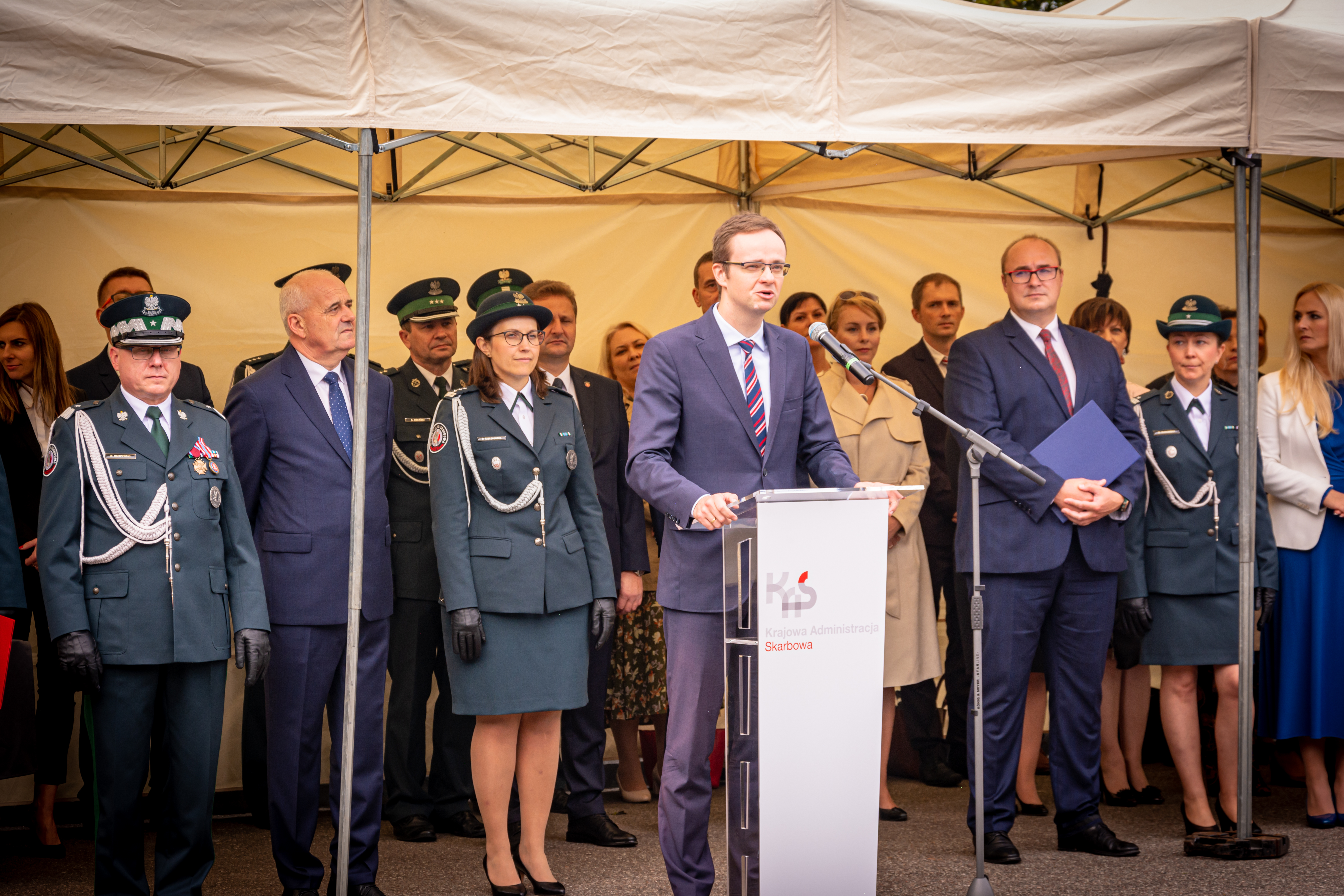 Zwracając się do kadry kierowniczej oraz pracowników i funkcjonariuszy, szefowa KAS minister Magdalena Rzeczkowska podkreśliła, że podlaska KAS jest liderem w zakresie wyników badań jakości obsługi podatników, ma znaczący wkład we wdrażanie w KAS innowacyjnych rozwiązań, a ponadto od innych jednostek KAS różni się tym, że oprócz obsługi rynku wewnętrznego ma również granicę zewnętrzną Unii Europejskiej co wiąże się z dodatkowym wysiłkiem wkładanym w jej ochronę.