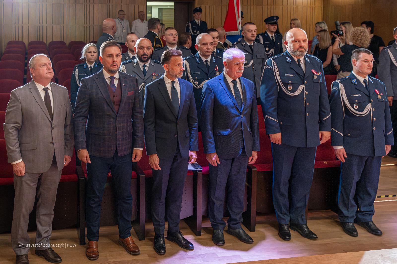 Uroczystość była okazją, by podziękować funkcjonariuszom i pracownikom Policji za ich służbę i zaangażowanie. Decyzją ministra spraw wewnętrznych i administracji Złotą Odznakę "Zasłużony Policjant" otrzymał komendant powiatowy. 15 funkcjonariuszy awansowało na wyższe stopnie.