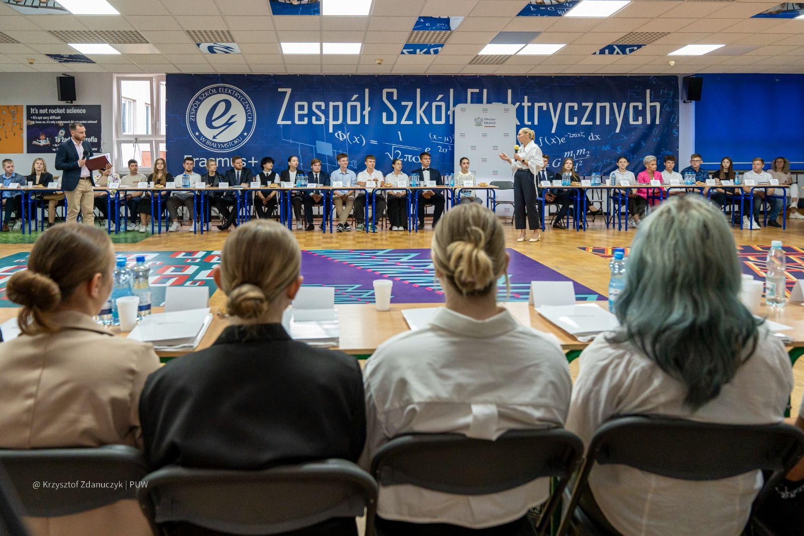 Ponad stu uczniów z podlaskich szkół ponadpodstawowych wzięło udział w pilotażowym Okrągłym Stole Uczniowskim, do którego zaprosiła wszystkich ministra edukacji narodowej Barbara Nowacka. Spotkanie odbyło się w Zespole Szkół Elektrycznych w Białymstoku. Dyskusji z uczniami przysłuchiwał się wojewoda podlaski Jacek Brzozowski.