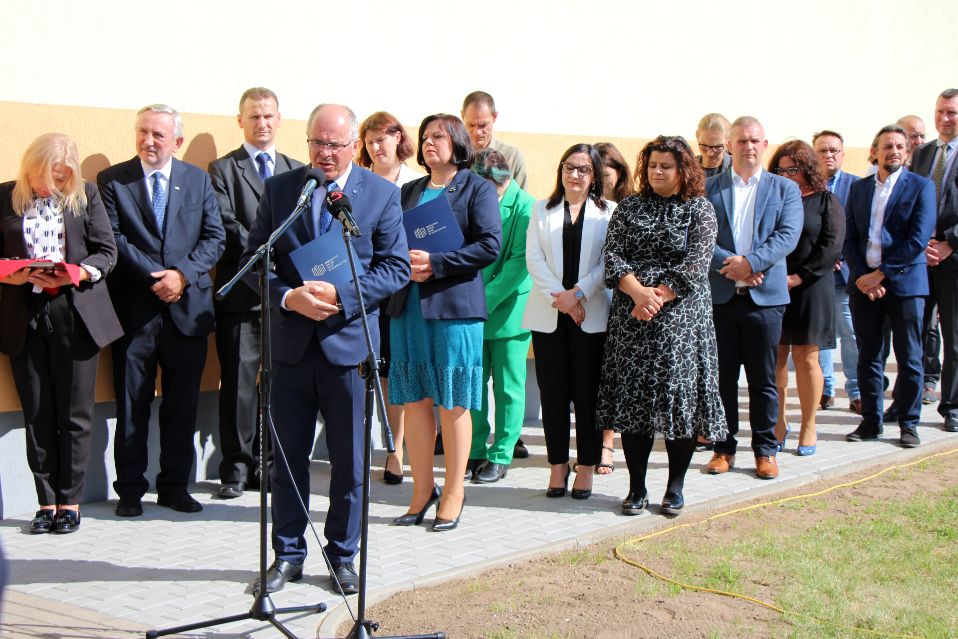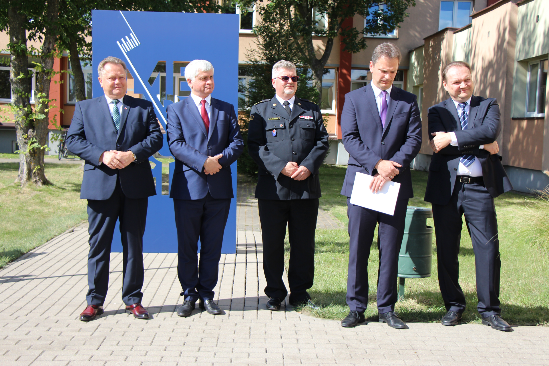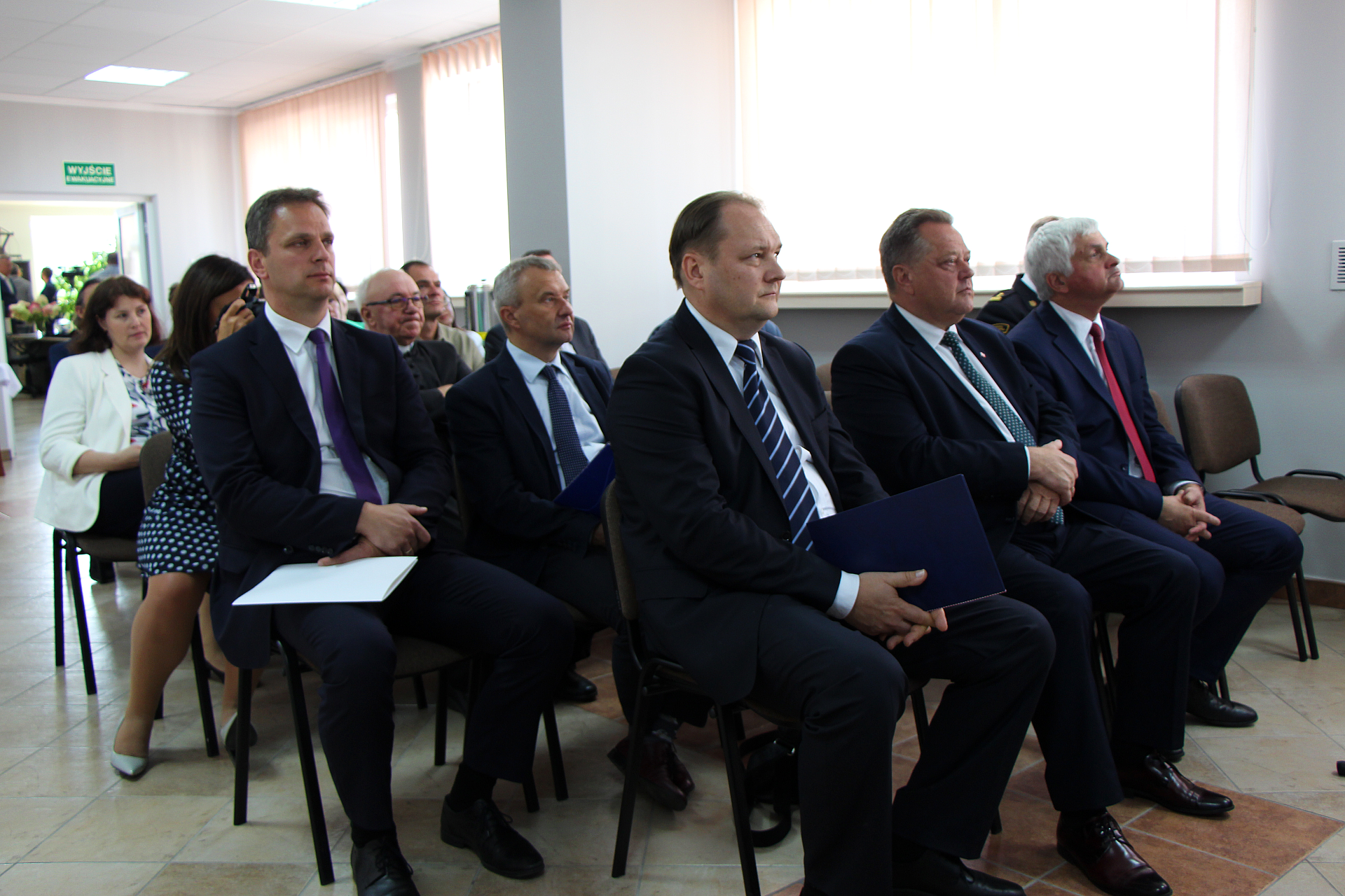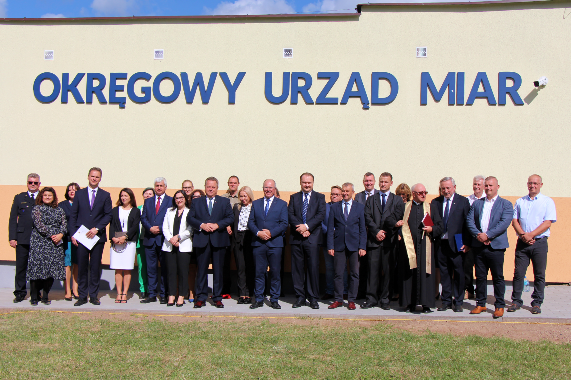 Mariusz Wójcicki z Głównego Urzędu Miar, dyrektor Okręgowego Urzędu Miar w Białymstoku Mirosław Wnorowski, poseł Jarosław Zieliński oraz wojewoda podlaski Bohdan Paszkowski symbolicznie przecięli wstęgę na znak inauguracji działalności suwalskiej placówki w nowej siedzibie.