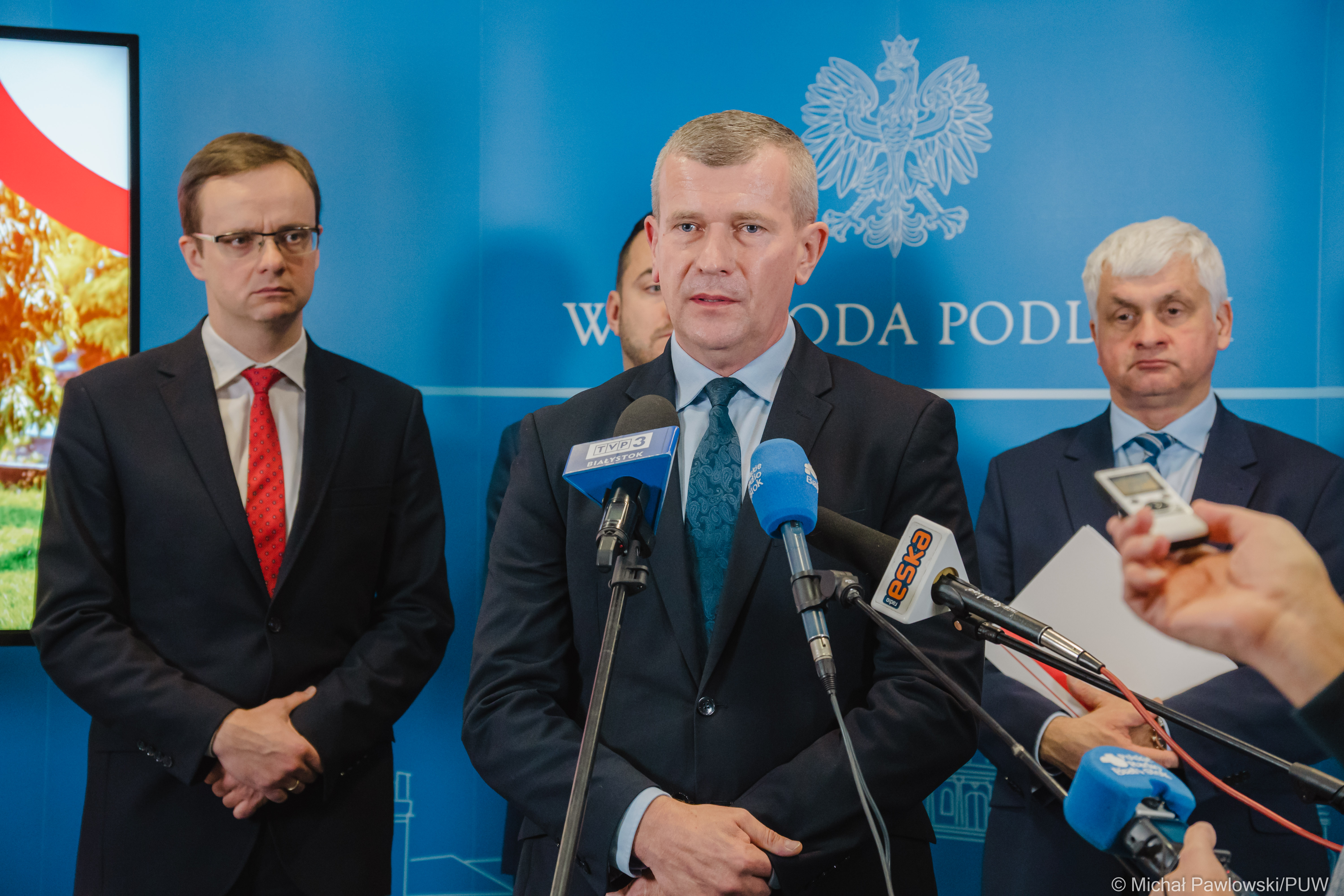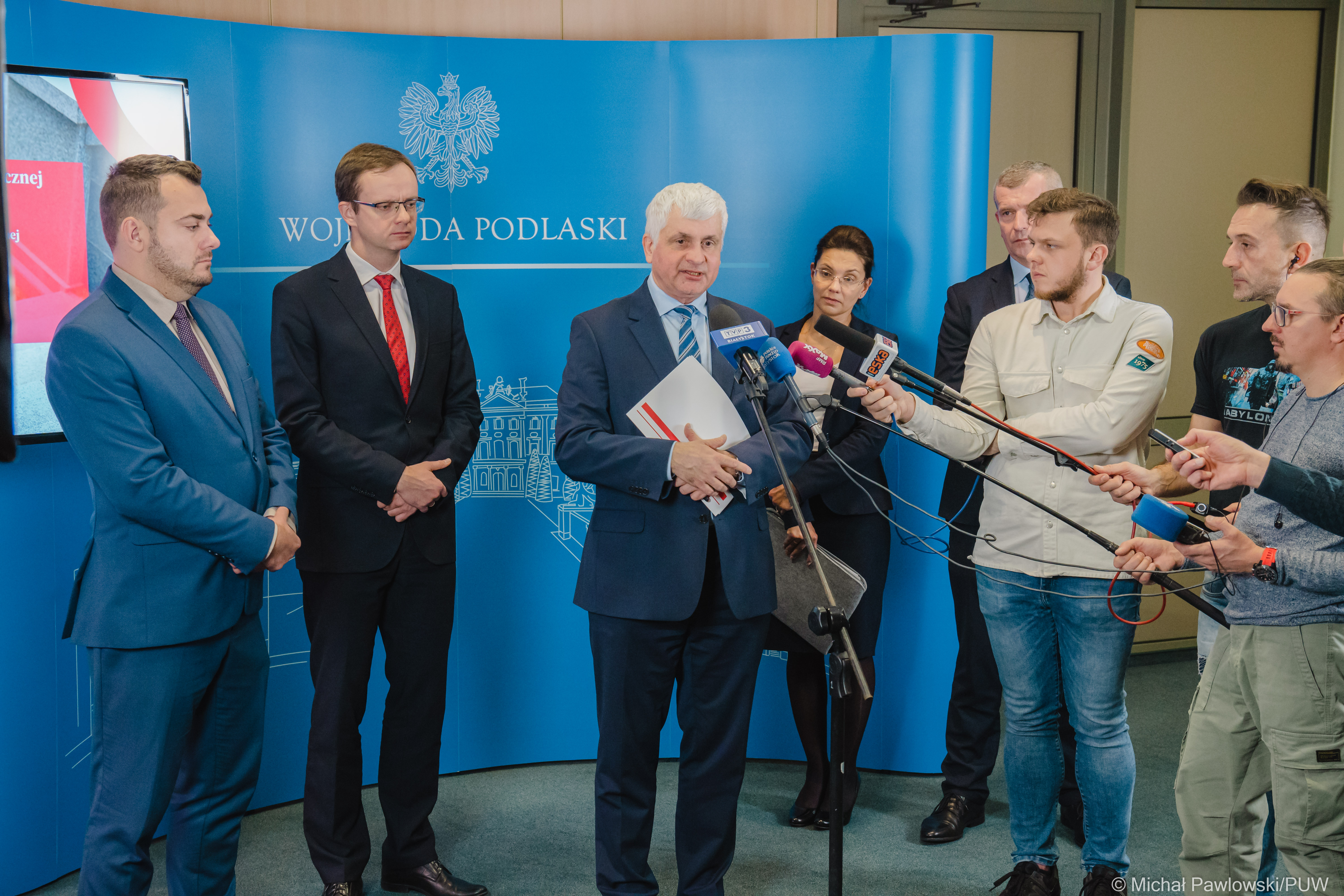 - Zachęcamy wszystkie samorządy z naszego regionu, aby wzięły udział w rządowych programach dotyczących wsparcia osób z niepełnosprawnościami, ich rodzin oraz samotnych matek. Listopad to czas składania wniosków za pośrednictwem wojewodów do Ministerstwa Rodziny i Polityki Społecznej. Mam nadzieję, że jak najwięcej gmin i powiatów będzie zainteresowanych wsparciem mieszkańców, którzy tego potrzebują – mówił we wtorek (8.11) na konferencji prasowej wojewoda podlaski Bohdan Paszkowski. Uczestniczyli w niej także: wicewojewoda Tomasz Madras, prezydent Łomży Mariusz Chrzanowski oraz burmistrz Łap Krzysztof Gołaszewski.