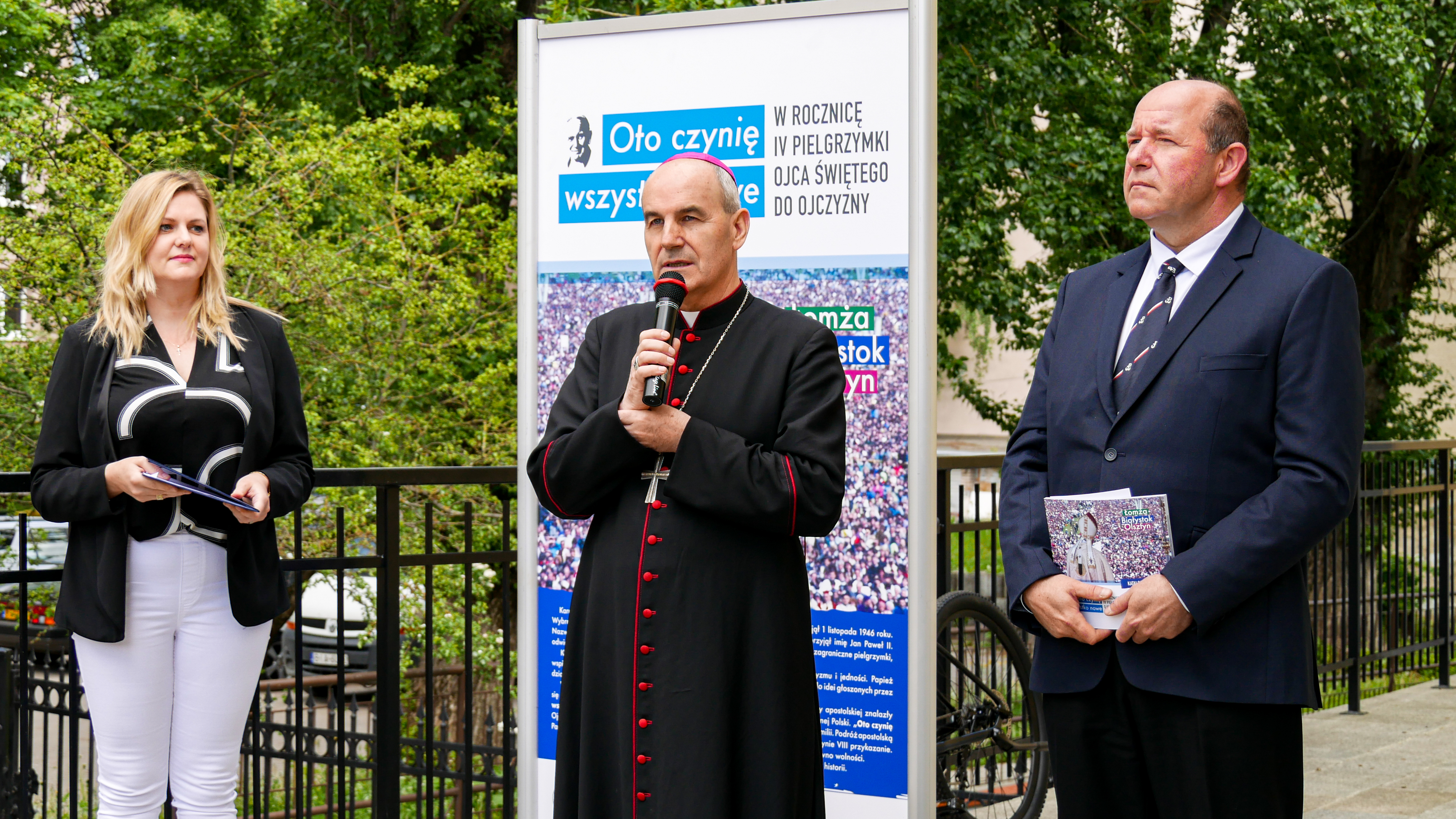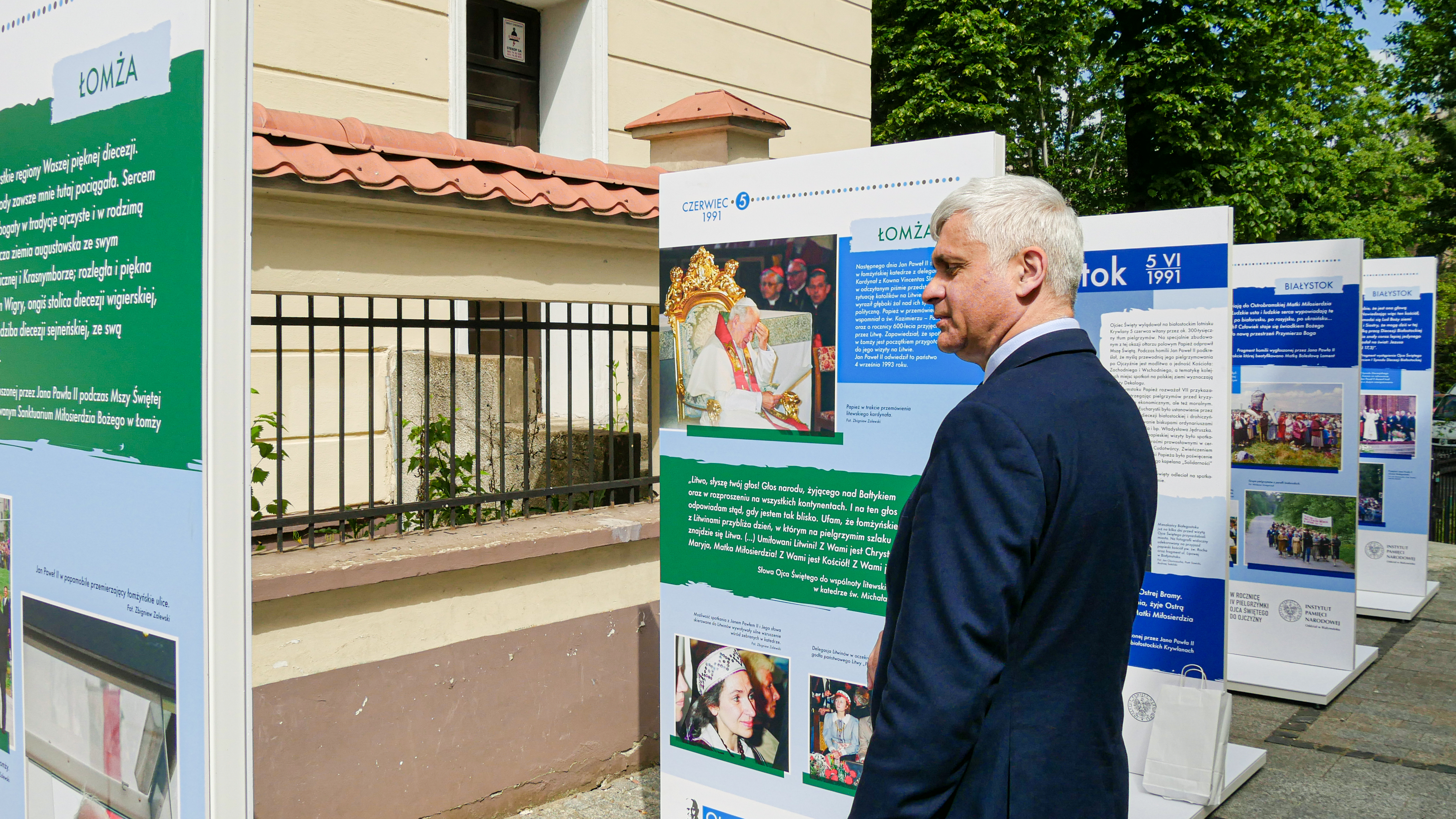 Wystawę „Oto czynię wszystko nowe. W rocznicę IV Pielgrzymki Ojca Świętego do Ojczyzny” przygotowało Oddziałowe Biuro Edukacji Narodowej IPN w Białymstoku. Od środy (2.06) do końca miesiąca mieszkańcy stolicy Podlaskiego mogą ją oglądać na placu Jana Pawła II, przy kinie Ton i katedrze białostockiej, która została podniesiona do rangi siedziby biskupa właśnie podczas wizyty św. Jana Pawła II w 1991 roku. W Łomży Papież był 4-5 czerwca 1991 roku, w Białymstoku 5 czerwca, zaś w Olsztynie 5-6 czerwca.