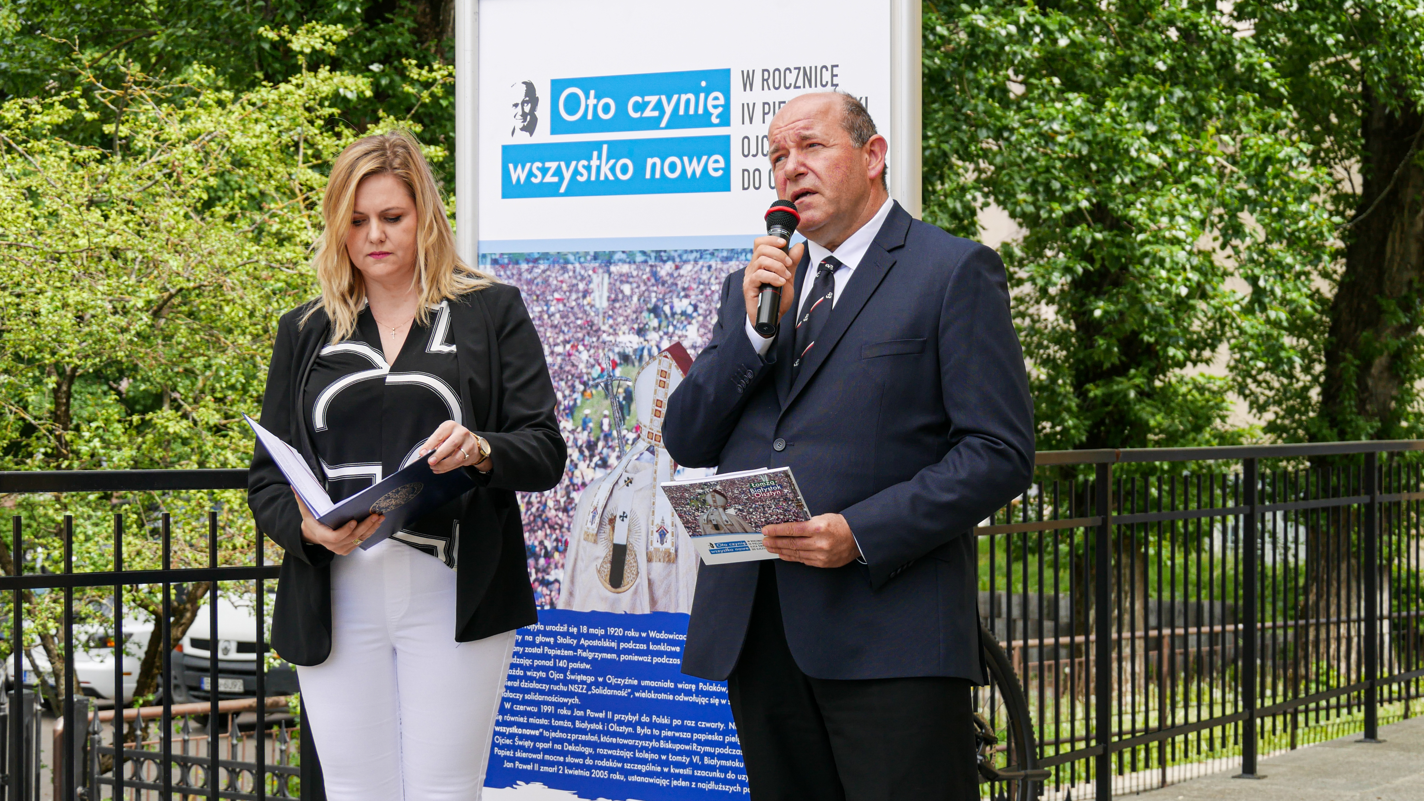 - Ekspozycję o czwartej pielgrzymce Ojca Świętego do ojczyzny (...) traktujemy też w kategoriach pokazania człowieka, który nie tylko głosił prawdy wiary, zaszczepiał w nas patriotyzm, umiłowanie do Boga i ojczyzny, ale również był wielkim orędownikiem odzyskania przez Polskę niepodległości (...). Był też tym, który poza Polską, ale i w Polsce, również tej komunistycznej, walnie przyczynił się do odzyskania przez Polskę niepodległości - mówił podczas otwarcia wystawy dyrektor IPN Oddział w Białymstoku dr hab. Piotr Kardela.
