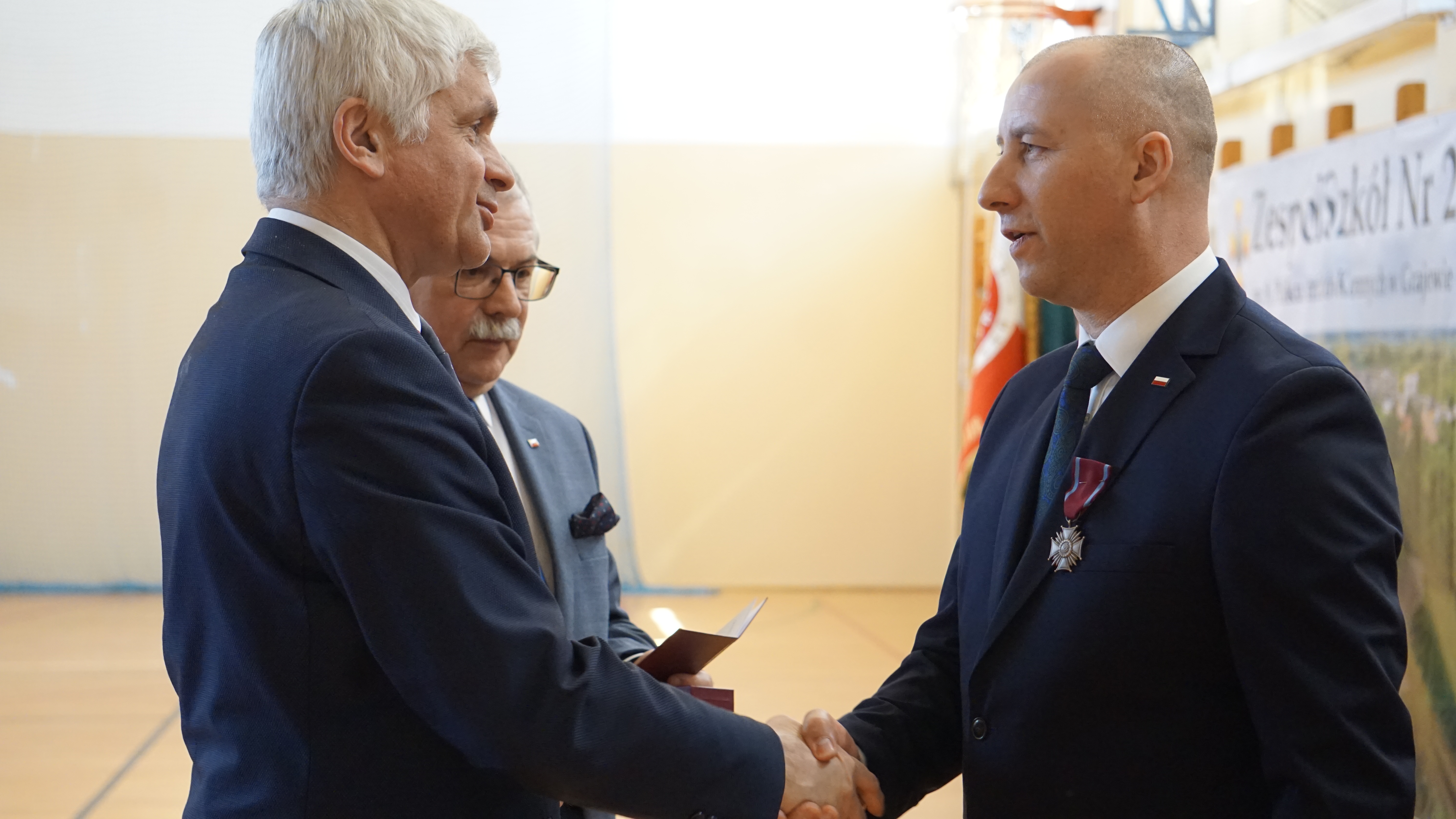 Uroczystość w Grajewie była okazją do wręczenia odznaczeń państwowych. Brązowy Krzyż Zasługi za wyróżniające wyniki w pracy zawodowej oraz ofiarną działalność publiczną i charytatywną na rzecz lokalnej społeczności z rąk wojewody podlaskiego odebrał Grzegorz Gardocki.