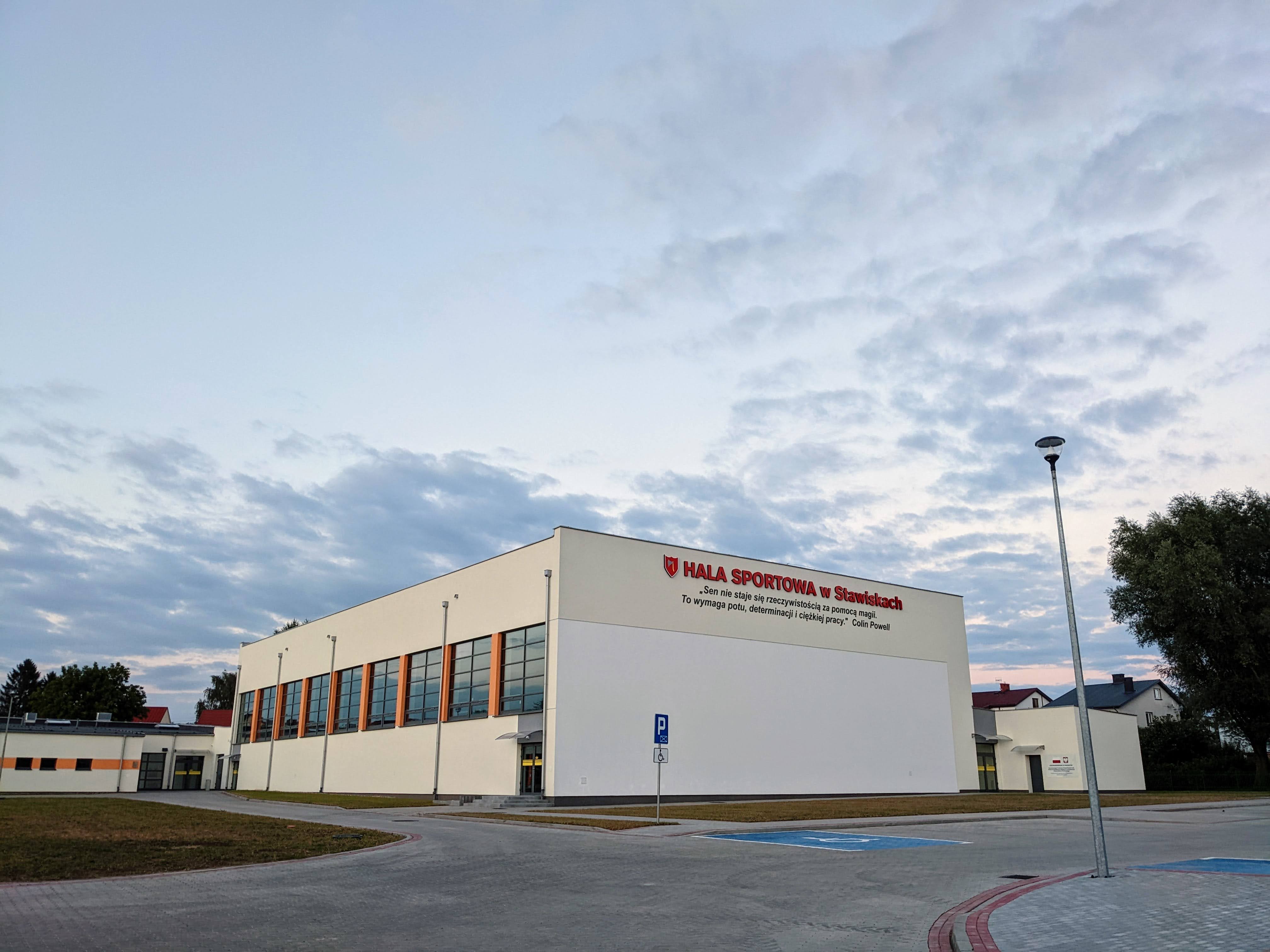 Inwestycja „Budowa hali sportowej w Stawiskach” powstała dzięki środkom pozyskanym m.in. z Programu Sportowa Polska Ministerstwa Sportu i Turystyki oraz Rządowego Funduszu Inicjatyw Lokalnych. Wsparcie umożliwiło wybudowanie hali sportowej o powierzchni blisko 2 tys. mkw., czterech boisk oraz zaplecza technicznego. Powstał także budynek pełniący funkcję łącznika szkoły z halą, w którym mieszczą się: szatnie, świetlica, stołówka oraz gabinety logopedy i pedagoga.