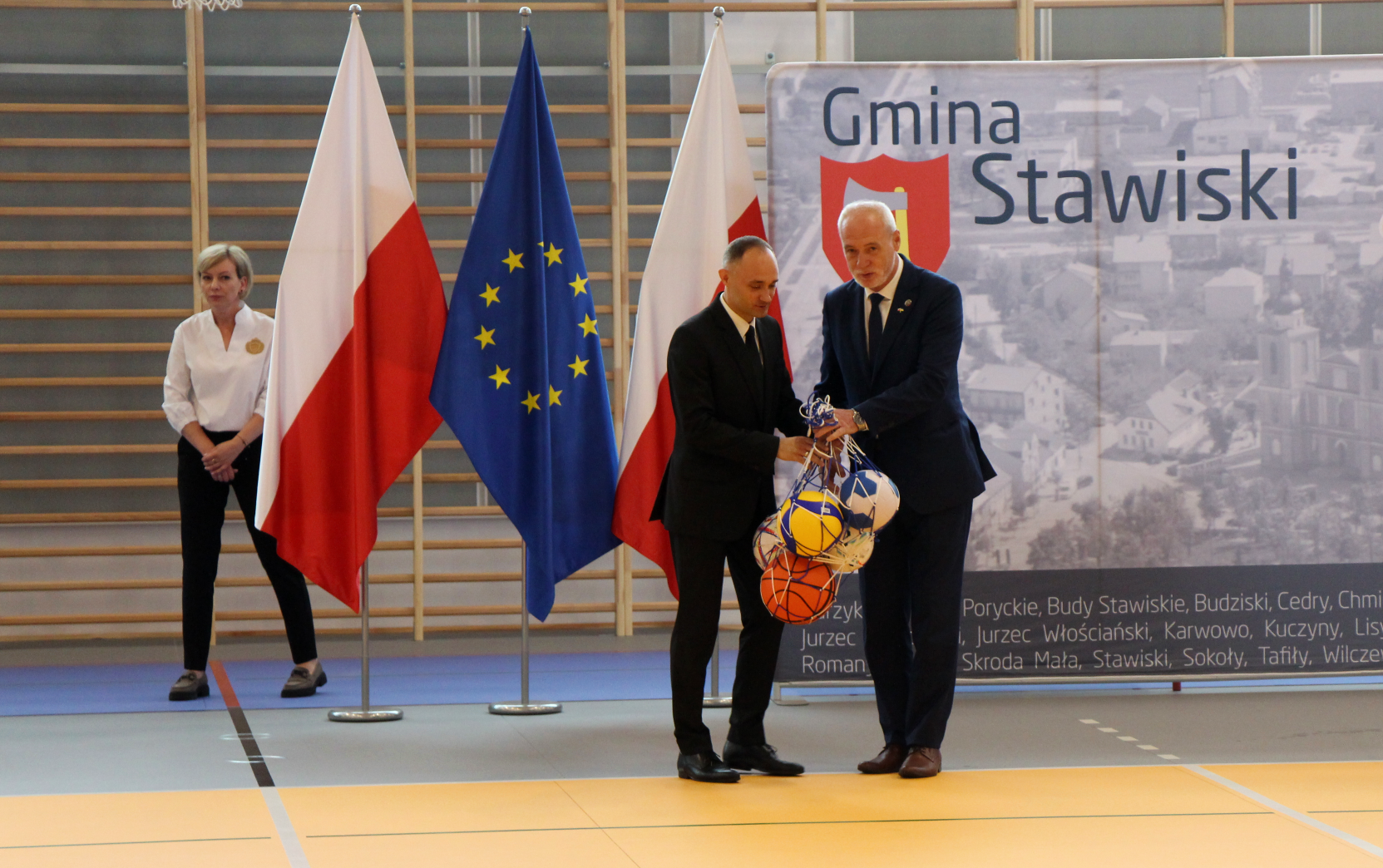 W uroczystości otwarcia hali sportowej wzięli udział parlamentarzyści: wiceminister edukacji i nauki Dariusz Piontkowski, poseł Kazimierza Gwiazdowski, santor Marek Komorowski, wojewoda podlaski Bohdan Paszkowski, władze województwa podlaskiego, powiatu i sąsiednich gmin oraz mieszkańcy i uczniowie z Gminy Stawiski.