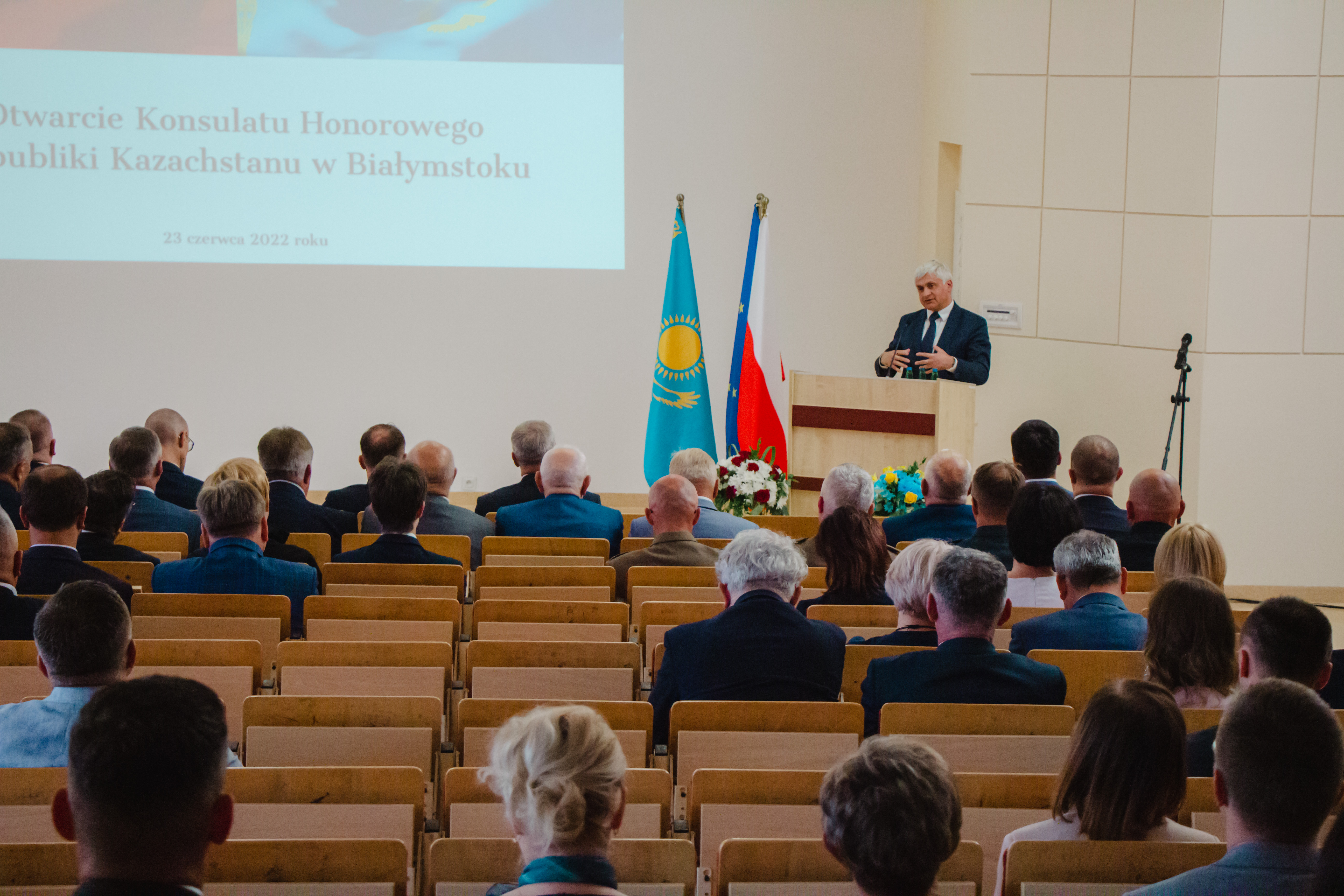 To piąty konsulat honorowy Kazachstanu w Polsce. Wojewoda podlaski wyraził zadowolenie, iż Białystok dołącza do dużych polskich ośrodków (Krakowa, Gdańska, Wrocławia i Katowic), w których funkcjonują konsulowie Republiki Kazachstanu.