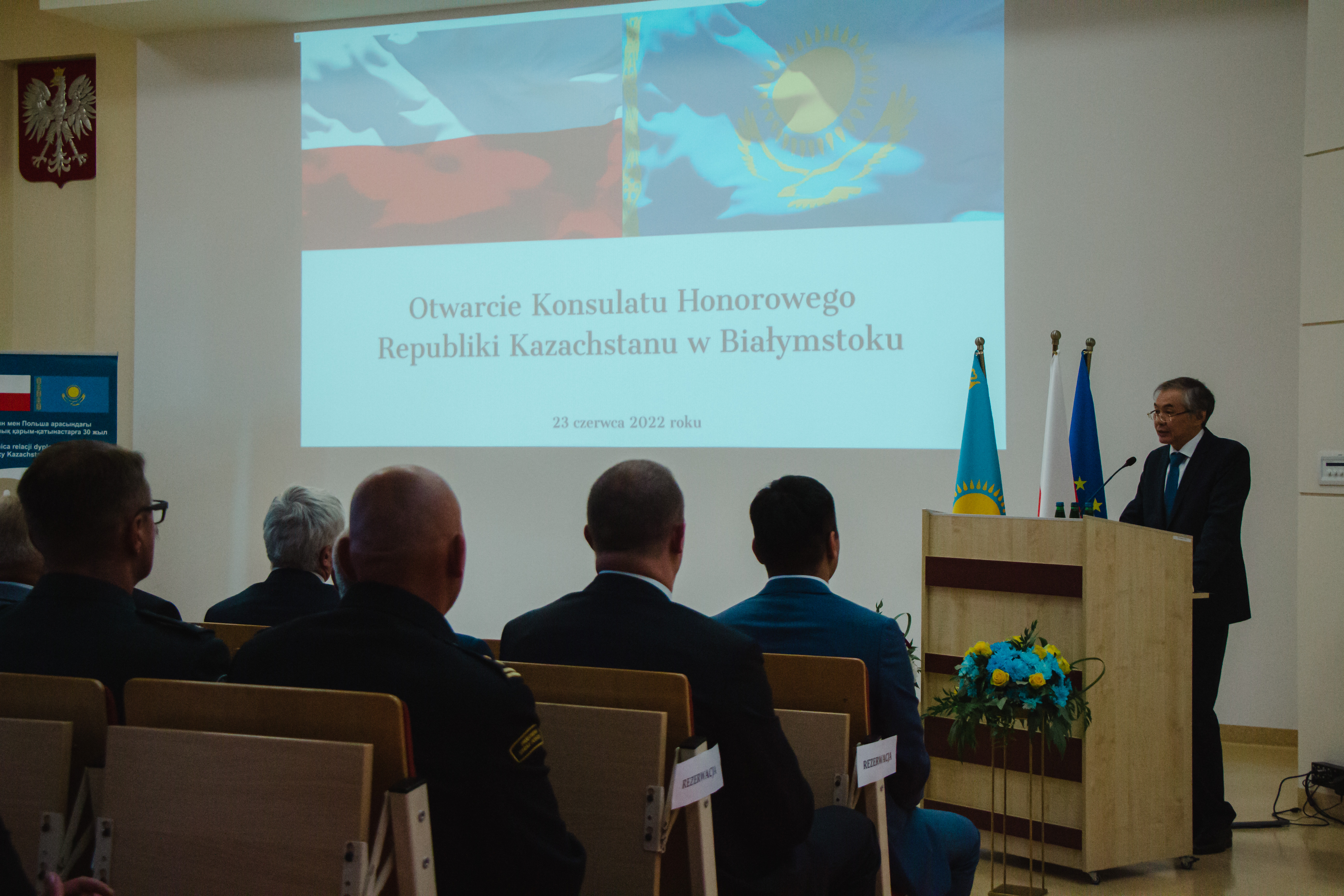 Wyrażamy głęboką wdzięczność stronie polskiej za zainteresowanie i pomoc w poszerzeniu geografii konsulatów honorowych Kazachstanu. (...) Ze względu na swoje położenie Białystok jest największym ośrodkiem komunikacyjnym na wschodzie Polski, a także najważniejszym ośrodkiem kulturalnym województwa podlaskiego. Ponad 200 studentów z Kazachstanu uczy się na wyższych uczelniach Podlaskiego i Lubelskiego, za które również będzie odpowiadał konsulat w Białymstoku