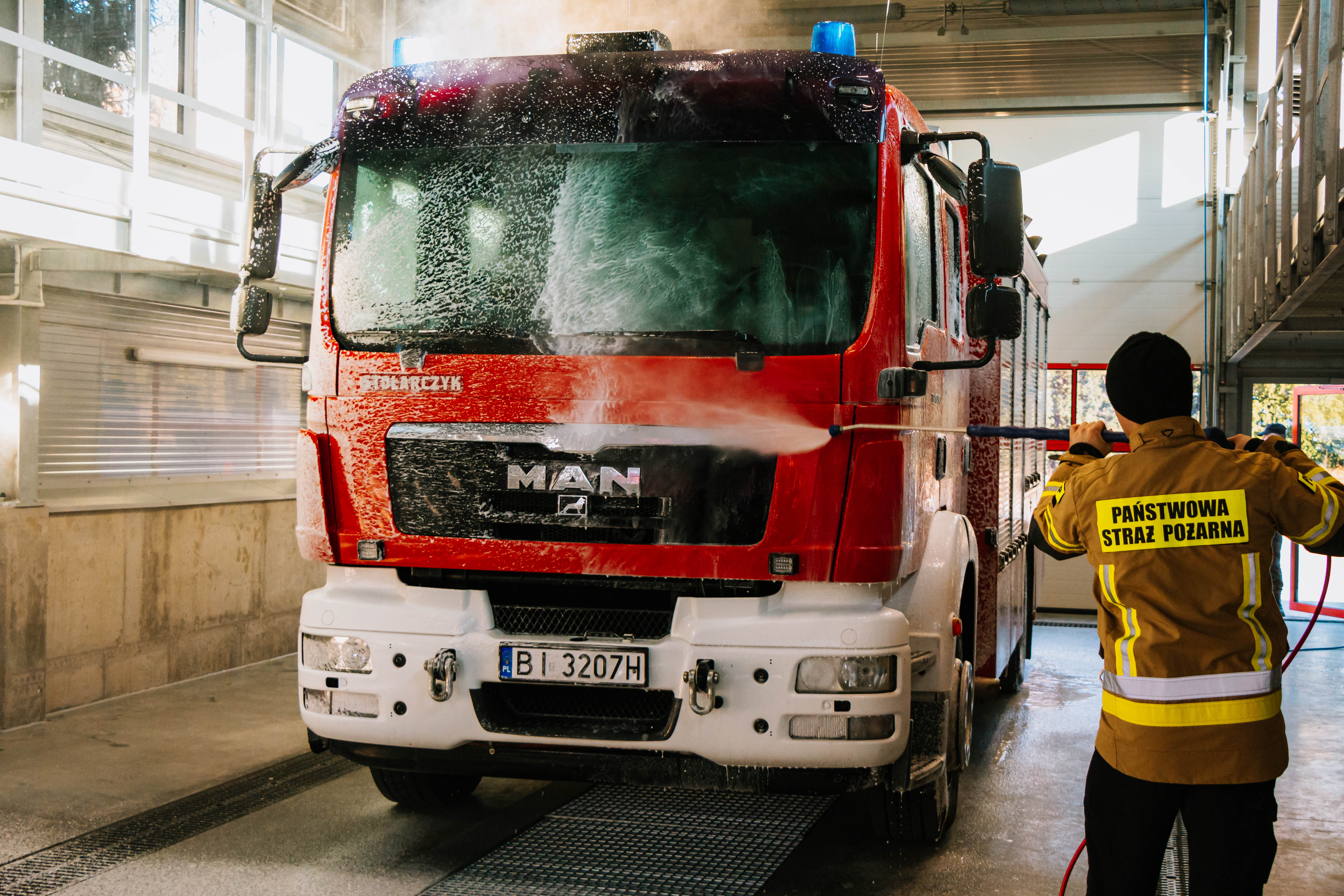 Strażacy myją pojazdy ratowniczo-gaśnicze po każdej akcji, dotyczy to również sprzętu medycznego, który należy także dodatkowo zdezynfekować. Do pory musieli to robić na zewnątrz, nawet przy ujemnych temperaturach oraz korzystać z zaplecza Wojewódzkiej Stacji Pogotowia Ratunkowego w Białymstoku.