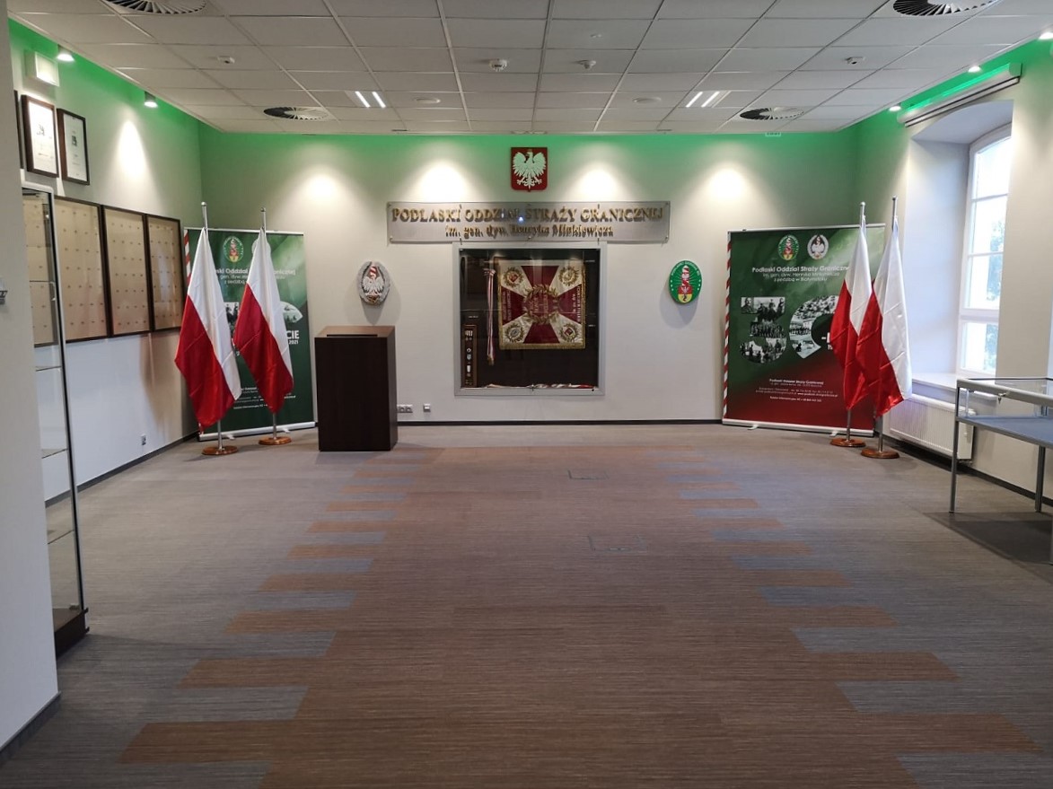 Następnie uczestnicy uroczystości mogli obejrzeć wnętrze zmodernizowanego obiektu, w którym między innymi mieści się 112 stanowisk pracy funkcjonariuszy i pracowników, 22 miejsca internatowe, sala dydaktyczna na 70 osób, archiwum, serwerownia oraz kancelarie oddziału. W budynku znajduje się również Sala Tradycji, w której zebrane będą eksponaty związane z patronem oddziału gen. dyw. Henrykiem Minkiewiczem oraz historią oddziału i formacji granicznych. Powierzchnia użytkowa budynku wynosi 2600 m2.