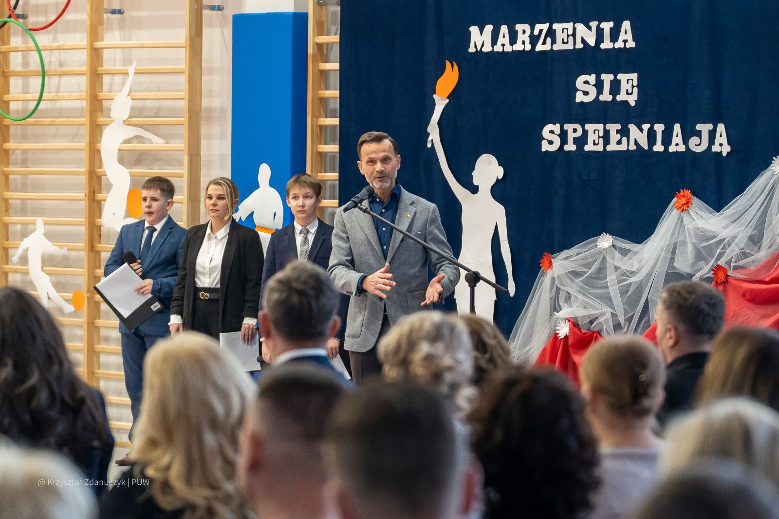 - Dumą napawa fakt, że przy szkołach w małych miejscowościach powstają nowoczesne obiekty, które spełniają międzynarodowe standardy. Jestem pewien, że nowa sala będzie dobrze służyła lokalnej społeczności - mówił podczas uroczystości wojewoda podlaski. - Sport uczy szlachetnej rywalizacji, osobistej descypliny, a przede wszystkim zapewnia zdrowie, którego wszyscy potrzebujemy - dodał.