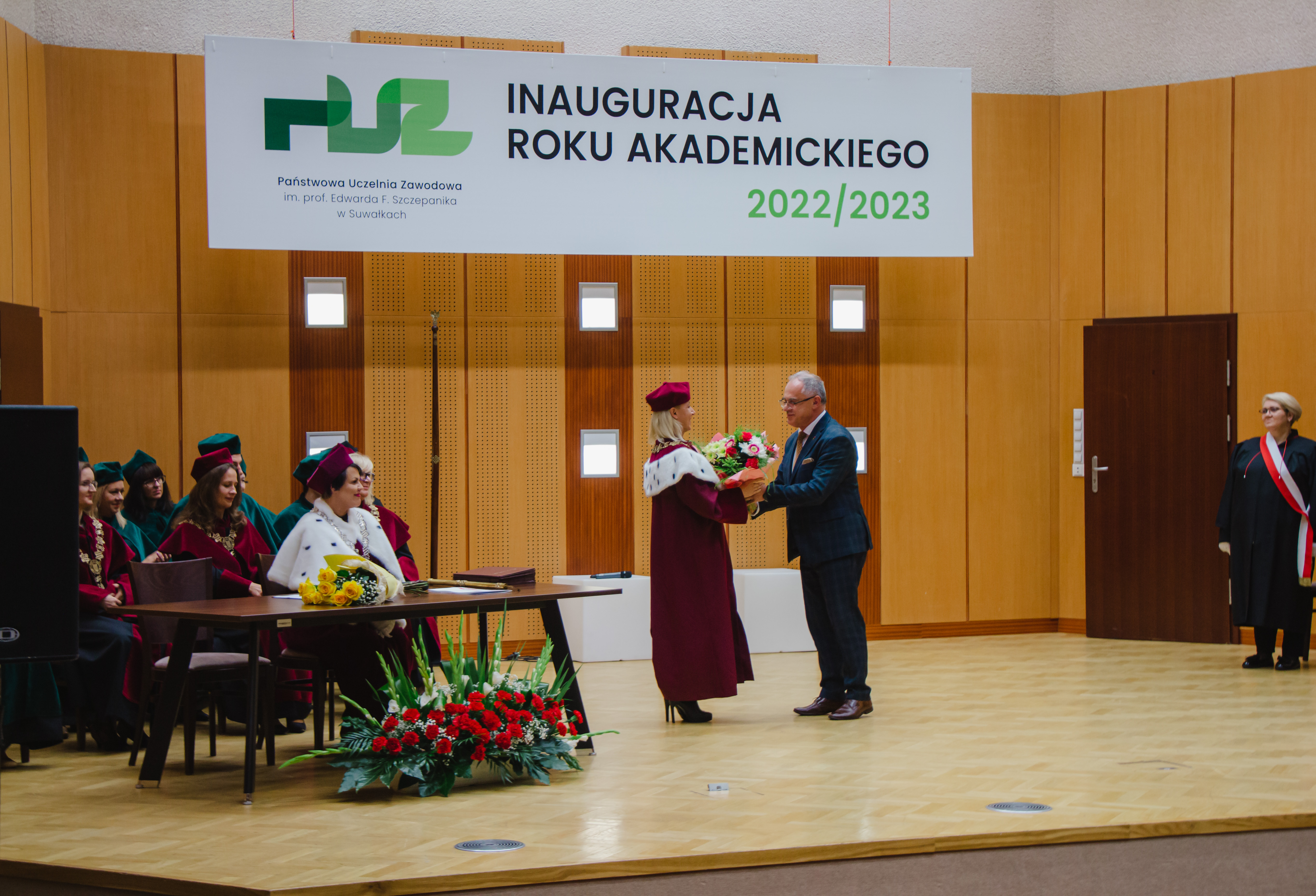 Suwalska uczelnia kształci ponad 1500 osób, a naukę rozpoczęła po raz kolejny rekordowa liczba nowych studentów - około 600. Rozwoju naukowych pasji, zarówno studentom, jak i wykładowcom, życzył minister edukacji i nauki Przemysław Czarnek, od którego list odczytał wojewoda podlaski.