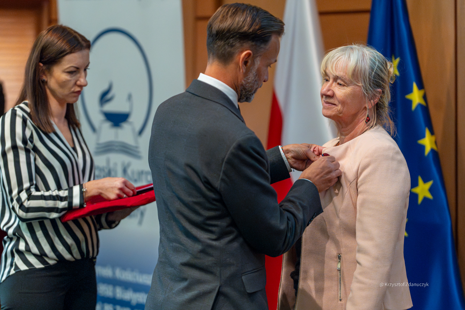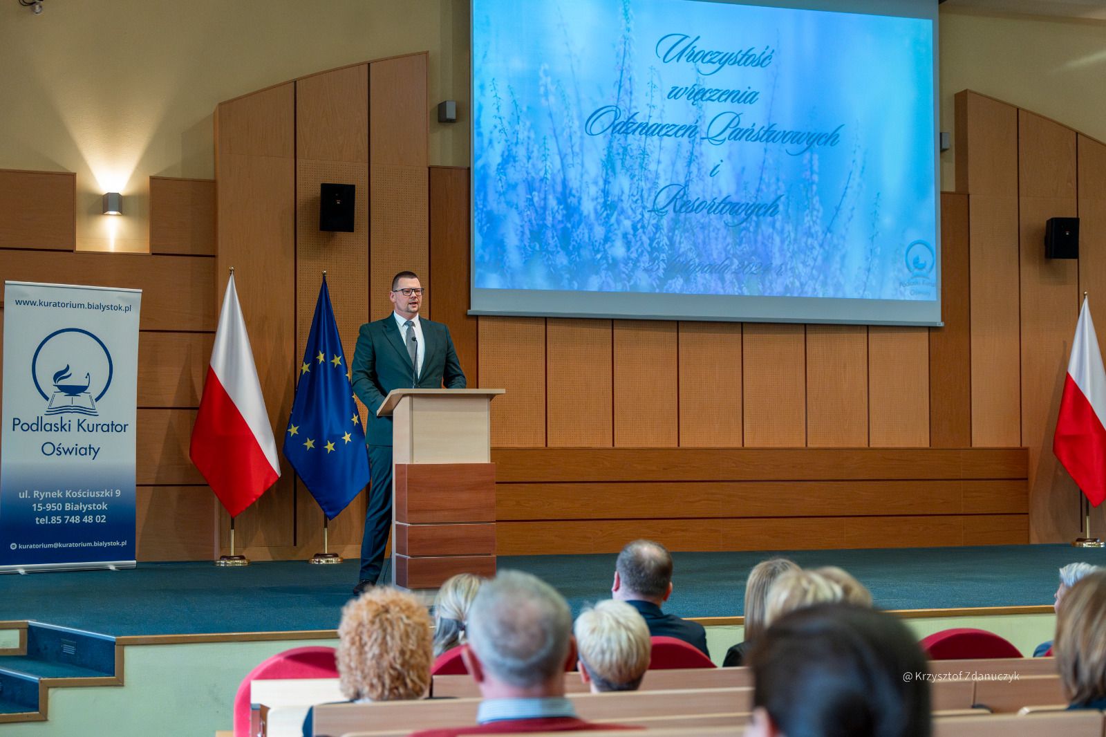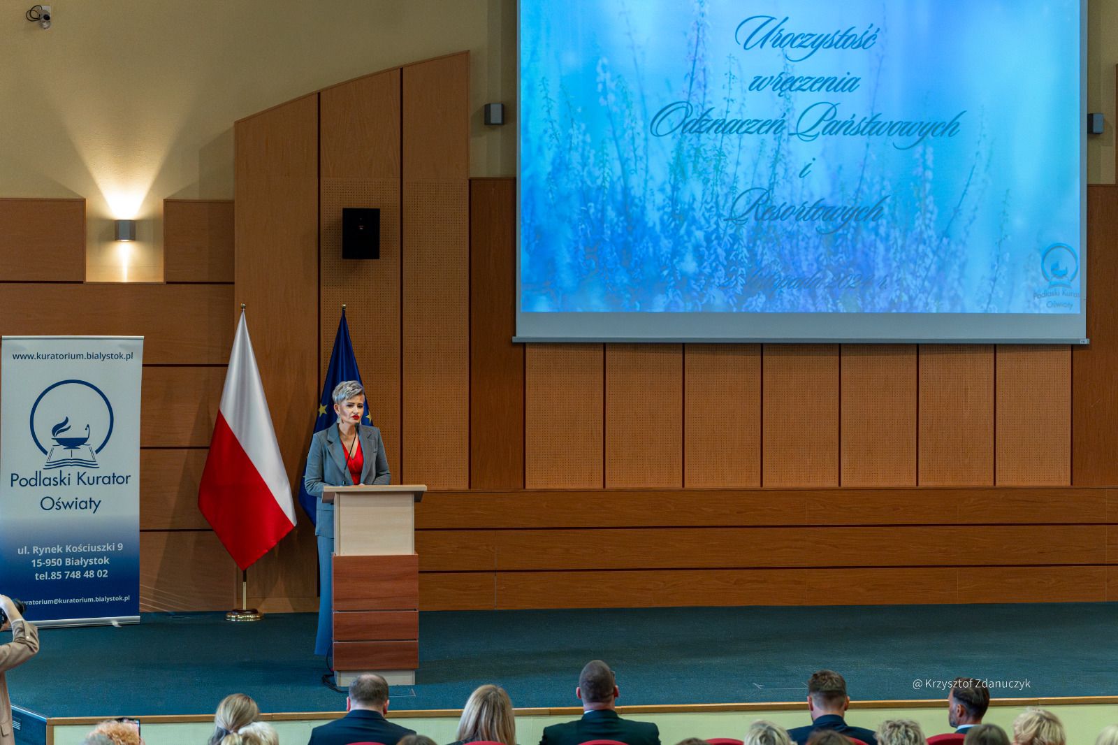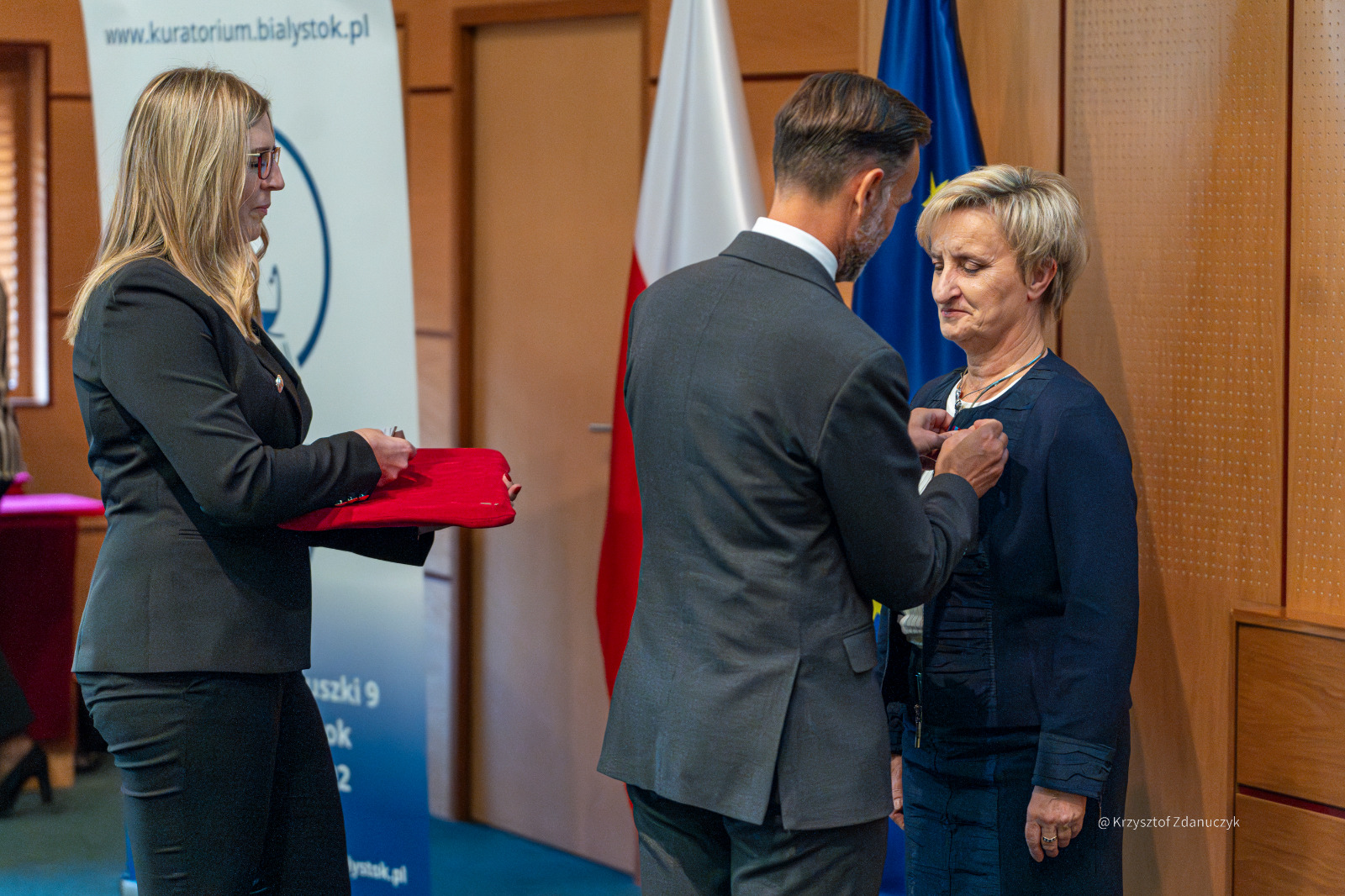 Odznaczenia - Krzyże Zasługi i Medale za Długoletnią Służbę oraz Medale Komisji Edukacji Narodowej wręczali wojewoda podlaski Jacek Brzozowski i podlaska kurator oświaty Agnieszka Krokos-Janczyło.