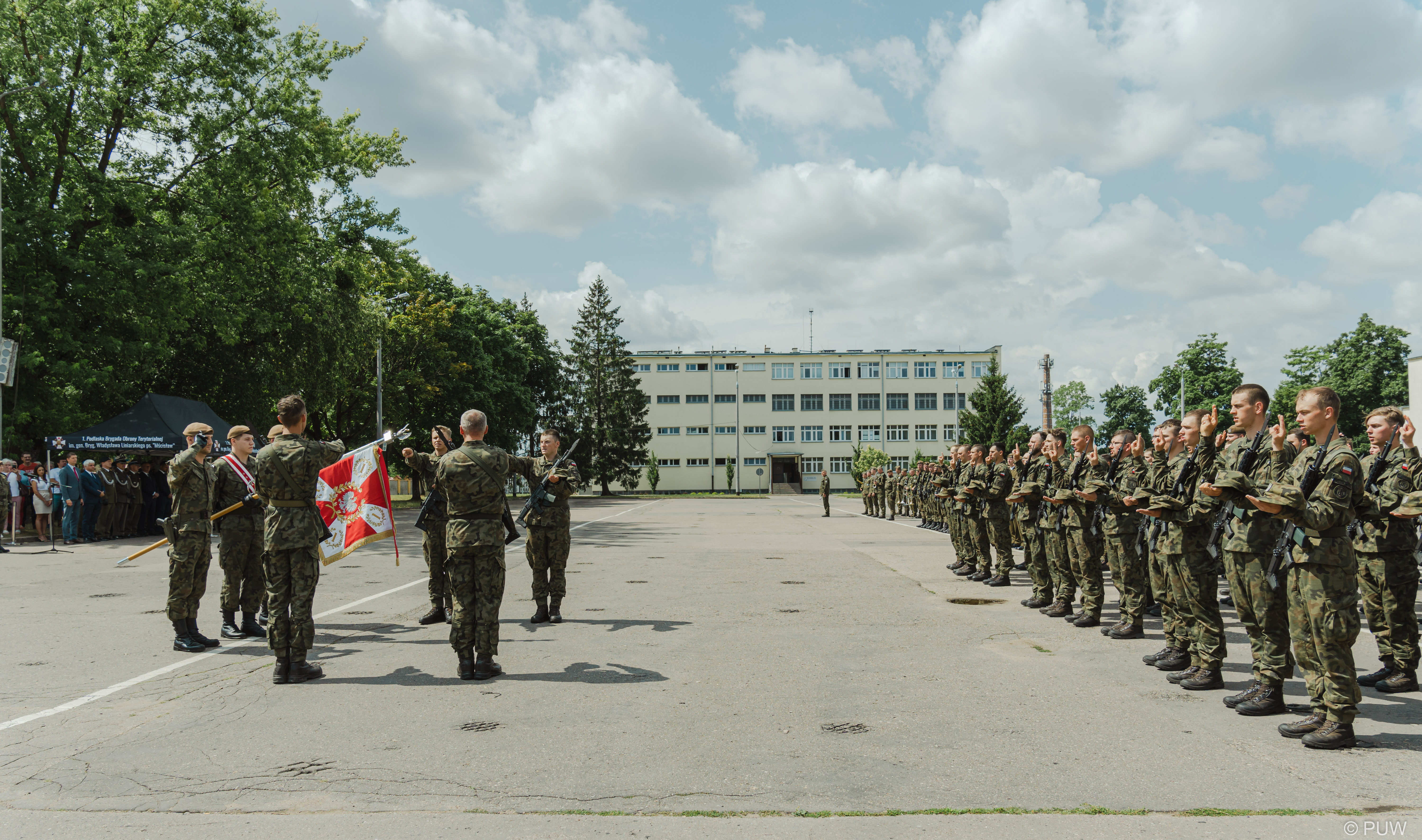 W piątek (14.07) przysięgę na sztandar 1 Podlaskiej Brygady Obrony Terytorialnej złożyło blisko 110 ochotników. Uroczystość, w której wziął udział wojewoda podlaski Bohdan Paszkowski, odbyła się na terenie kompleksu wojskowego w Białymstoku. Była to największa przysięga wojskowa podlaskich terytorialsów w tym roku.