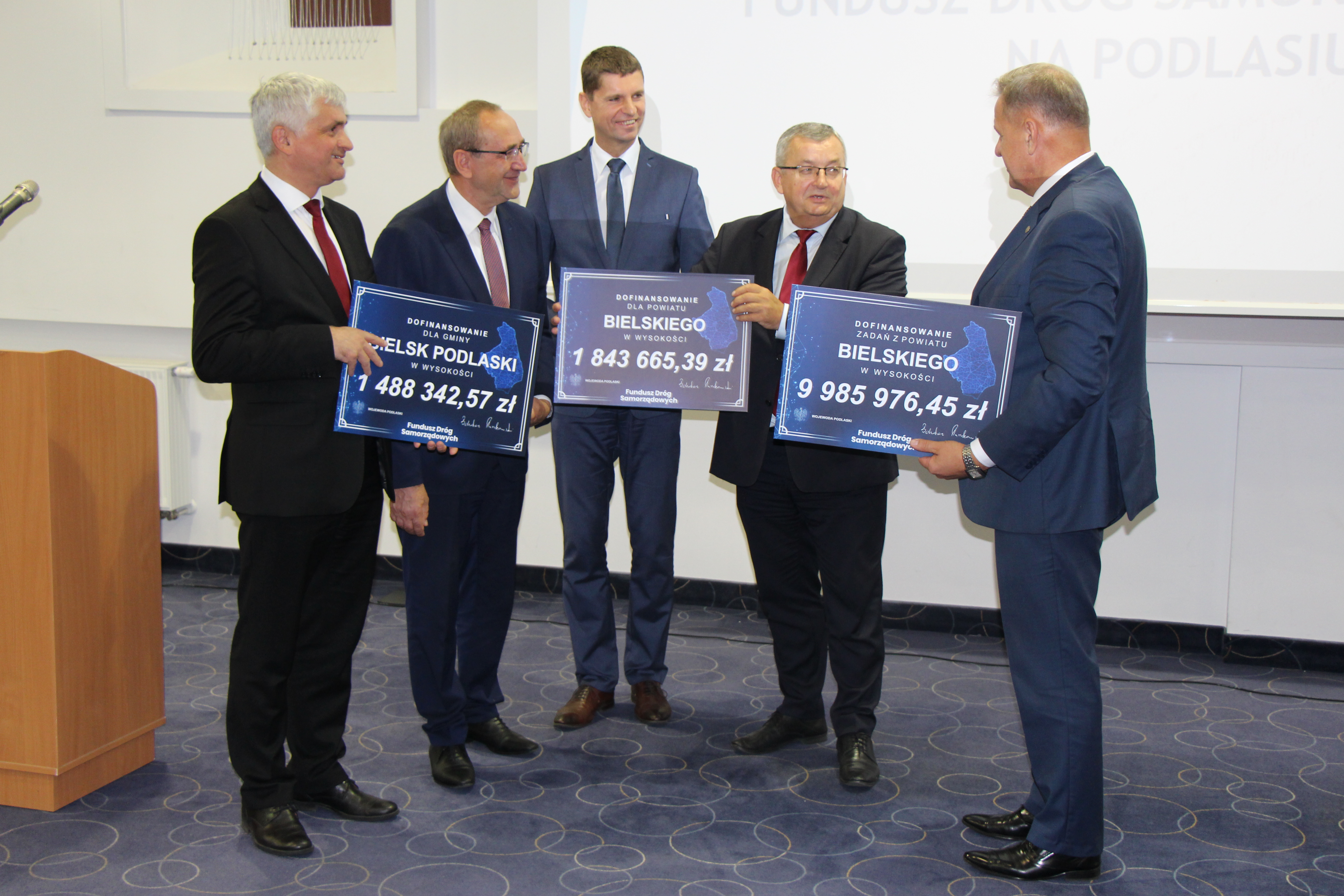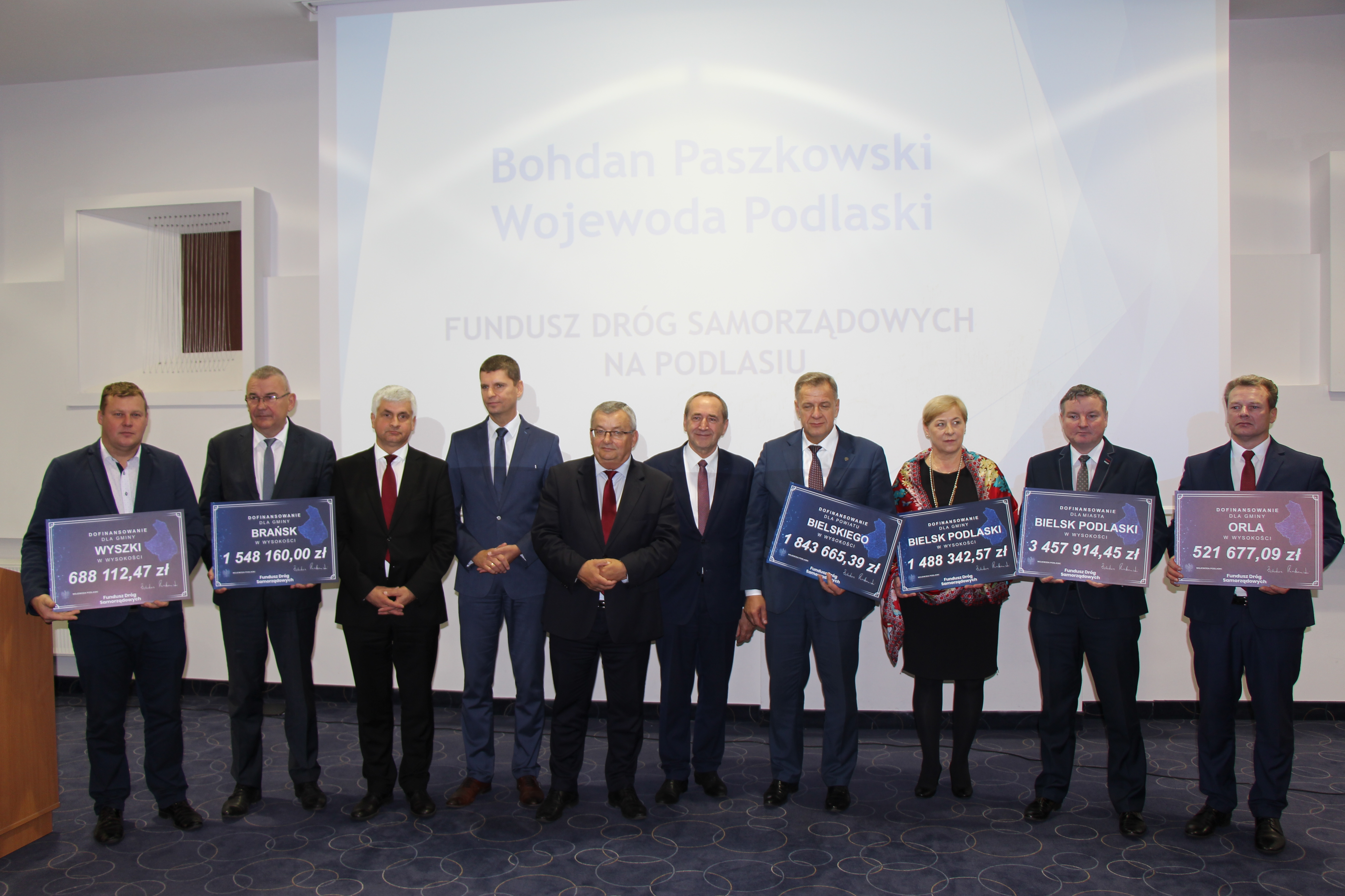 Pięć gmin oraz powiat bielski otrzymało w środę z rąk ministra infrastruktury i wojewody podlaskiego symboliczne czeki na kwotę blisko 10 mln zł. Środki z rządowego Funduszu Dróg Samorządowych (FDS) umożliwią im budowę lub remont dróg lokalnych w 2019 r.