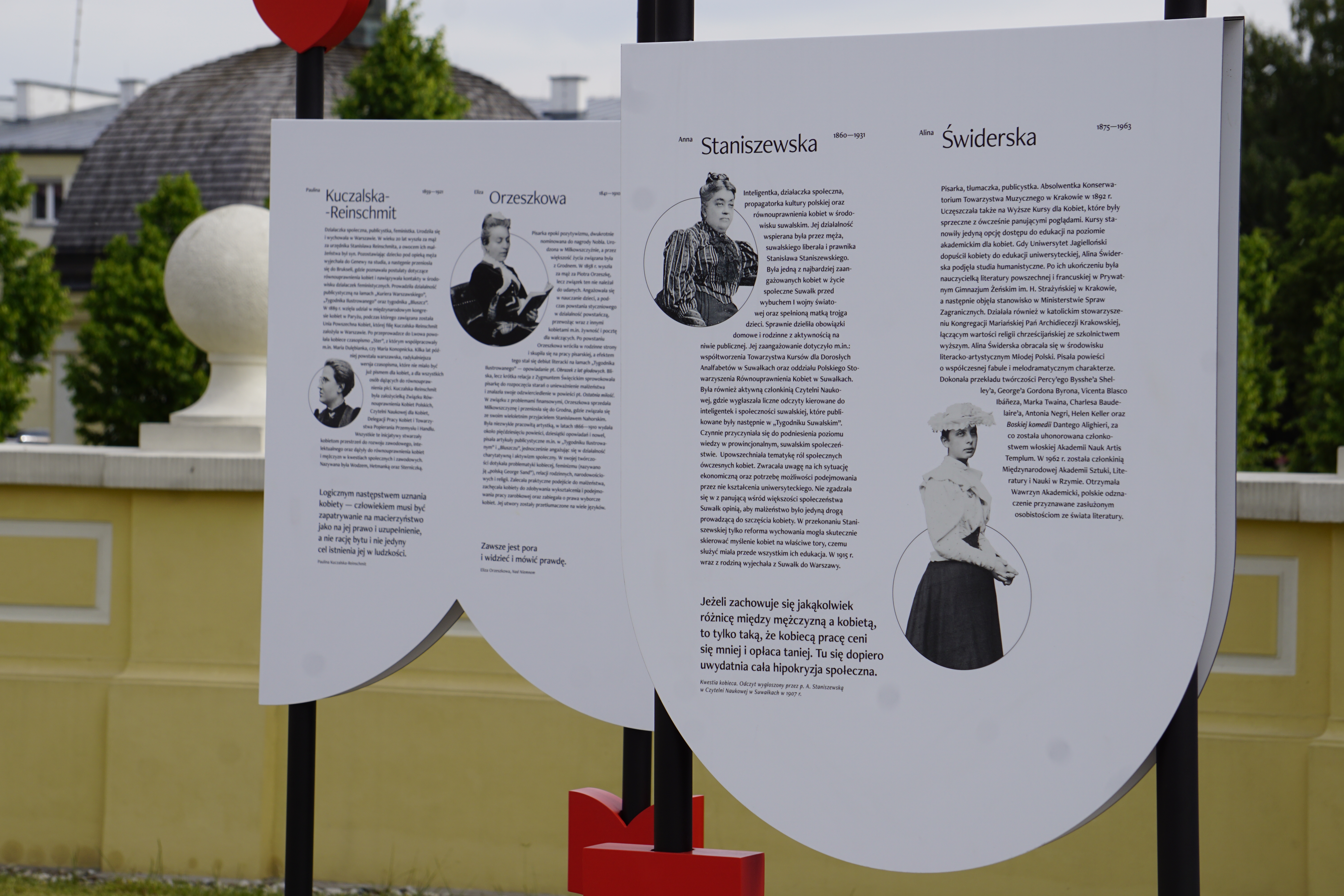 Na wystawie znalazła się także np. postać Klementyny Hoffmanowej (1798-1845), autorki "Pamiętnika po dobrej matce, czyli ostatnich jej rad dla córki" uznawanej za pierwszą w Polsce książkę z elementami feministycznymi. Nie zabrakło znanej białostockiej lekarki, pediatry dr Ireny Białówny (1900-1982). Zaprezentowano też np. postać Heleny Wiewiórskiej (1888-1967) prawniczki, pierwszej Polki wpisanej na listę adwokacką, współzałożycielki stowarzyszenia kobiet z wyższym prawniczym wykształceniem.