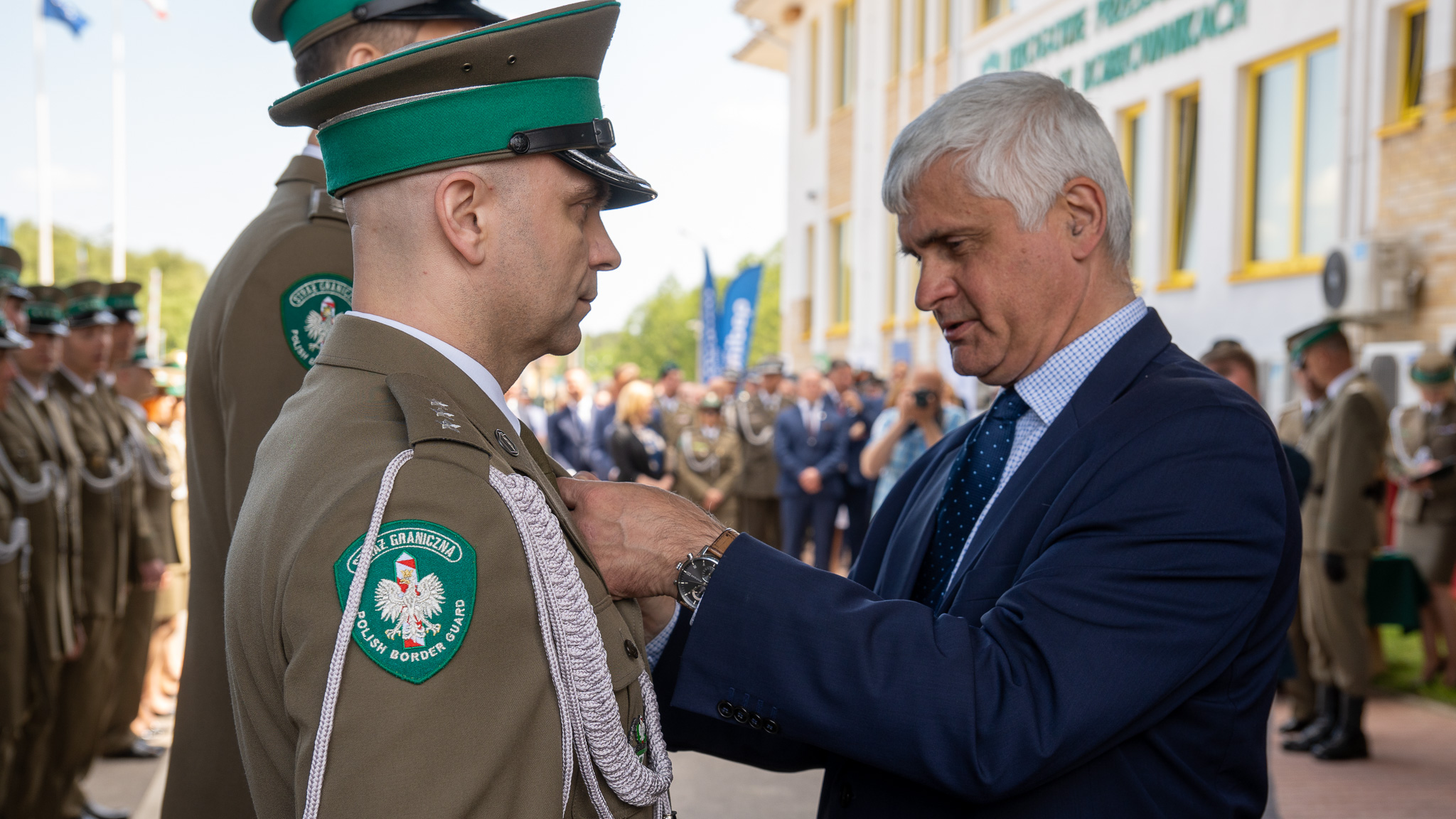 Uroczystość w Bobrownikach była okazją do przekazania funkcjonariuszom SG odznaczeń i awansów. Wojewoda podlaski oraz komendat POSG wręczyli Medale za Zasługi dla Straży Granicznej oraz Odznaki Straży Granicznej.