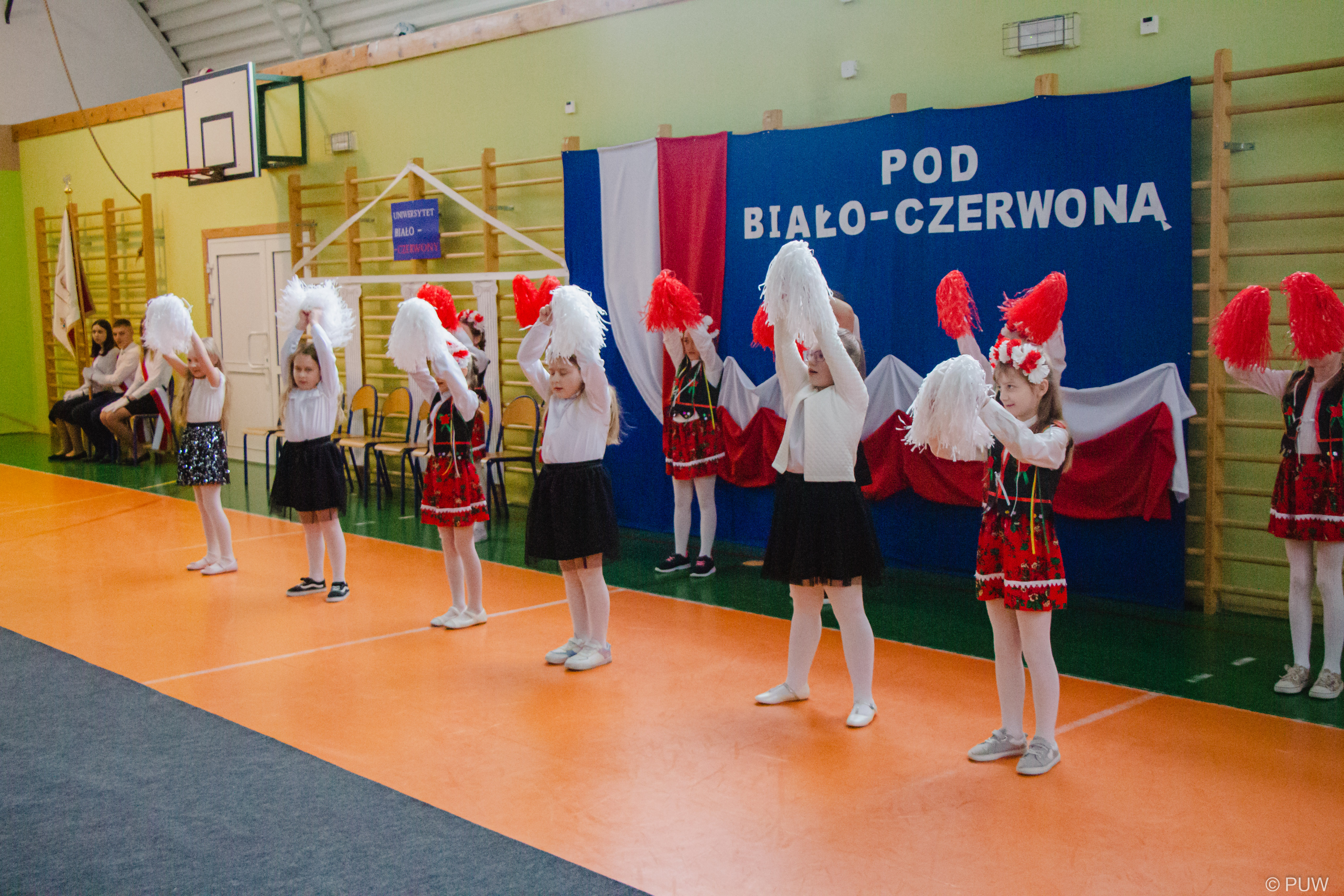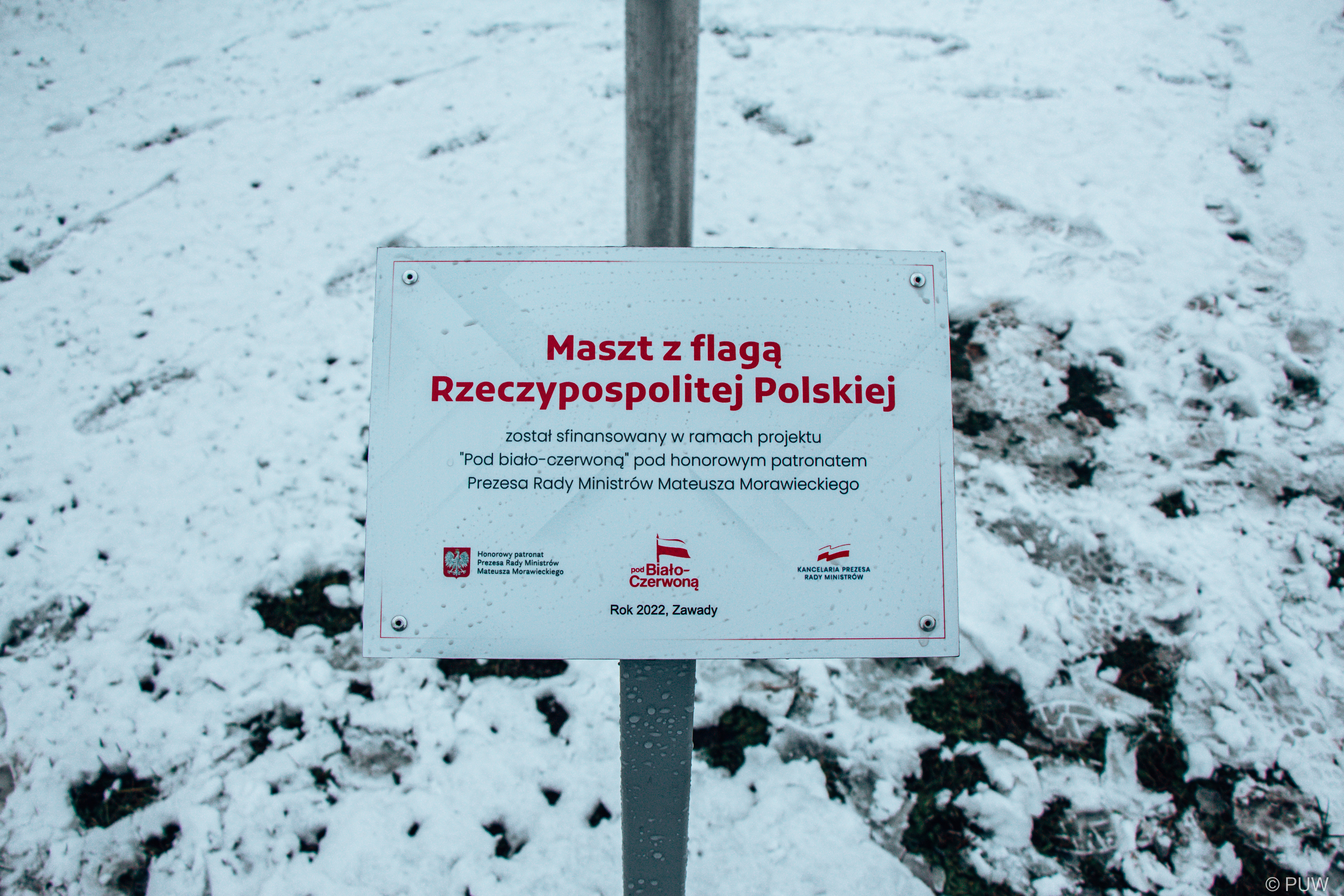 Projekt „Pod biało-czerwoną” realizowany był w całej Polsce pod honorowym patronatem Prezesa Rady Ministrów Mateusza Morawieckiego. W ramach inicjatywy Rząd Rzeczypospolitej Polskiej fundował maszty i flagi dla tych gmin, których mieszkańcy dołączyli do projektu i oddali wymaganą liczbę głosów na swoją gminę.
