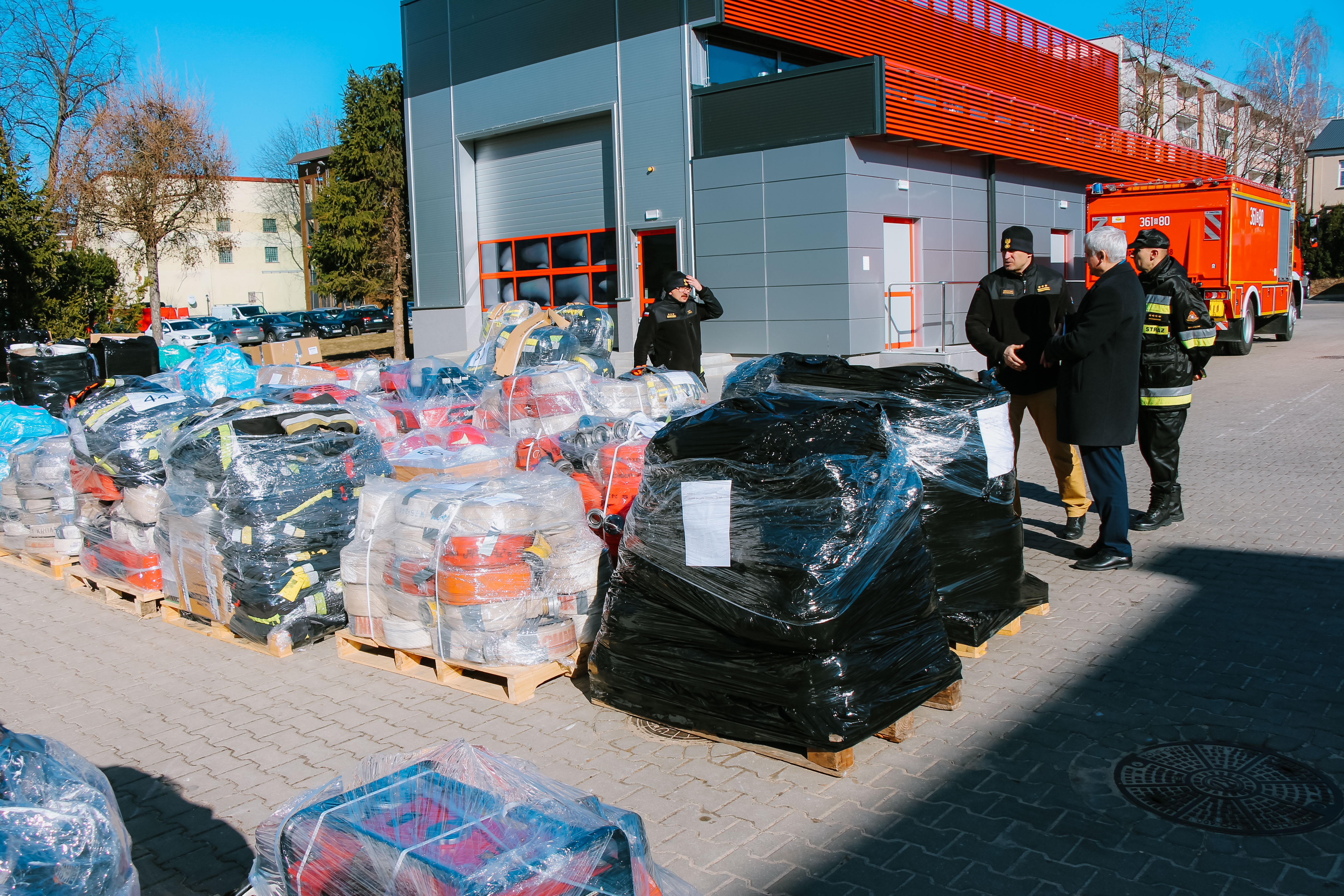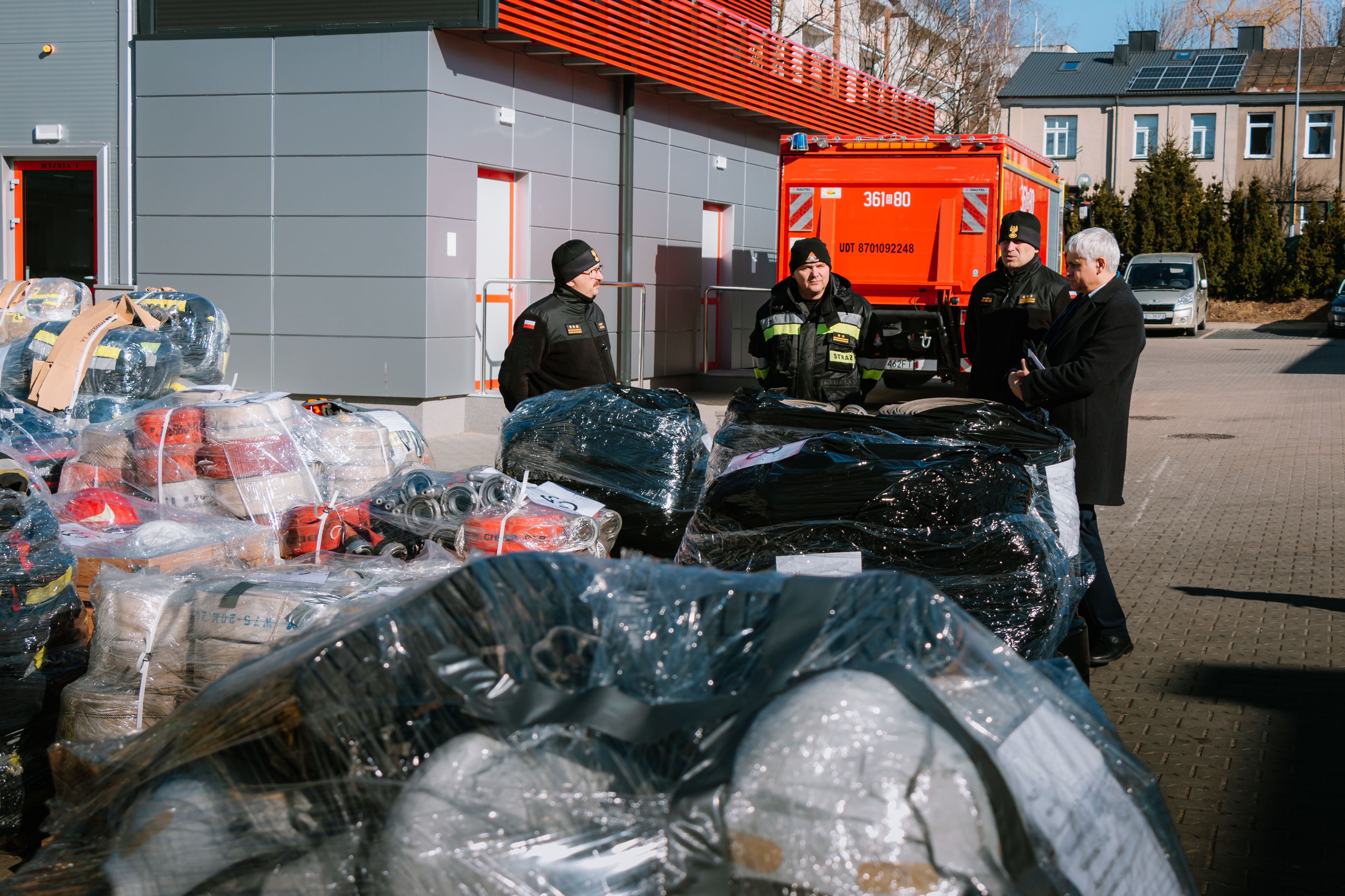 Odpowiadając na apel komendanta głównego PSP, w ubiegłym tygodniu podlascy strażacy prowadzili intensywną zbiórkę sprzętu pożarniczego. Zebrano 135 palet wyposażenia, w którym znalazły się: agregaty prądotwórcze, pompy pożarnicze, torby PSP-R1, umundurowanie takie jak: ubrania typu NOMEX, buty i rękawice specjalne, hełmy i inny sprzęt potrzebny strażakom na Ukrainie. Dzięki pomocy firmy transportowej oraz przy wykorzystaniu własnych pojazdów cały zgromadzony sprzęt przekazano 2.03 i 7.03.2022 r. do punktu przyjęcia sił i środków zlokalizowanego na terenie woj. lubelskiego, by jak najszybciej wsparł bazę sprzętową za polsko-ukraińską granicą.