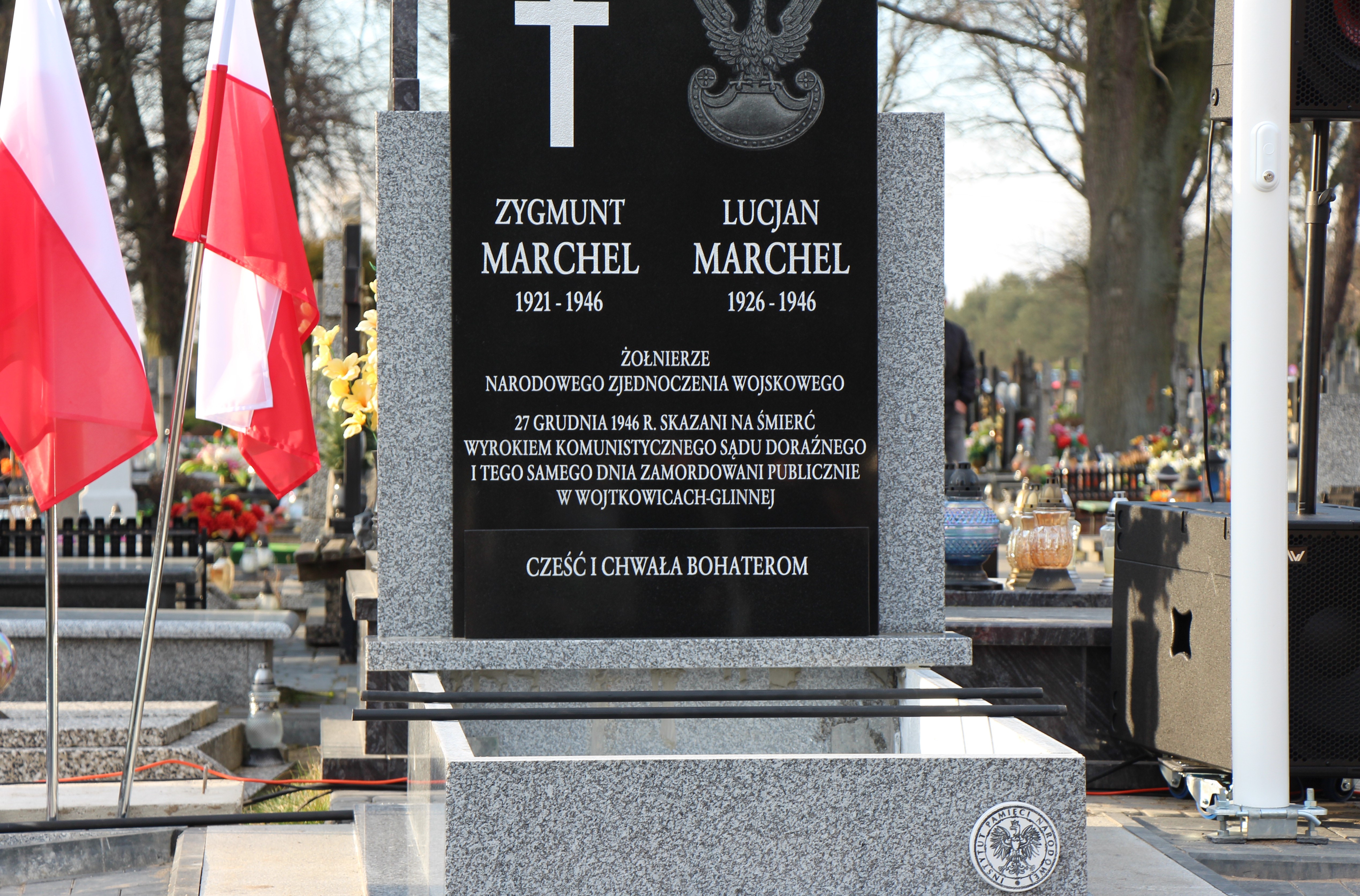 Wojewódzkie Obchody Dnia Pamięci Żołnierzy Wyklętych w Ciechanowcu rozpoczęły się mszą świętą pod przewodnictwem biskupa drohiczyńskiego Piotra Sawczuka. Po uroczystym przemarszu na cmentarz - Lucjan i Zygmunt Marchel - po siedemdziesięciu trzech latach od śmierci z rąk sowietów - z honorami spoczęli w imiennych mogiłach. W pogrzebie wzięli udział m.in. minister edukacji Dariusz Piontkowski, prezes IPN Jarosław Szarek, wojewoda podlaski Bohdan Paszkowski, rodzina braci Marchelów oraz mieszkańcy.