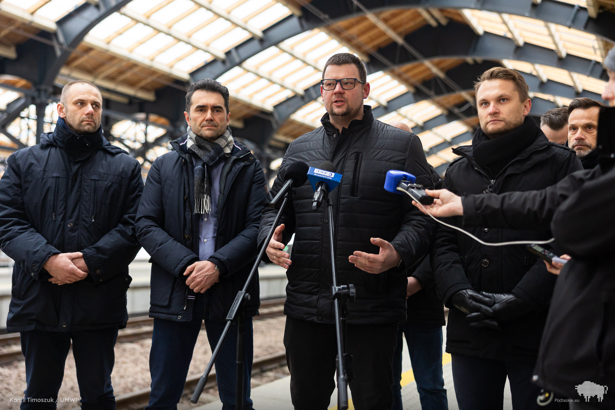 O kolejowych inwestycjach, które poprawią jakość transportu w województwie podlaskim, mówili na konferencji wiceminister infrastruktury Piotr Malepszak, poseł Krzysztof Truskolaski, wojewoda podlaski Jacek Brzozowski, marszałek województwa podlaskiego Łukasz Prokorym, wiceprezydent Białegostoku Tomasz Klim i wiceprezes PKP PLK SA Michał Gil. Spotkanie z mediami zorganizowane zostało na zmodernizowanym właśnie dworcu w Białymstoku.