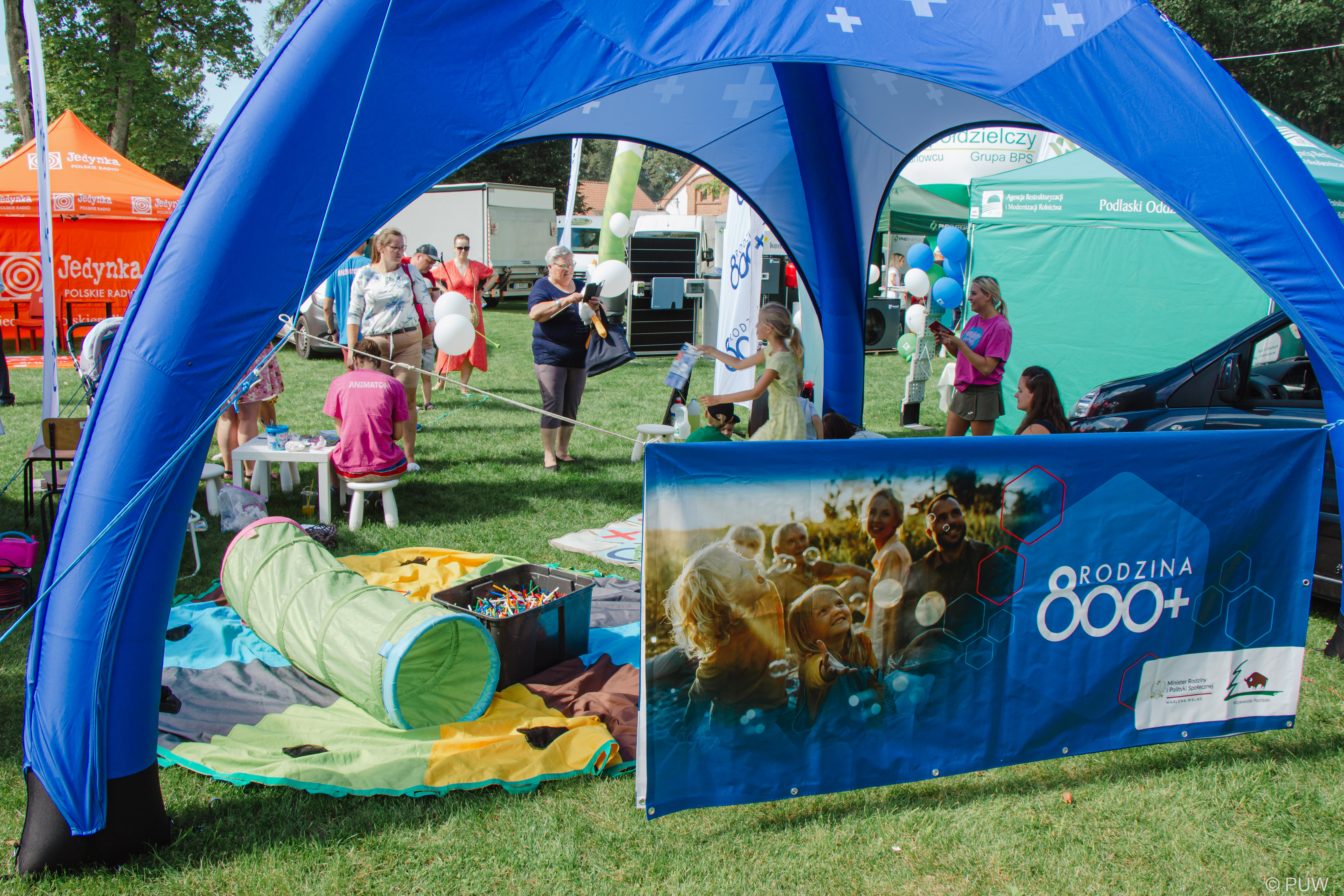 Nie zabrakło też atrakcji dla najmłodszych. Na terenie skansenu ustawione było stoisko informacyjne Rodzina 800+, w którym animatorzy zapraszali do wspólnej zabawy - na malowanie twarzy, robienie tatuaży, plastykę sensoryczną, pokaz baniek mydlanych czy balonowe zoo. Rodzice mogli dowiedzieć się od pracowników PUW o zmianach w Programie, które wejdą w życie od nowego roku.