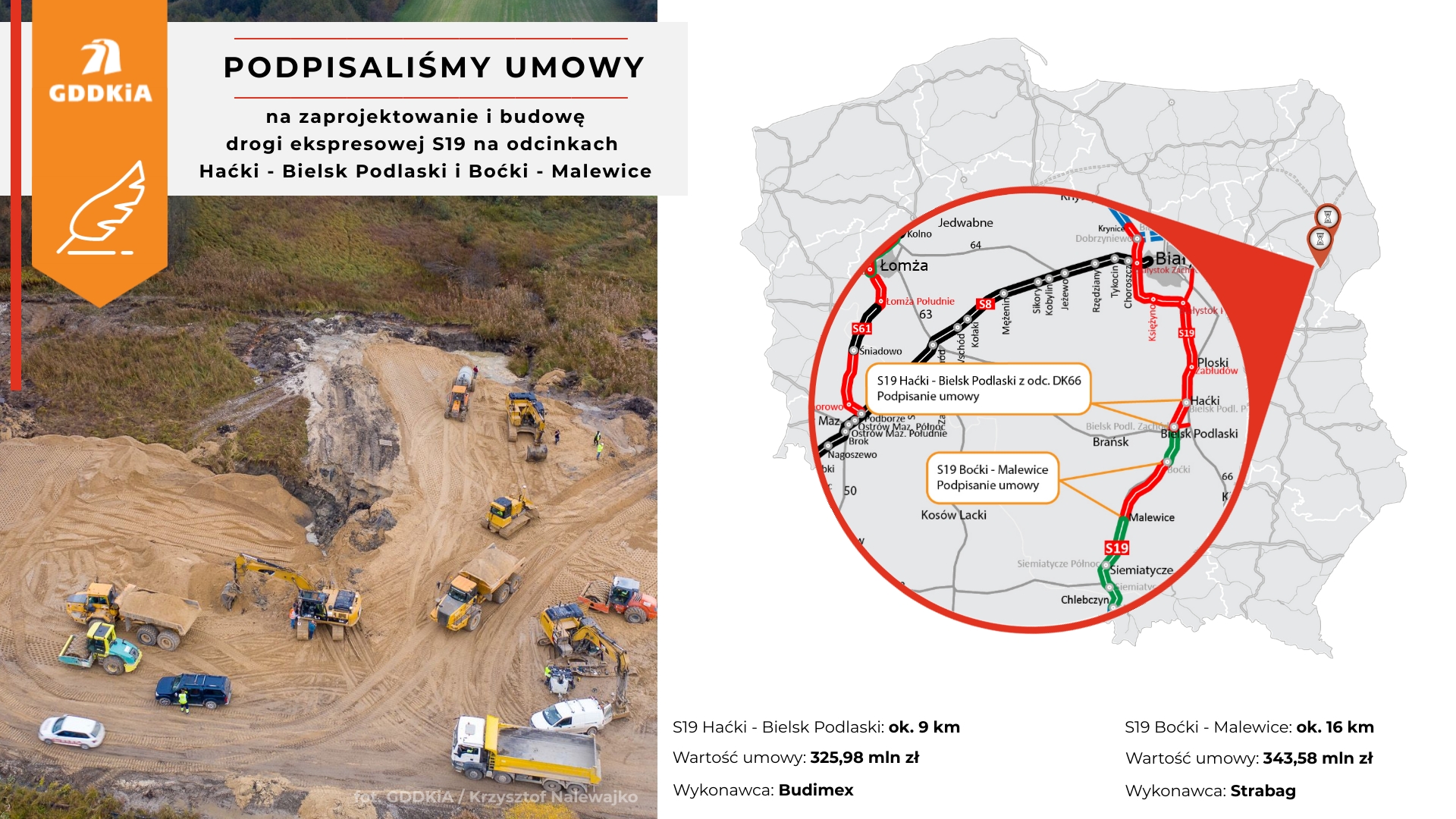 Umowy na odcinki S19: Haćki-Bielsk Podlaski i Boćki-Malewice podpisane