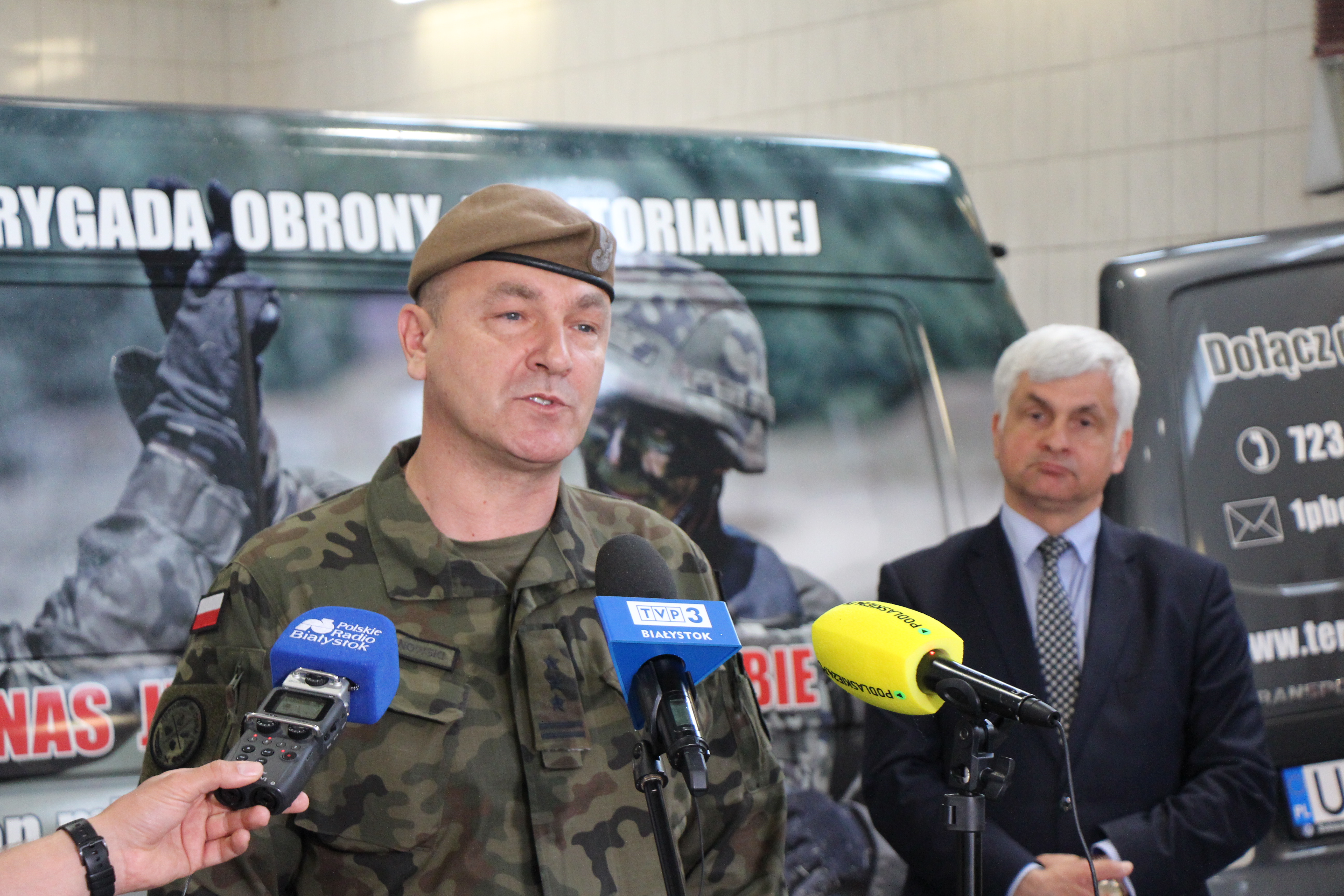 - Od początku stanu zagrożenia epidemicznego ściśle współpracujemy z 1. Podlaską Brygadą Obrony Terytorialnej. Chciałbym serdecznie podziękować za ten trud. Trudno sobie wyobrazić działalność Podlaskiego Urzędu Wojewódzkiego bez wsparcia podlaskich terytorialsów - powiedział wojewoda podlaski Bohdan Paszkowski.