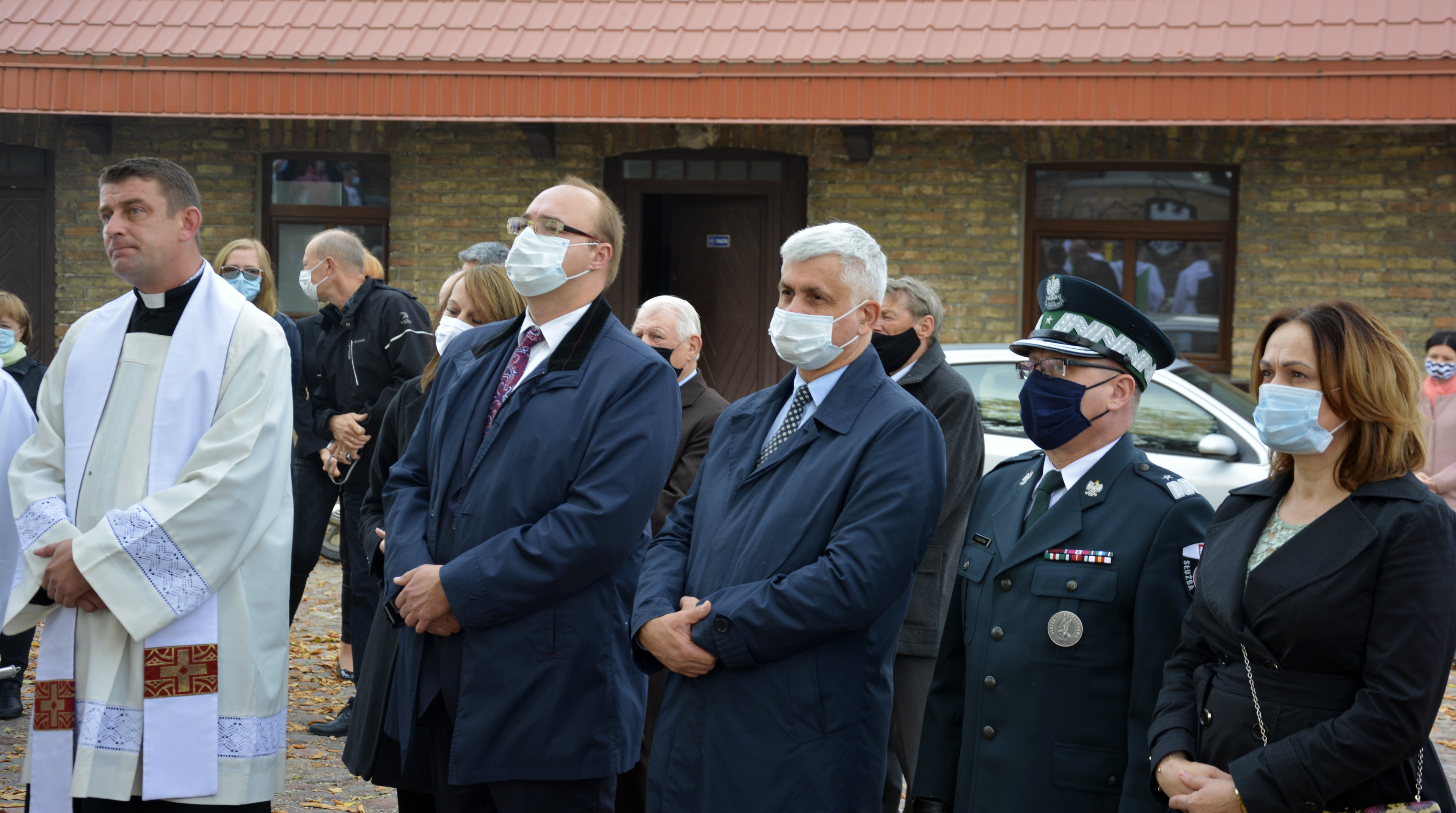 Na początek uroczystości Biskup pomocniczy Archidiecezji Białostockiej ksiądz dr hab. Henryk Ciereszko poświęcił okolicznościową rzeźbę. Na znajdującej się obok tablicy pamiątkowej widnieje rys historyczny i wyjaśnienie: