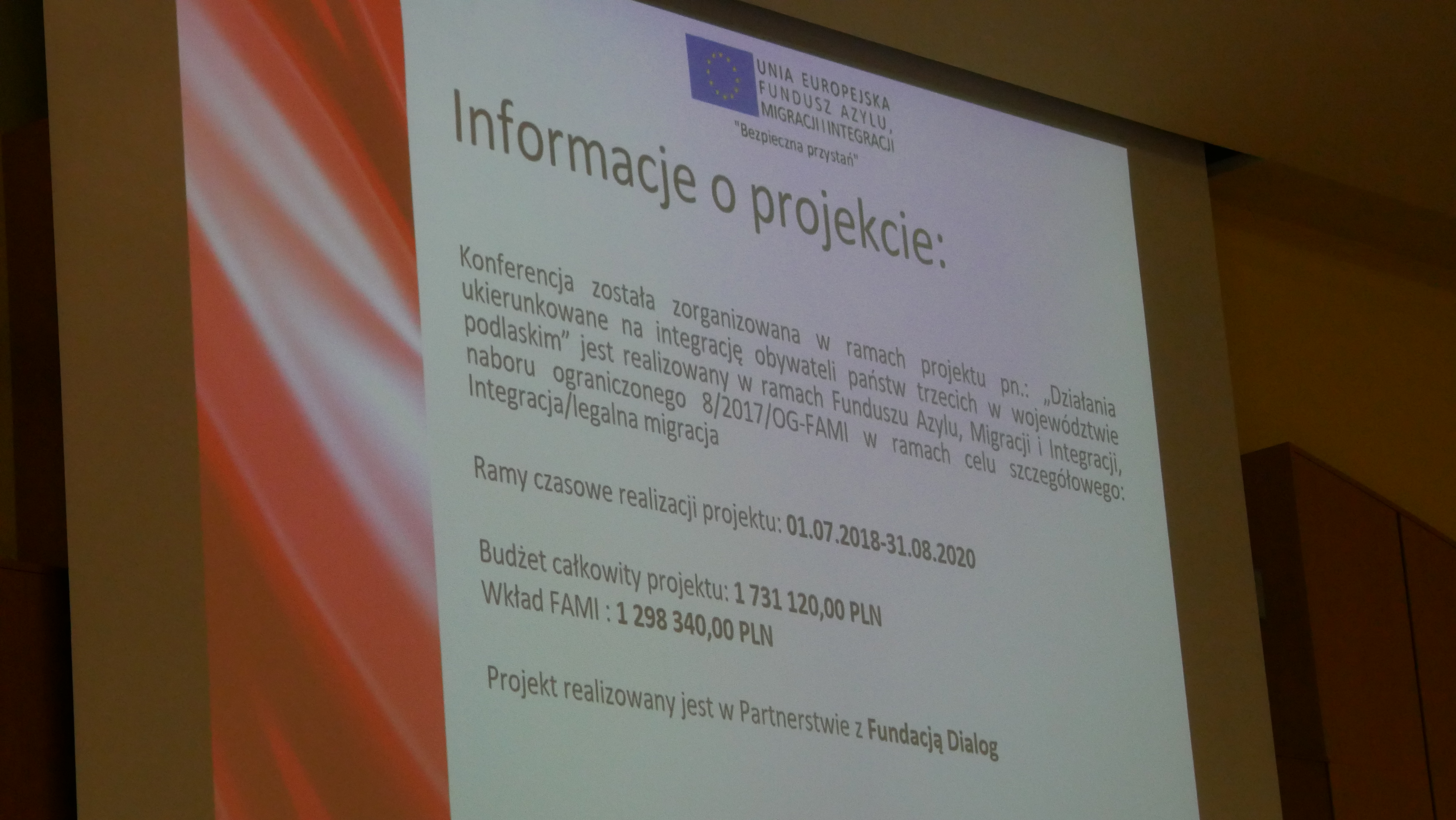 Projekt pn. „Działania ukierunkowane na integrację obywateli państw trzech w województwie podlaskim” jest realizowany w ramach unijnego Funduszu Azylu, Migracji i Integracji. Rozpoczął się 1 lipca 2018 roku i potrwa do końca sierpnia 2020. Jego budżet wynosi 1 731 120 zł.