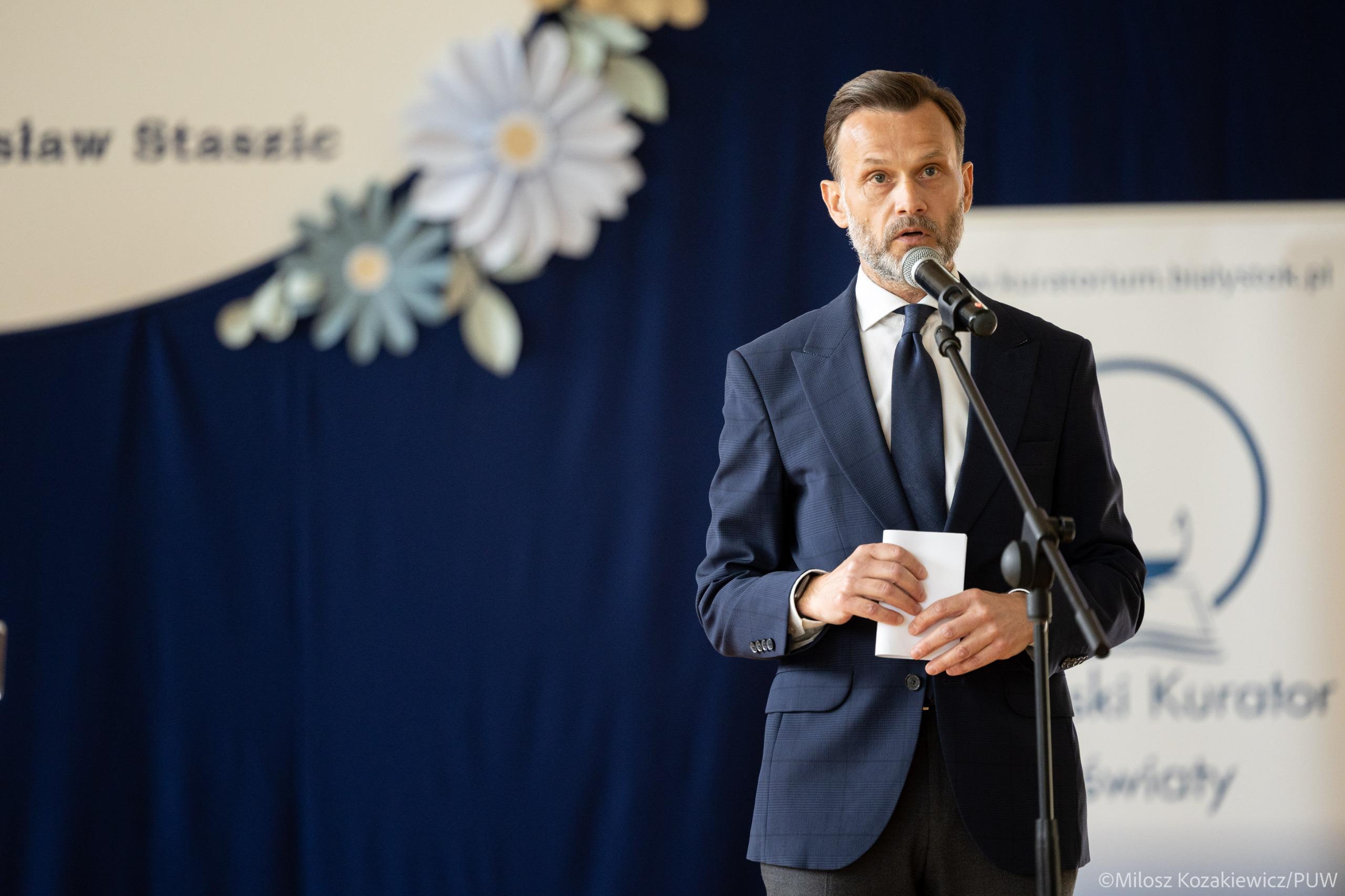 W uroczystości obok wojewody wzięli udział podlaska kurator oświaty Agnieszka Krokos-Janczyło i zastępca prezydenta Białegostoku Tomasz Klim.