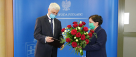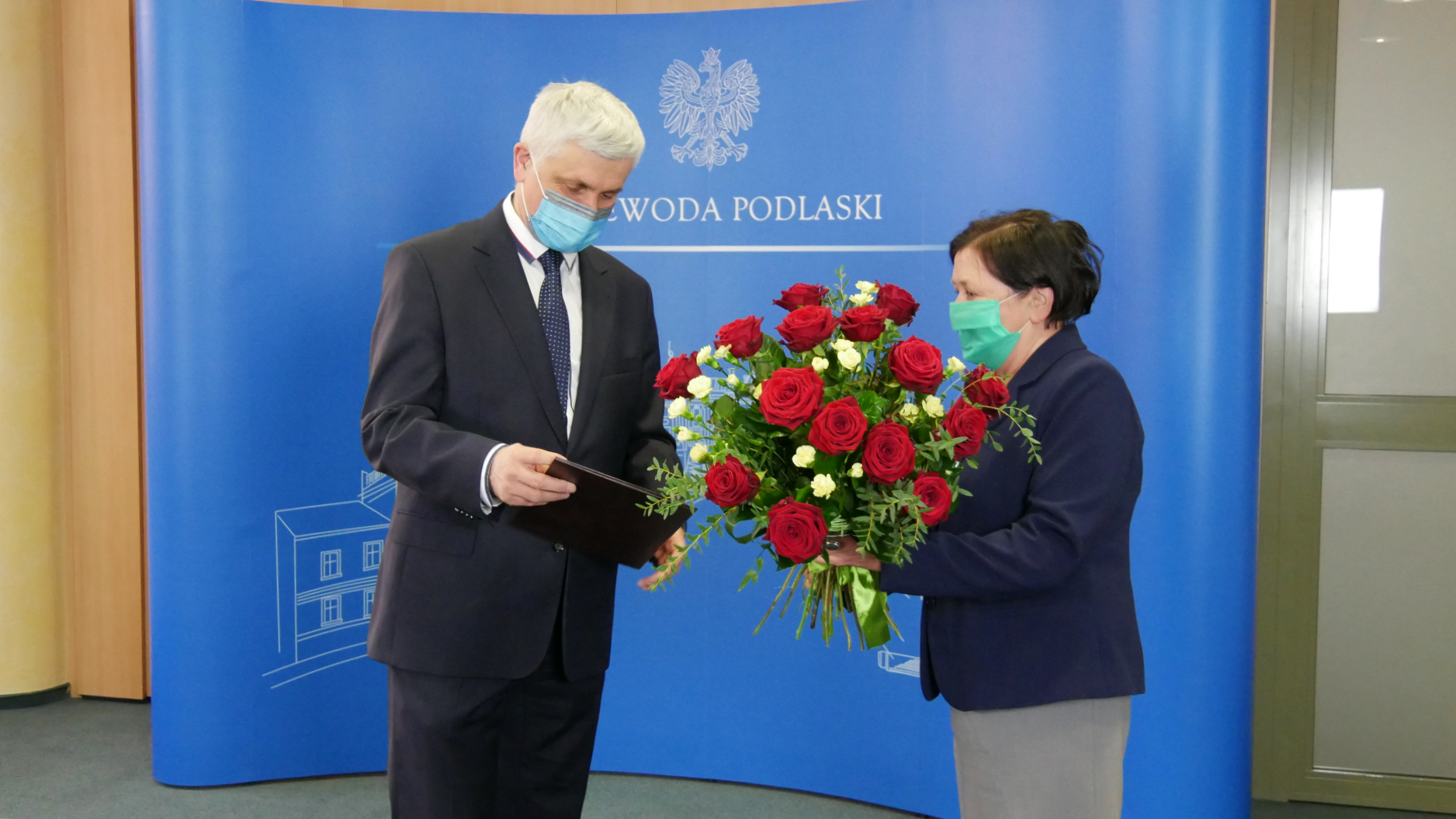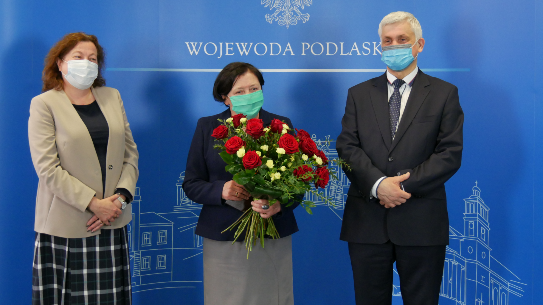 W czwartek (29.04.) wojewoda podlaski Bohdan Paszkowski podziękował za ogromny wkład w rozwój podlaskiego mleczarstwa oraz promocję regionu prezes Okręgowej Spółdzielni Mleczarskiej w Hajnówce - Wierze Pawluczuk w związku z jej przejściem na emeryturę. Spotkanie było okazją do rozmowy na temat aktualnej sytuacji na rynku mleka i rozwoju spółdzielczości mleczarskiej w naszym województwie.