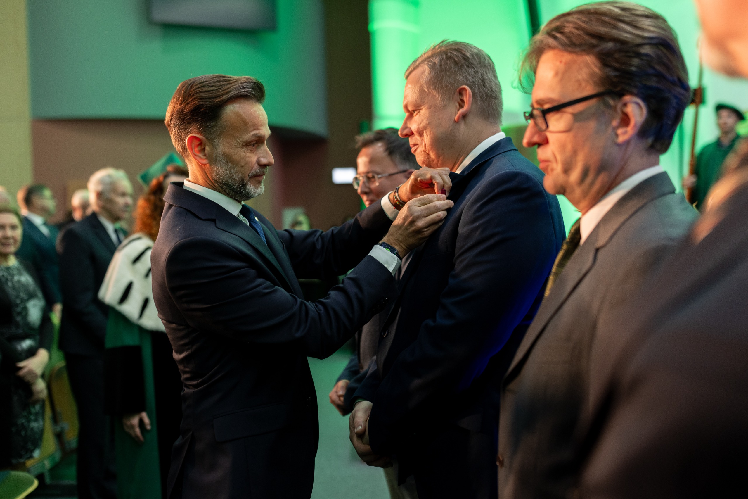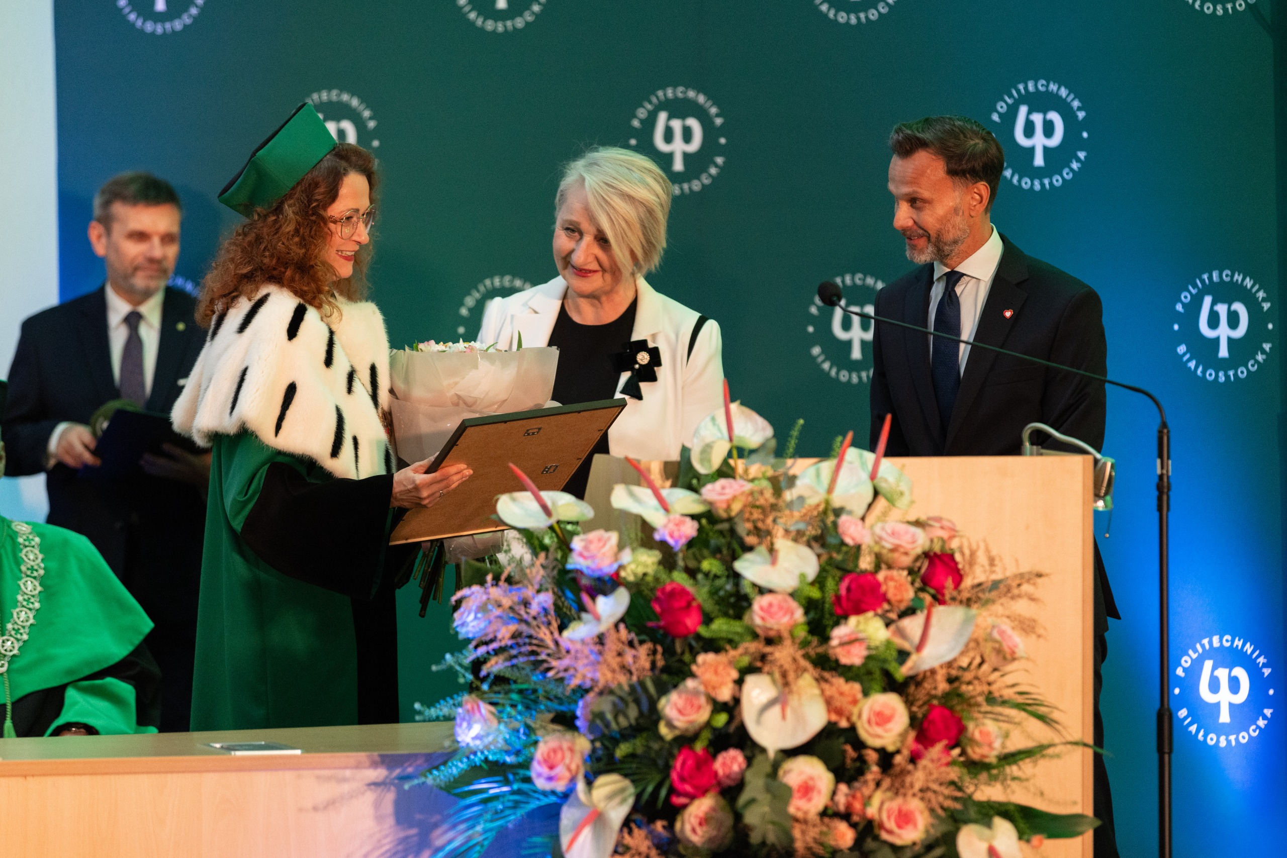 Kolejnymi punktami wydarzenia było wręczenie dyplomów doktora habilitowanego i promocje doktorskie oraz wręczenie odznaki „Zasłużony dla Politechniki Białostockiej”. Po podziękowaniach dla emerytowanych pracowników przyszedł czas na gratulacje dla laureatów Konkursów na Najlepszego Studenta oraz Doktoranta Politechniki Białostockiej.
