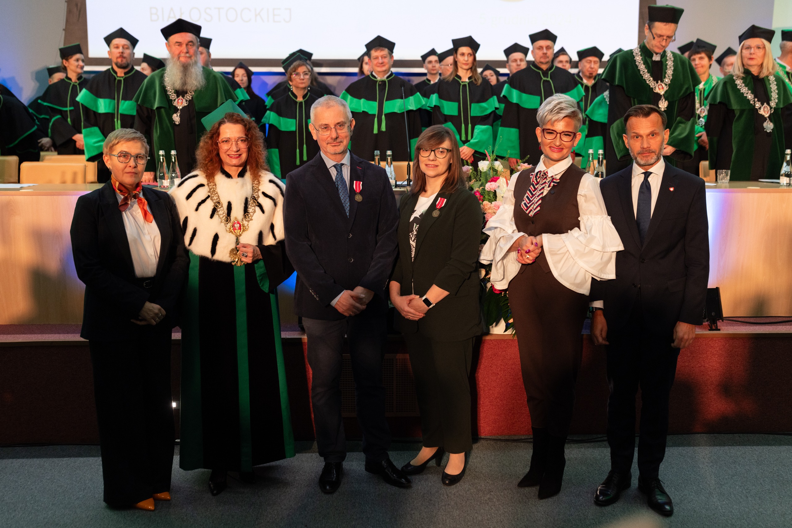 Uroczystość była okazją do wręczenia odznaczeń najbardziej zasłużonym pracownikom Politechniki. Wiceminister Mrówczyńska wręczyła złote Medale za Długoletnią Służbę, wojewoda – srebrne i brązowe. Podlaska kurator oświaty Agnieszka Krokos-Janczyło wręczyła Medale Komisji Edukacji Narodowej.